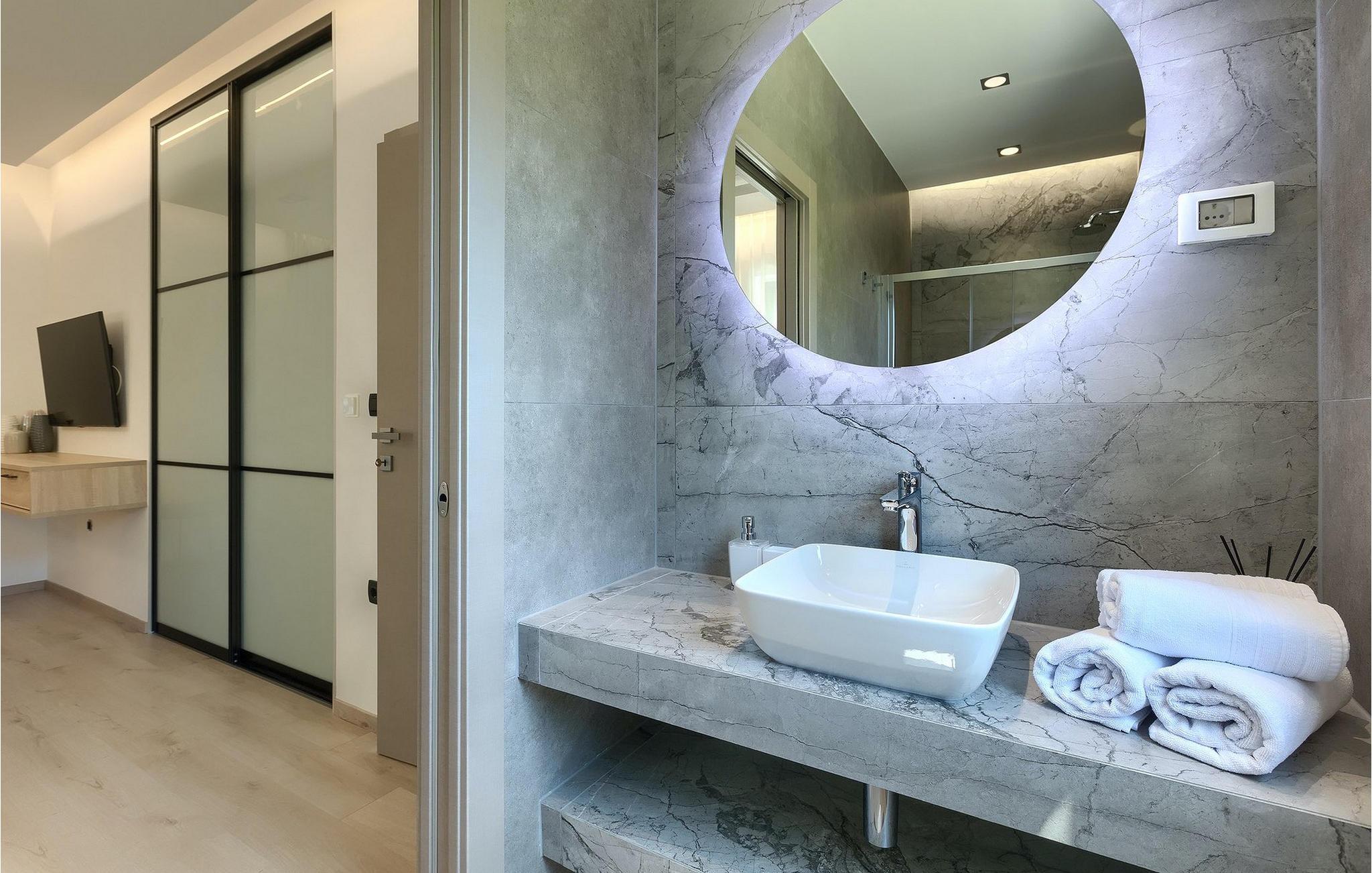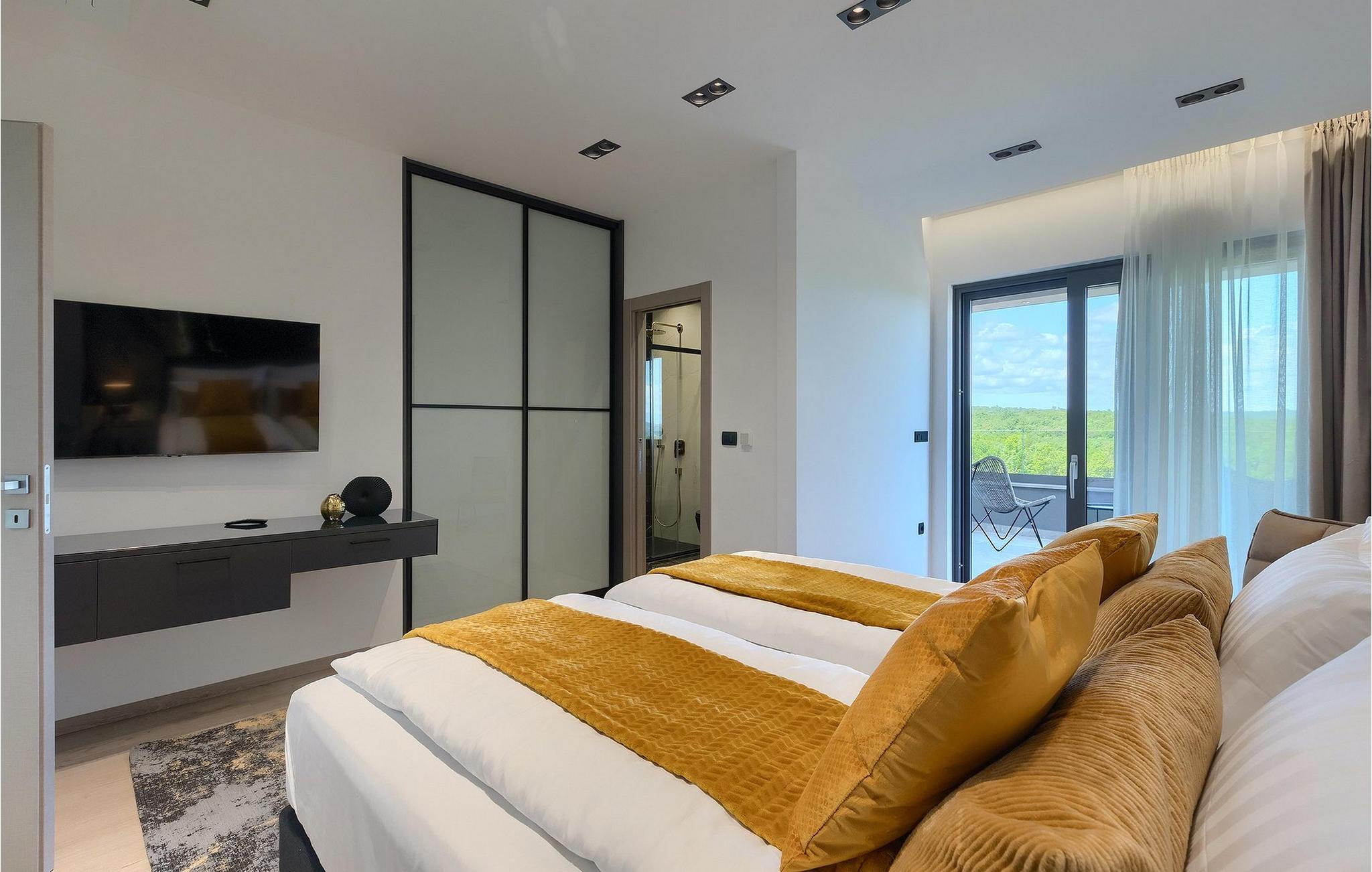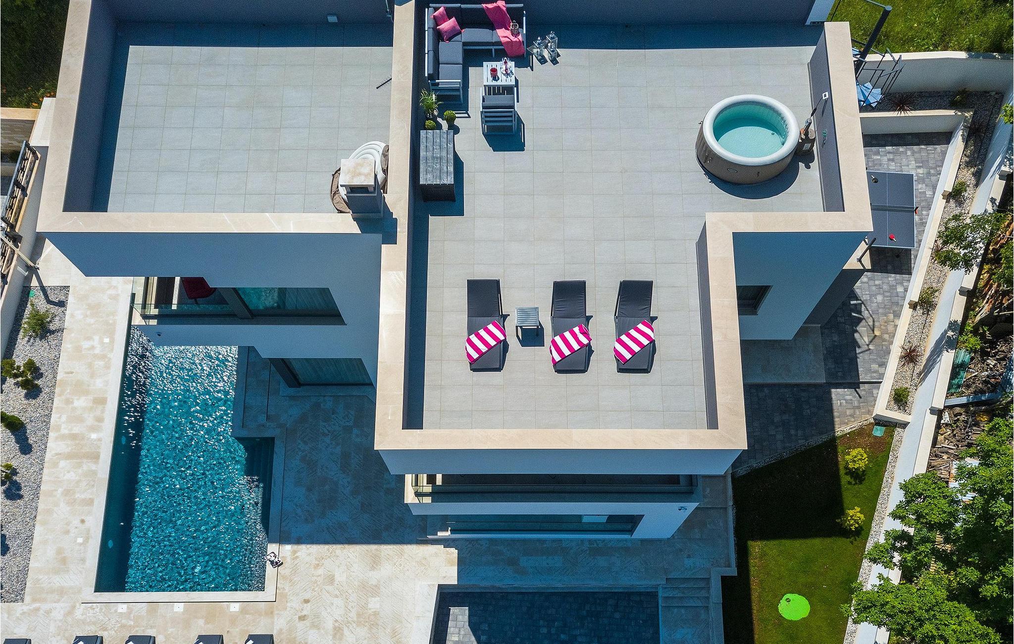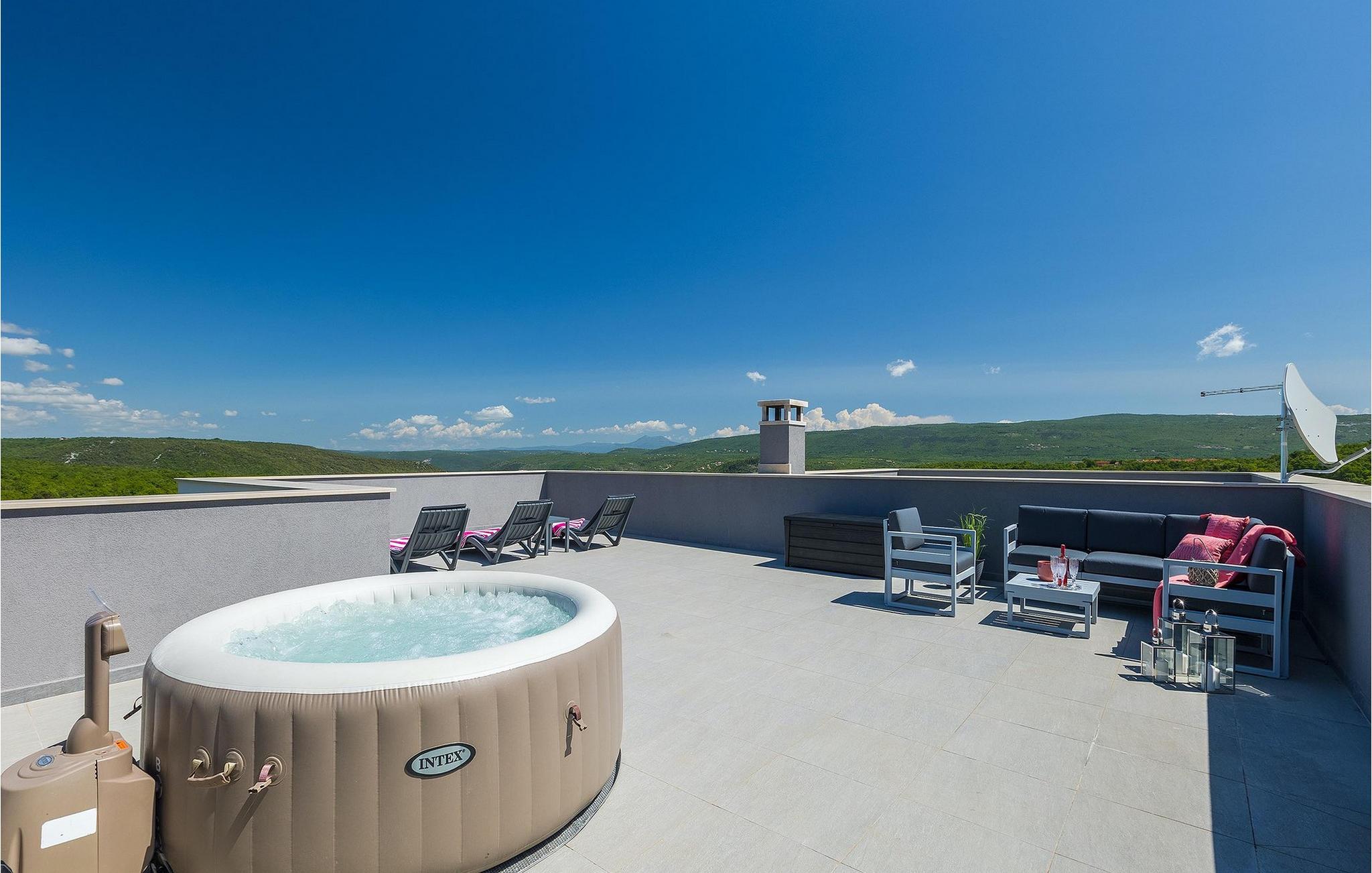 I villaens stueetage er opholds- og spisestue i åbent plan med køkken og adgang til udendørsområdet, badeværelse og sauna, hvor du kan slappe af på kølige aftener. Gæsterne kan slappe af i i alt 3 værelser med aircondition, hver med eget badeværelse. To af disse soveværelser har egen terrasse med en fantastisk udsigt. Kan du forestille dig at hilse dagen velkommen med en kop kaffe der? Men det er ikke alt... På taget af villaen finder du en rummelig terrasse, hvor du ikke kun kan nyde jacuzzien, men også en betagende panoramaudsigt. En rummelig opvarmet pool med hydromassage-funktion runder de alsidige faciliteter af. Har vi gjort dig nysgerrig? Udforsk Istrien og find selv ud af, hvad navnet på villaen handler om...Rakalj er en lille landsby i den østlige del af Istrien, som ligger kun en kort køretur fra havet (5 min. kørsel). Det er den perfekte base for dagsture til de berømte byer Pula, Rovinj og Opatija. Rakalj er også et glimrende sted at kombinere både afslapning og aktiv ferie. I den nærliggende havn er der et fremragende udstyret dykkercenter, som opdager gamle sunkne skibe, spektakulære undervandshuler, klipper, spændingen ved natdykning og den pragtfulde overflod af liv for begyndere og erfarne dykkere. Istriens østkyst byder på en mangfoldighed af strande og krystalklart hav. Den uberørte kyst afslører fredelige bugter med blide småsten, friske klipper badet med bølger og den rene hvidhed af glatte sten kronet med aromatiske træsorter. Med sine mange kyst- og skovstier er dette område fantastisk til mountainbiking, lange afslappende gåture, ridning, men også som udgangspunkt for udflugter til at opdage det magiske Istrien. Krnicki Porat – dejlig havn, der udstråler med den tidløse tradition for fiskernes dyder. Altid friske frugter af det store blå, fyldt med olivenolies flydende guld og god istrisk vin, er en perfekt oplevelse beliggende i den ægte coulisse af den hvide sten, grønne macchia og det krystalklare hav. Den velbevarede hemmelighed, kun kendt af indfødte og erfarne gastronomiske feinschmeckere.