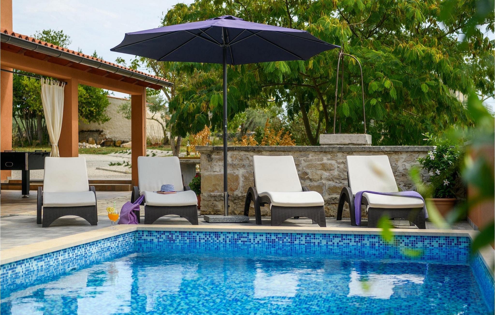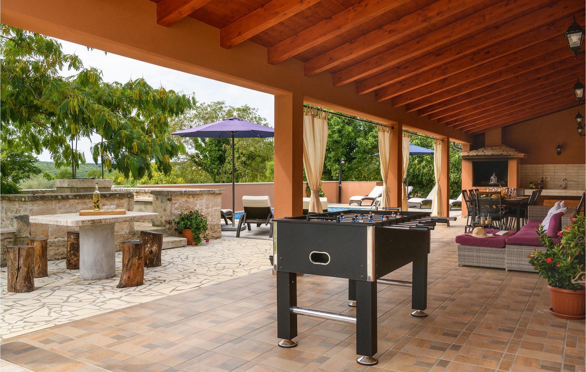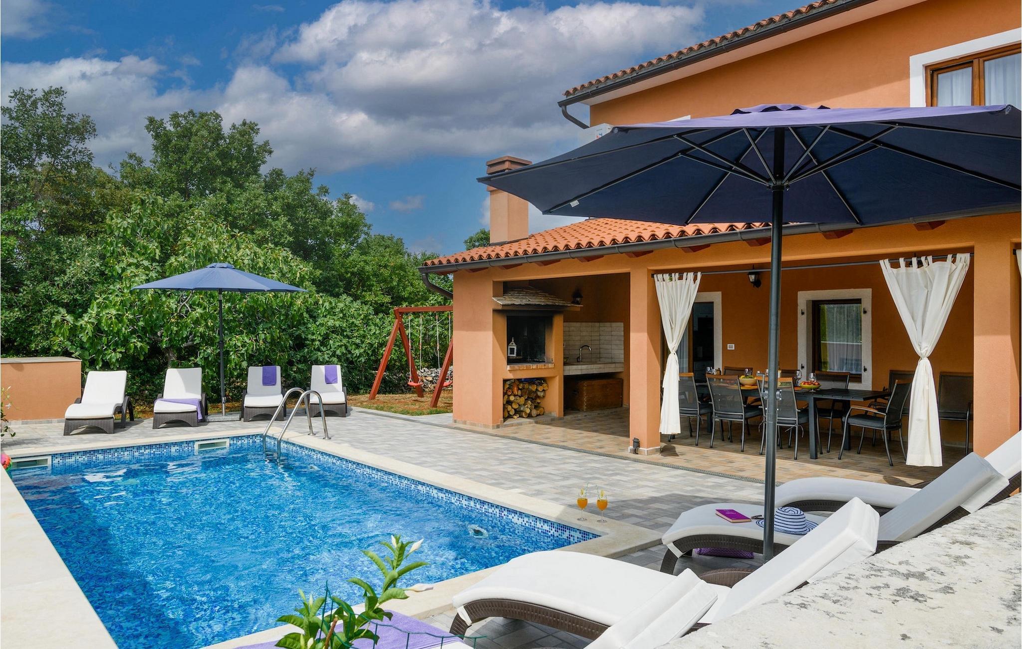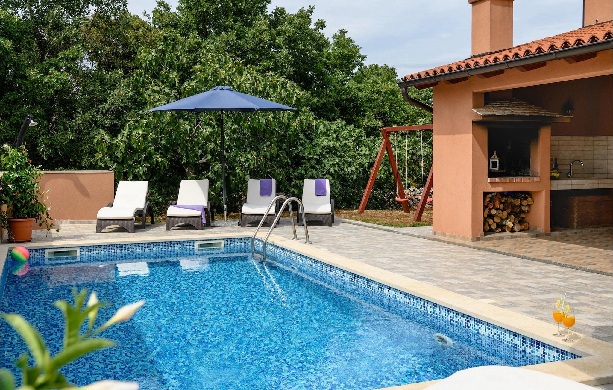 Die wunderschöne Villa Percan ist die ideale Wahl für Familien oder Gruppen von Freunden, die in einer schönen Umgebung, nur 3 km von der Adria entfernt, entspannen möchten. Sie können auch auf den gemütlichen Sonnenliegen am privaten Pool entspannen. Auf der Terrasse steht Ihnen ein Essbereich im Freien mit Holzkohlegrill zur Verfügung, wo Sie köstliche Mahlzeiten zubereiten oder Sie genießen ein Glas Ihres Lieblingsgetränks. Für die Kinder gibt es verschiedene Aktivitäten: Schaukeln, ein Trampolin und ein Futsalplatz. Das Erdgeschoss besteht aus einem liebevoll eingerichteten Wohnzimmer, einer komplett ausgestatteten Küche und einem geräumigen Esszimmer. Die vier Schlafzimmer (alle klimatisiert) und die drei Badezimmer befinden sich im Obergeschoss.