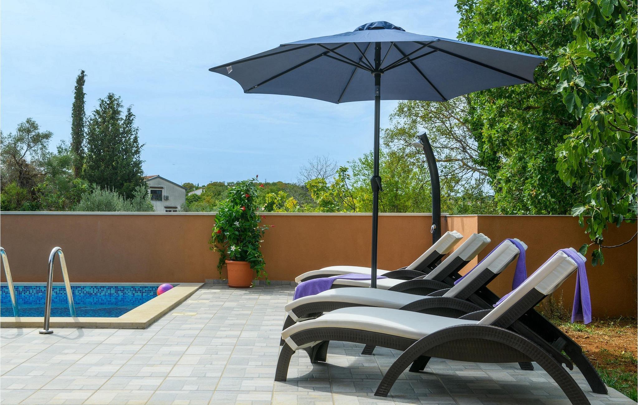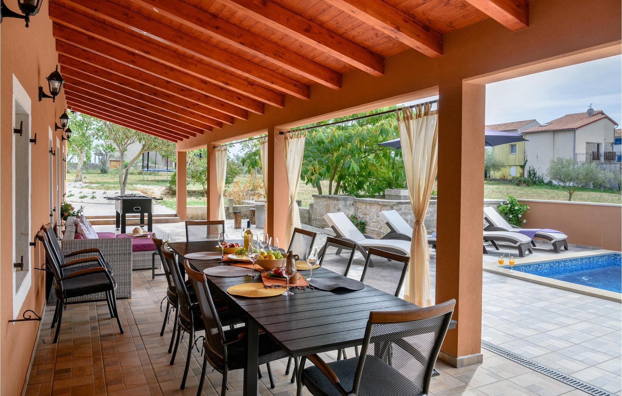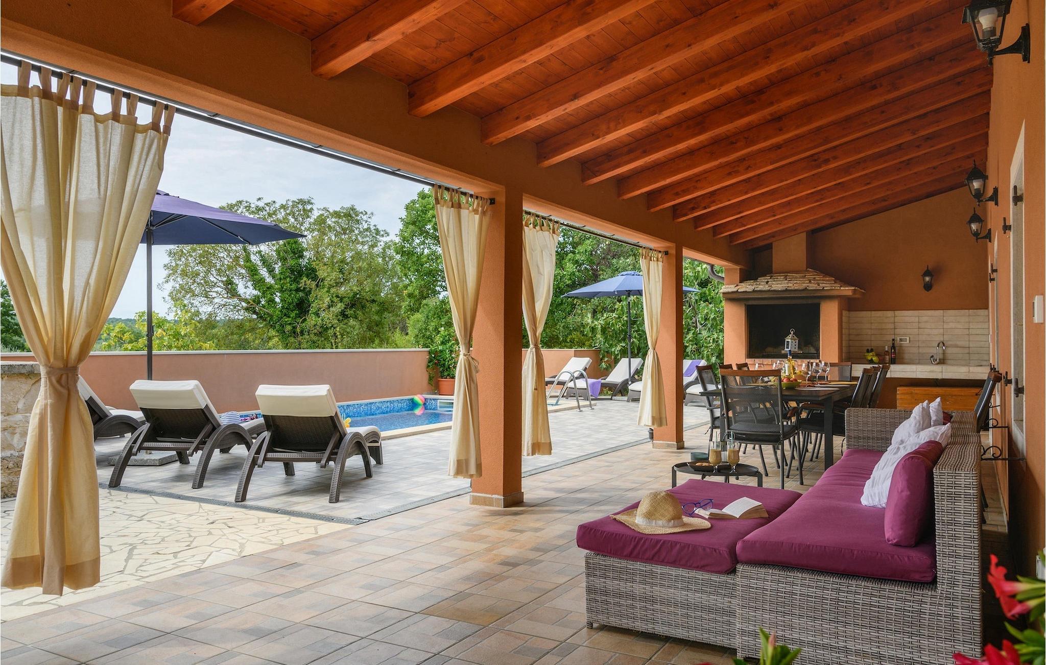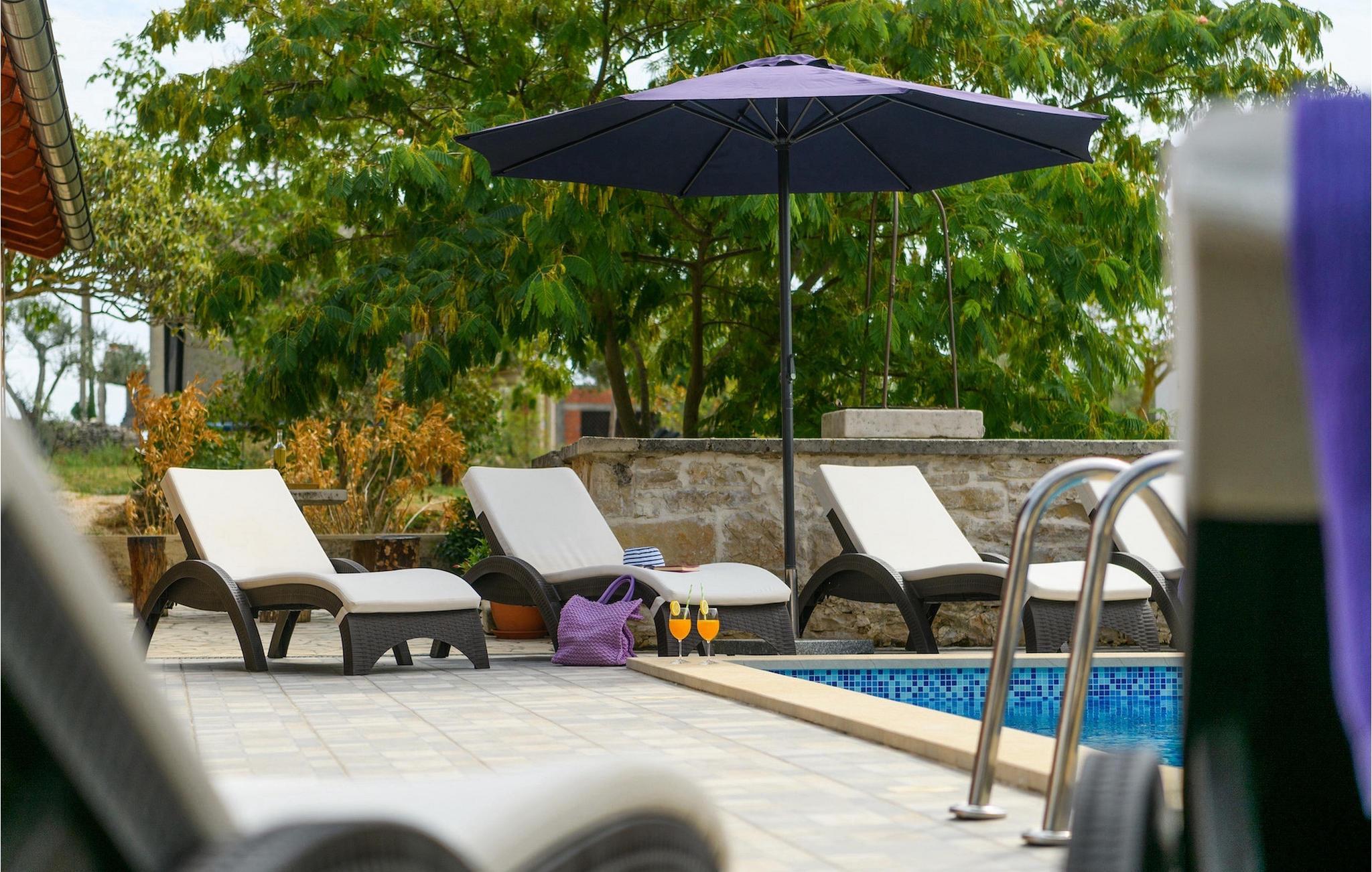 Die wunderschöne Villa Percan ist die ideale Wahl für Familien oder Gruppen von Freunden, die in einer schönen Umgebung, nur 3 km von der Adria entfernt, entspannen möchten. Sie können auch auf den gemütlichen Sonnenliegen am privaten Pool entspannen. Auf der Terrasse steht Ihnen ein Essbereich im Freien mit Holzkohlegrill zur Verfügung, wo Sie köstliche Mahlzeiten zubereiten oder Sie genießen ein Glas Ihres Lieblingsgetränks. Für die Kinder gibt es verschiedene Aktivitäten: Schaukeln, ein Trampolin und ein Futsalplatz. Das Erdgeschoss besteht aus einem liebevoll eingerichteten Wohnzimmer, einer komplett ausgestatteten Küche und einem geräumigen Esszimmer. Die vier Schlafzimmer (alle klimatisiert) und die drei Badezimmer befinden sich im Obergeschoss.