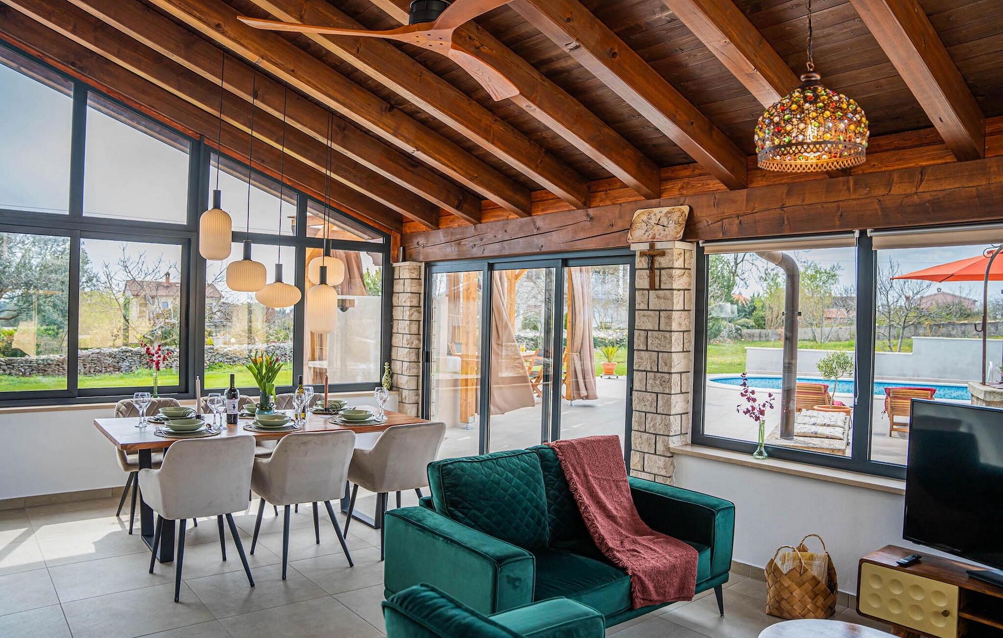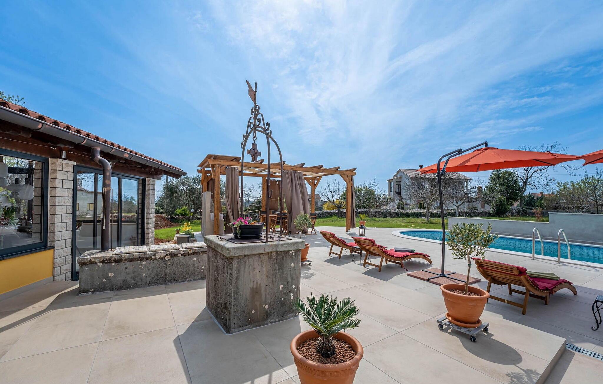 Nyd et skønt feriehus med pool og grønt område, ideelt til en ferie med hele familien! Villa Smokvica for op til 4+2 gæster består af mange aktiviteter under jeres ferie. På de varme sommerdage vil nogle gæster tilbringe deres dage i den private pool, mens andre vil finde tilflugtssted med at læse en bog og slappe af på liggestolene. Udenfor finder I en rummelig terrasse og et overdækket område med spisebord til fælles måltider udenfor.