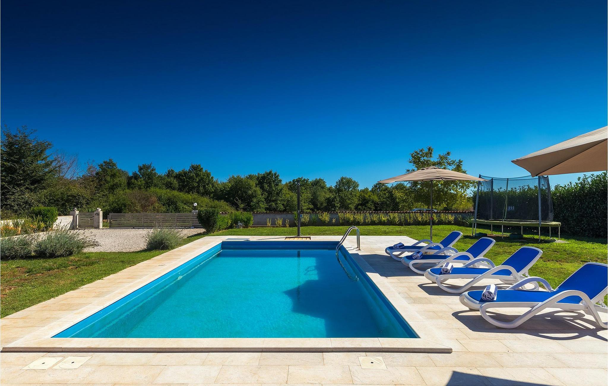 Smuk villa Rebici er beliggende midt i et malerisk istrisk landskab, omgivet af bakker, olivenlunde og gårde. Det er ideelt til en afslappende familieferie. Villa Rebici kan rumme op til 7 personer. Uden for villaen er en swimmingpool, der kun er til rådighed for dig og din familie og har 4 liggestole. Dette skønne stuehus består af 3 soveværelser og 3 badeværelser, hvoraf 2 værelser har eget badeværelse. Det fuldt udstyrede og moderne køkken har alt hvad du behøver for at tilberede lækre måltider, en stue og en spiseplads. Hvis du ønsker at forfriske og svømme i det smukke Adriaterhav, ligger stranden kun 1,5 km fra villaen. Selvom du kun er på ferie, vil du føle dig hjemme i denne villa. Tilbring dine dage med at nyde solen ved poolen, mens børnene har det sjovt på villaens legeplads. Denne smukke villa tilbyder en god base for at udforske denne uspolerede region, og er nedsænket i det herlige, bølgende istriske landskab, men alligevel kun et stenkast væk fra smaragdblåt vand og afsondrede naturlige strande ved Adriaterhavet. Blot et par kilometer fra villaen ligger den maleriske middelalderby Barban, kendt for sit årlige gamle kavalerispil "Ringens løb". En unik hesteranch, der tilbyder trekking og ridning, ligger i den nærliggende landsby Manjadvorci. Spændingssøgende vil drage fordel af en stor adrenalinpark kun 7 km fra villaen, et dykkercenter ved den smukke, lille bugt Krnica (10 min. kørsel væk), samt nærheden til forskellige vandre- og cykelstier. Et stort udvalg af retter med lækre lokale råvarer betyder, at du aldrig behøver at gå langt for at finde et fremragende måltid, og du kan også købe dagligvarer direkte fra de lokale producenter. For at tilføje den sidste ingrediens til dette rige udvalg af aktiviteter er den historiske by Pula og de livlige turist-hotspots i kort køreafstand, såvel som færgerne til en tur til de forbløffende smukke omkringliggende øer.