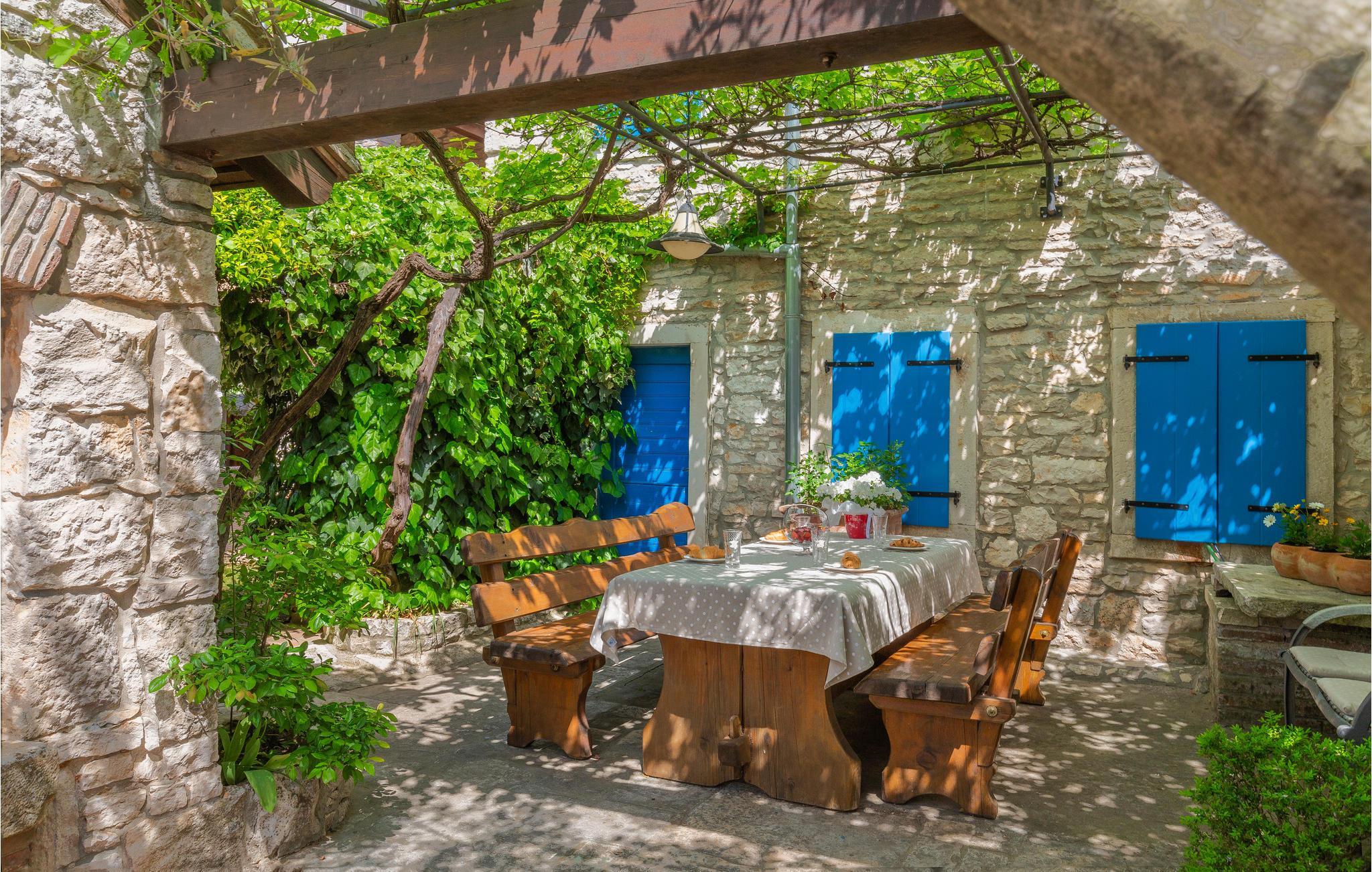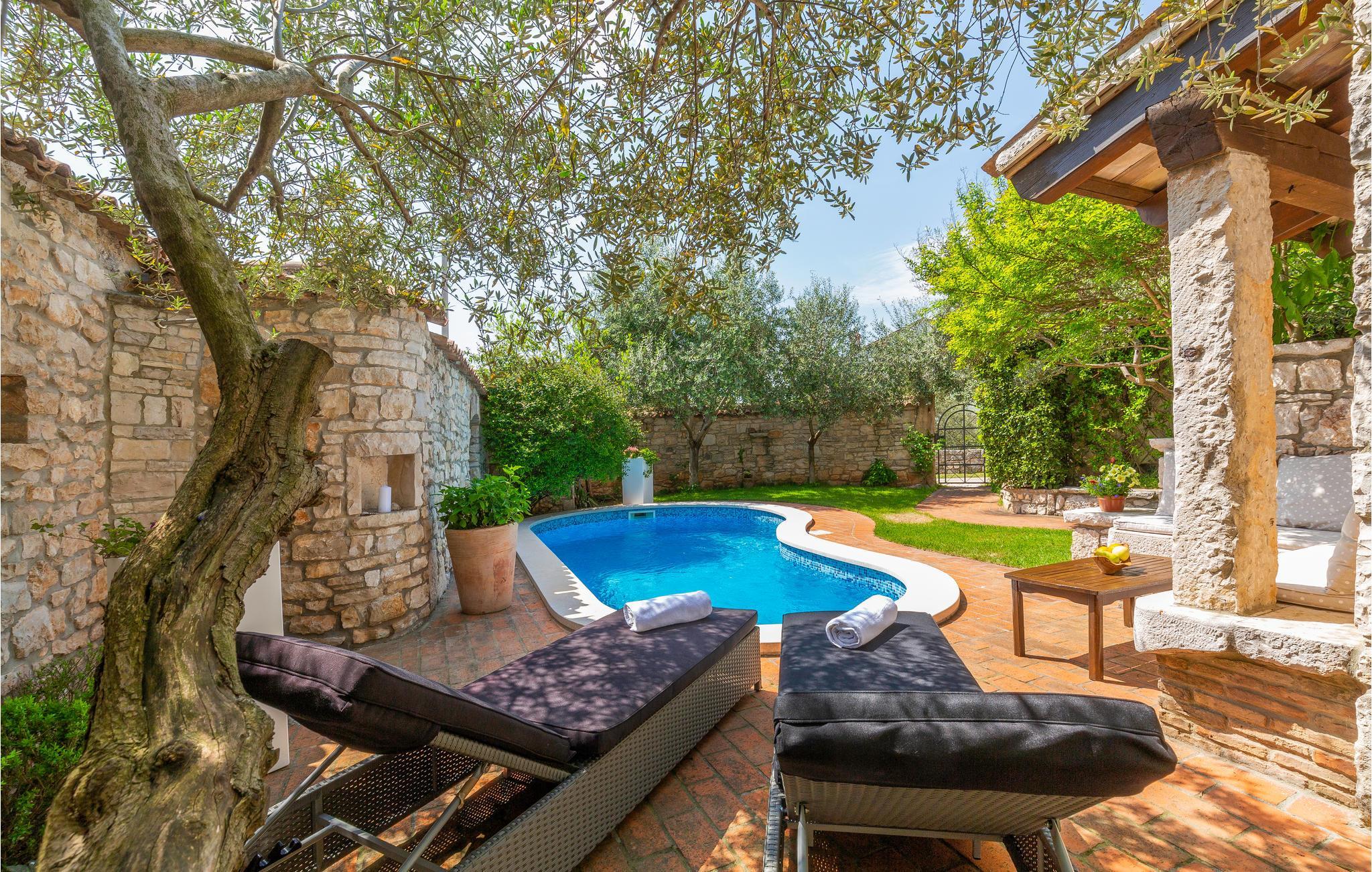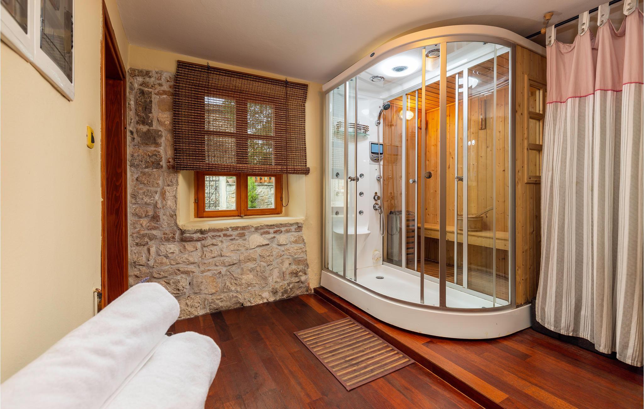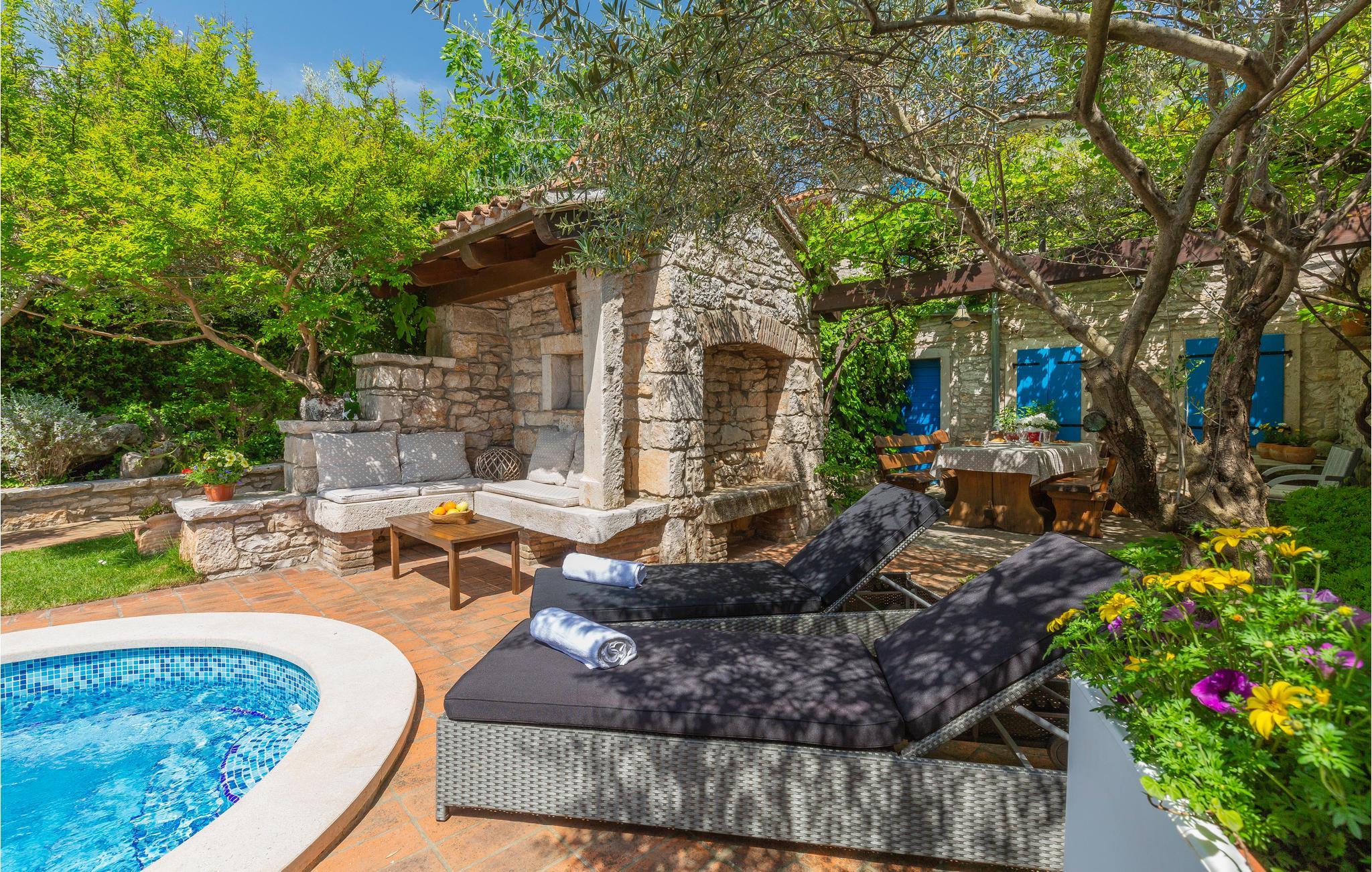 En blanding af rustik og moderne stil giver dette hus dets helt særlig charme. Dette typisk istriske stenhus ligger i det maleriske indland. Poolen og saunaen giver et luksuøst miljø. De landlige omgivelser giver ideelle forudsætninger for en rekreativ familieferie. Den lokale kro tilbyder traditionelle retter. S3 (enkeltseng til at trække ud) er et gennemgangsværelse til S2 og S4. Fra S4 kommer I ud på balkonen. Besøg i jeres ferie den gamle by Labin og den kendte turistbadeby Rabac med dens krystalklare hav og de vidunderlige strande. Nyd de forskellige vandre- og cyklemuligheder i det maleriske landskab, eller kør på få minutter med bilen til østkysten, hvor mange dejlige badesteder venter jer. Huset er et ideelt udgangspunkt for udflugter, fx til byerne Pula, Rovinj og Opatija, der alle kan nås let. Regionens attraktioner vil gøre jeres ferie til en af de skønneste. En udflugt ind i landet kan også anbefales. Kør langs vinvejen, og smag herlige, lokalt producerede vine, og opdag, hvor lækkert Prsut, en røget skinke, eller trøfler kan smage, der tilbydes i mange taverner. Besøg også de omkringliggende, små landsbyer som Rakalj eller Kavran, hvor der er forskellige arrangementer, fx fiskerfester, om sommeren. Her har I en ideel lejlighed til at lære lokal skik og brug samt det rige, traditionelle køkken at kende. Hesteelskere kan besøge det ridecenter, der ligger i nærheden. I nærheden af den lille landsby Muntic kan man besøge resterne af den første menneskelige bosættelse i Istrien.