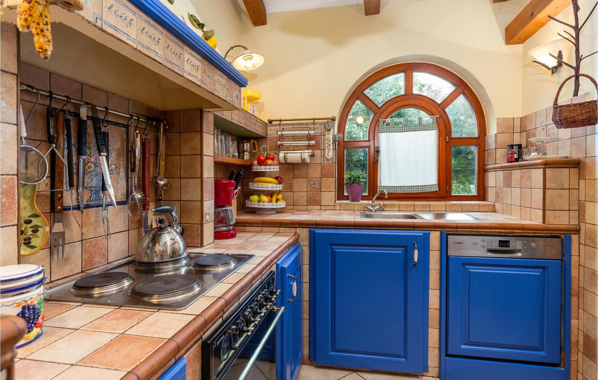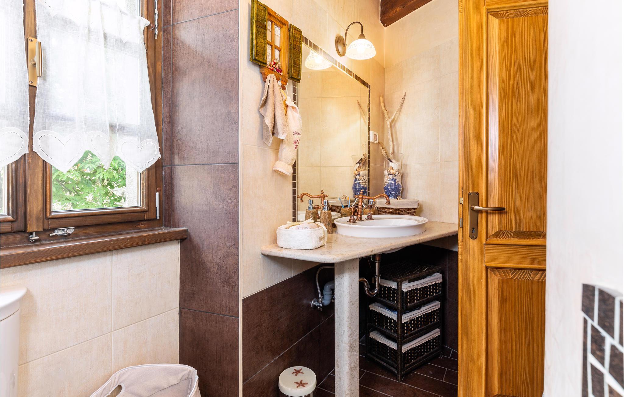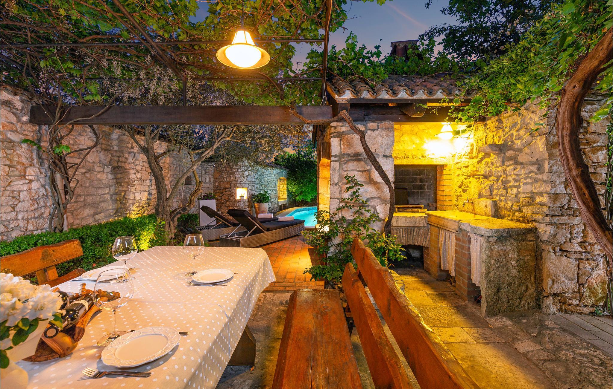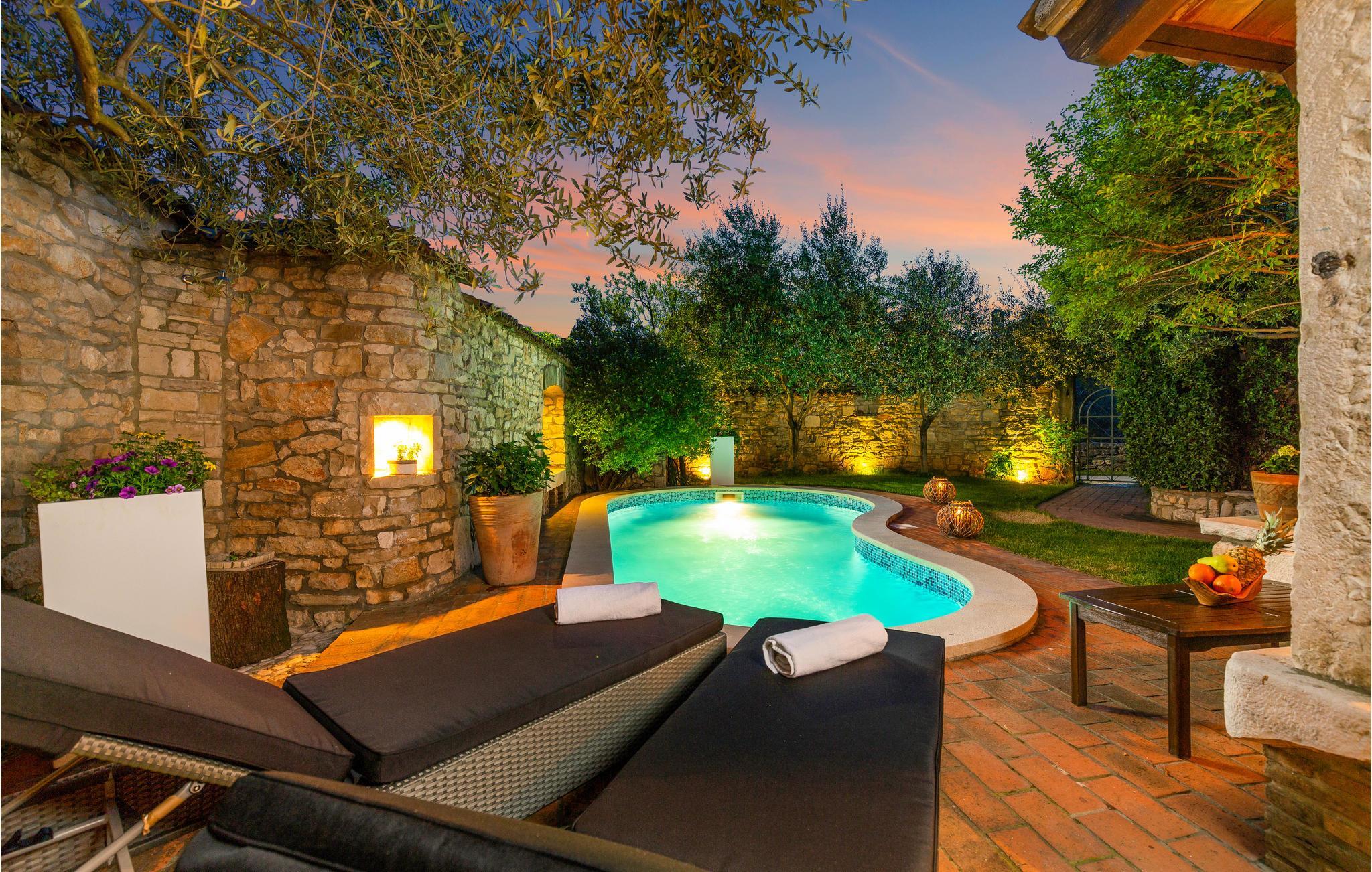 En blanding af rustik og moderne stil giver dette hus dets helt særlig charme. Dette typisk istriske stenhus ligger i det maleriske indland. Poolen og saunaen giver et luksuøst miljø. De landlige omgivelser giver ideelle forudsætninger for en rekreativ familieferie. Den lokale kro tilbyder traditionelle retter. S3 (enkeltseng til at trække ud) er et gennemgangsværelse til S2 og S4. Fra S4 kommer I ud på balkonen. Besøg i jeres ferie den gamle by Labin og den kendte turistbadeby Rabac med dens krystalklare hav og de vidunderlige strande. Nyd de forskellige vandre- og cyklemuligheder i det maleriske landskab, eller kør på få minutter med bilen til østkysten, hvor mange dejlige badesteder venter jer. Huset er et ideelt udgangspunkt for udflugter, fx til byerne Pula, Rovinj og Opatija, der alle kan nås let. Regionens attraktioner vil gøre jeres ferie til en af de skønneste. En udflugt ind i landet kan også anbefales. Kør langs vinvejen, og smag herlige, lokalt producerede vine, og opdag, hvor lækkert Prsut, en røget skinke, eller trøfler kan smage, der tilbydes i mange taverner. Besøg også de omkringliggende, små landsbyer som Rakalj eller Kavran, hvor der er forskellige arrangementer, fx fiskerfester, om sommeren. Her har I en ideel lejlighed til at lære lokal skik og brug samt det rige, traditionelle køkken at kende. Hesteelskere kan besøge det ridecenter, der ligger i nærheden. I nærheden af den lille landsby Muntic kan man besøge resterne af den første menneskelige bosættelse i Istrien.