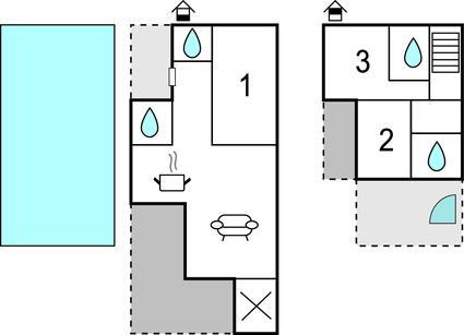 Badeværelse (nr. 1) - WC. Varmt og koldt vand. Bruser