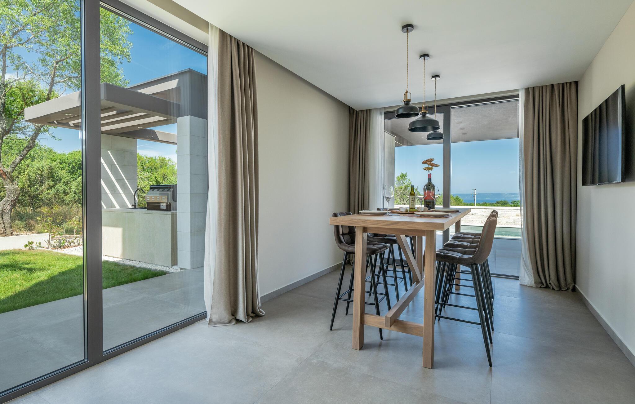 Nyd den stilfulde atmosfære i dette eksklusive designerhus. Den åbne, lysfyldte arkitektur skaber en harmonisk følelse af at bo, mens I kan fremtrylle middelhavsspecialiteter i det ultramoderne køkken. Forkæl jer selv med kulinariske lækkerier ved det elegante spisebord eller gør jer godt tilpas på det rummelige sofaområde, mens I streamer en film eller lytter til musik.