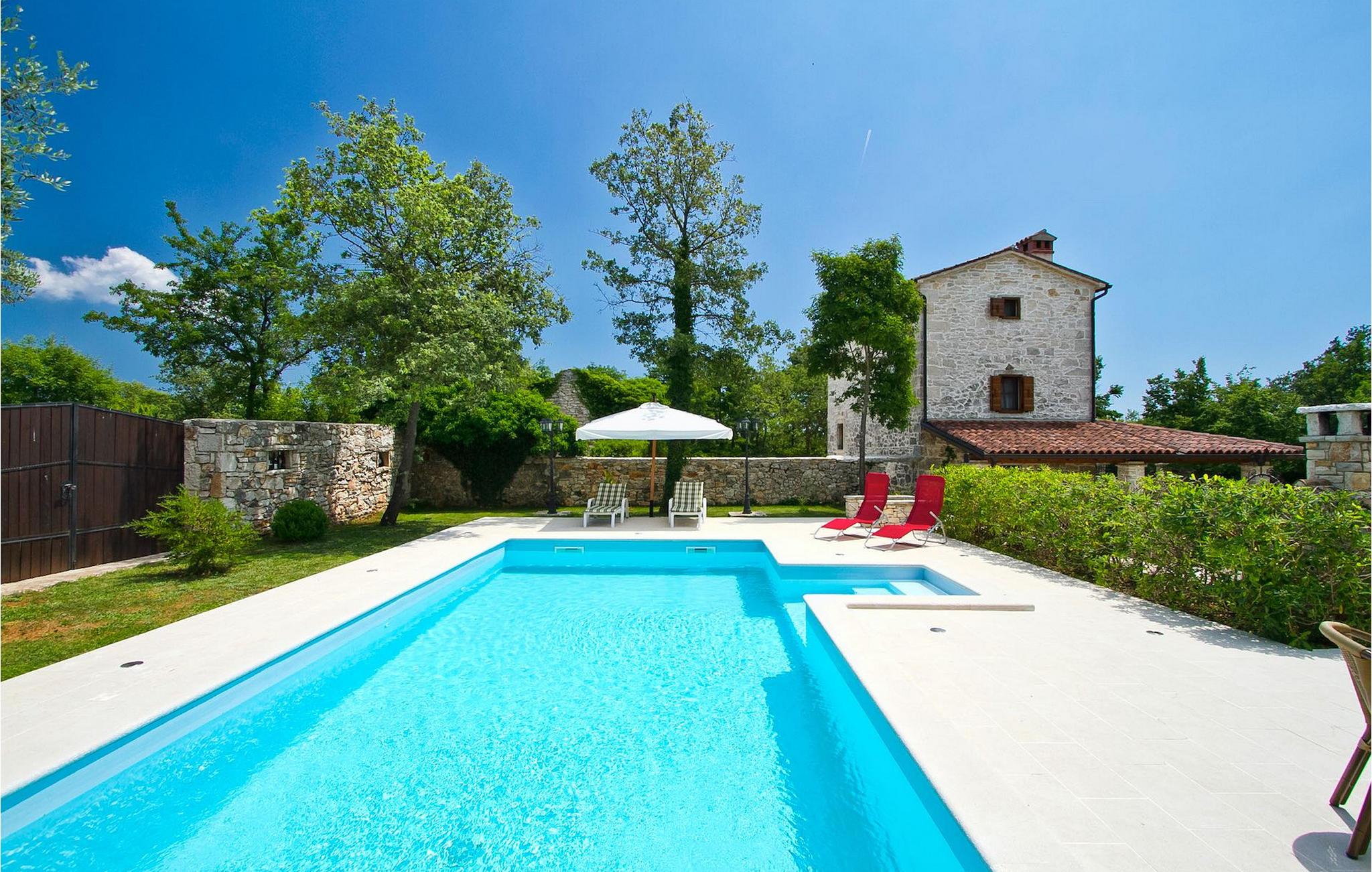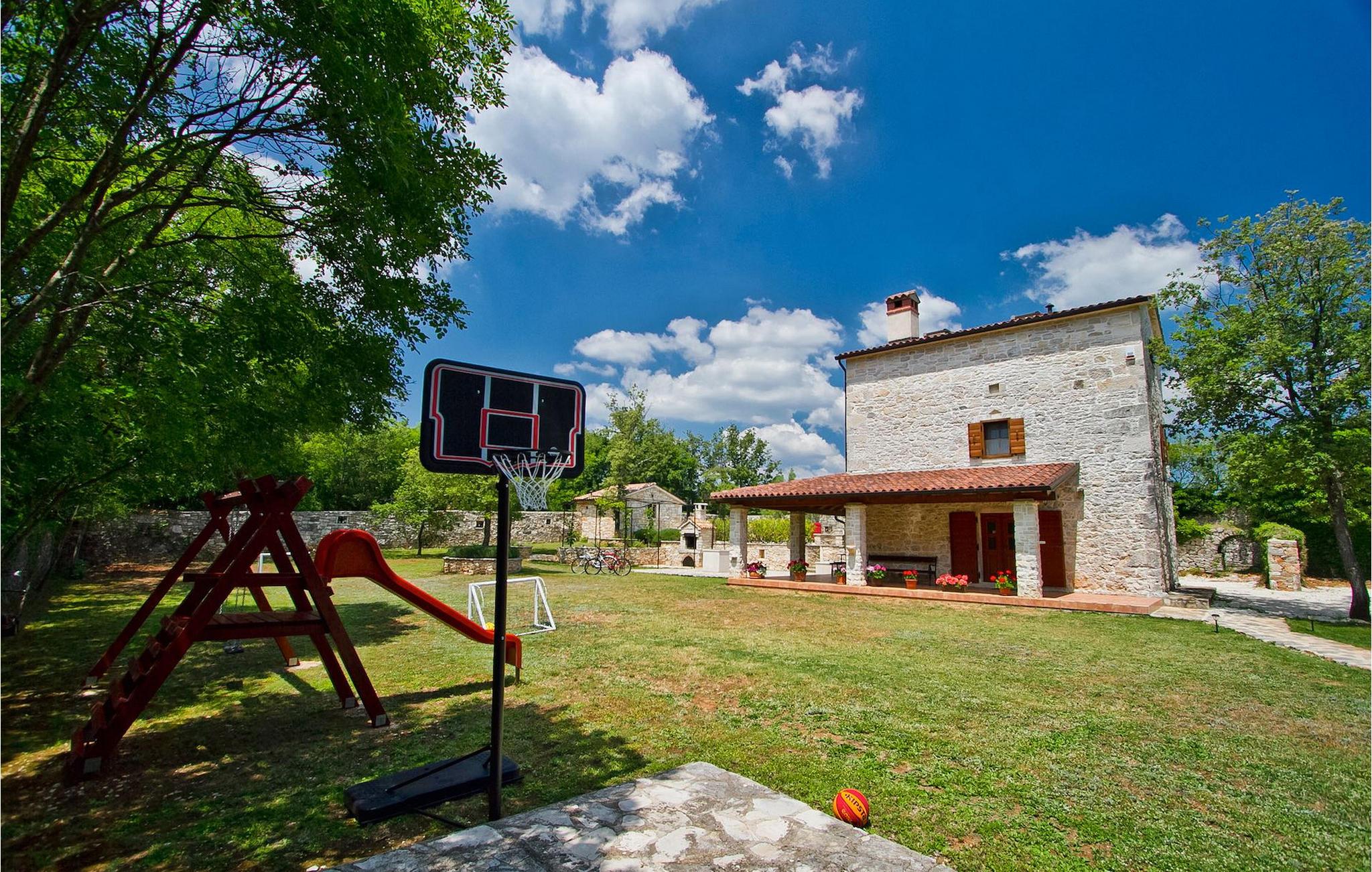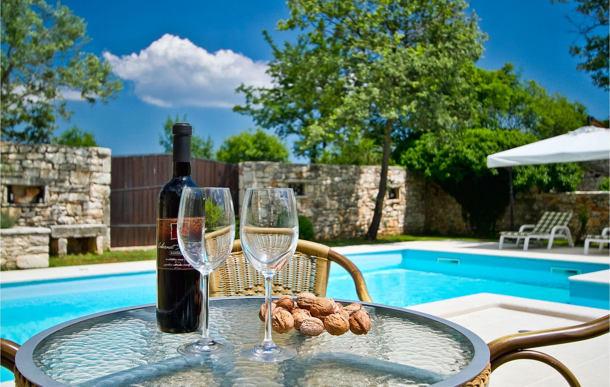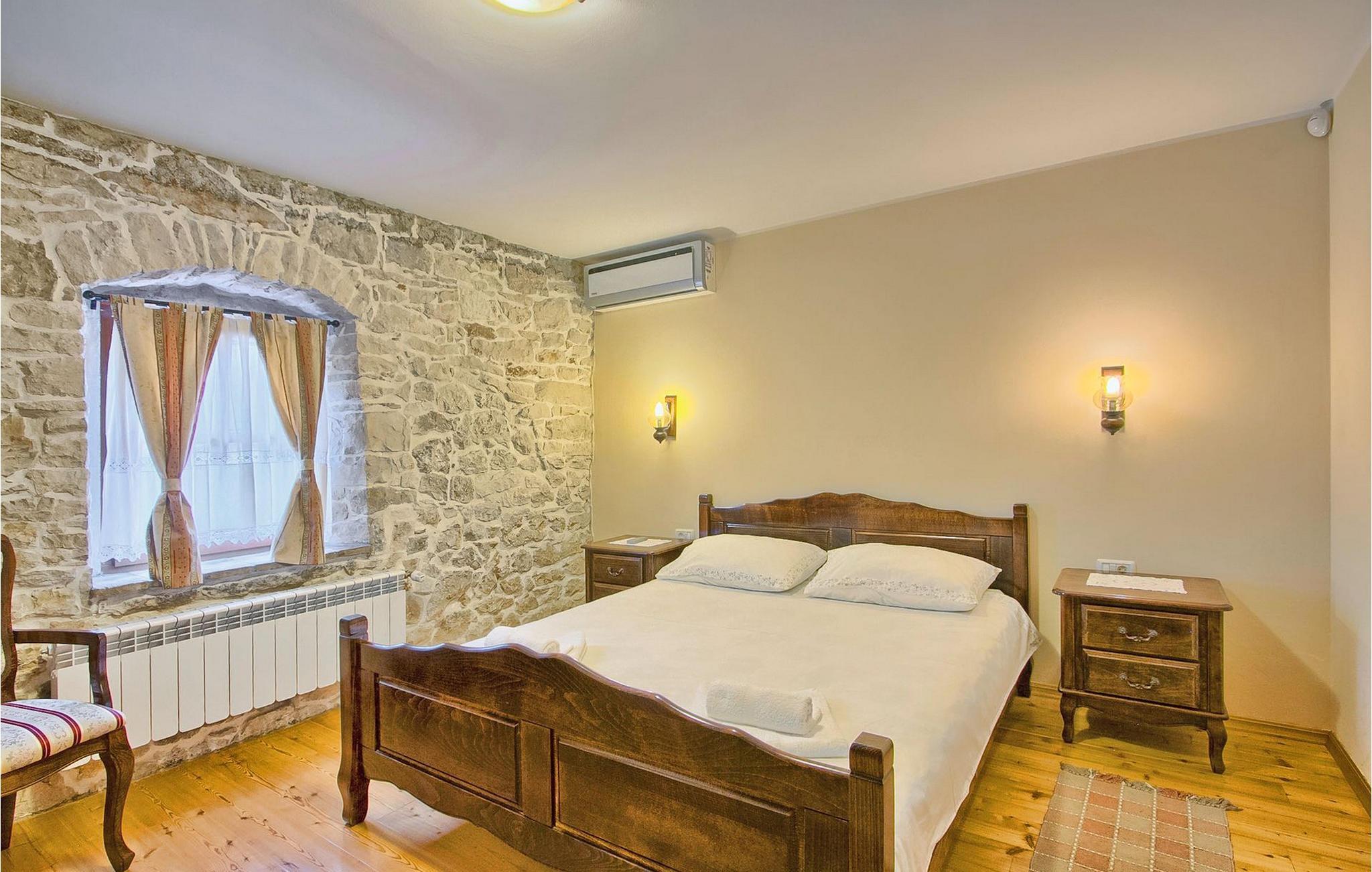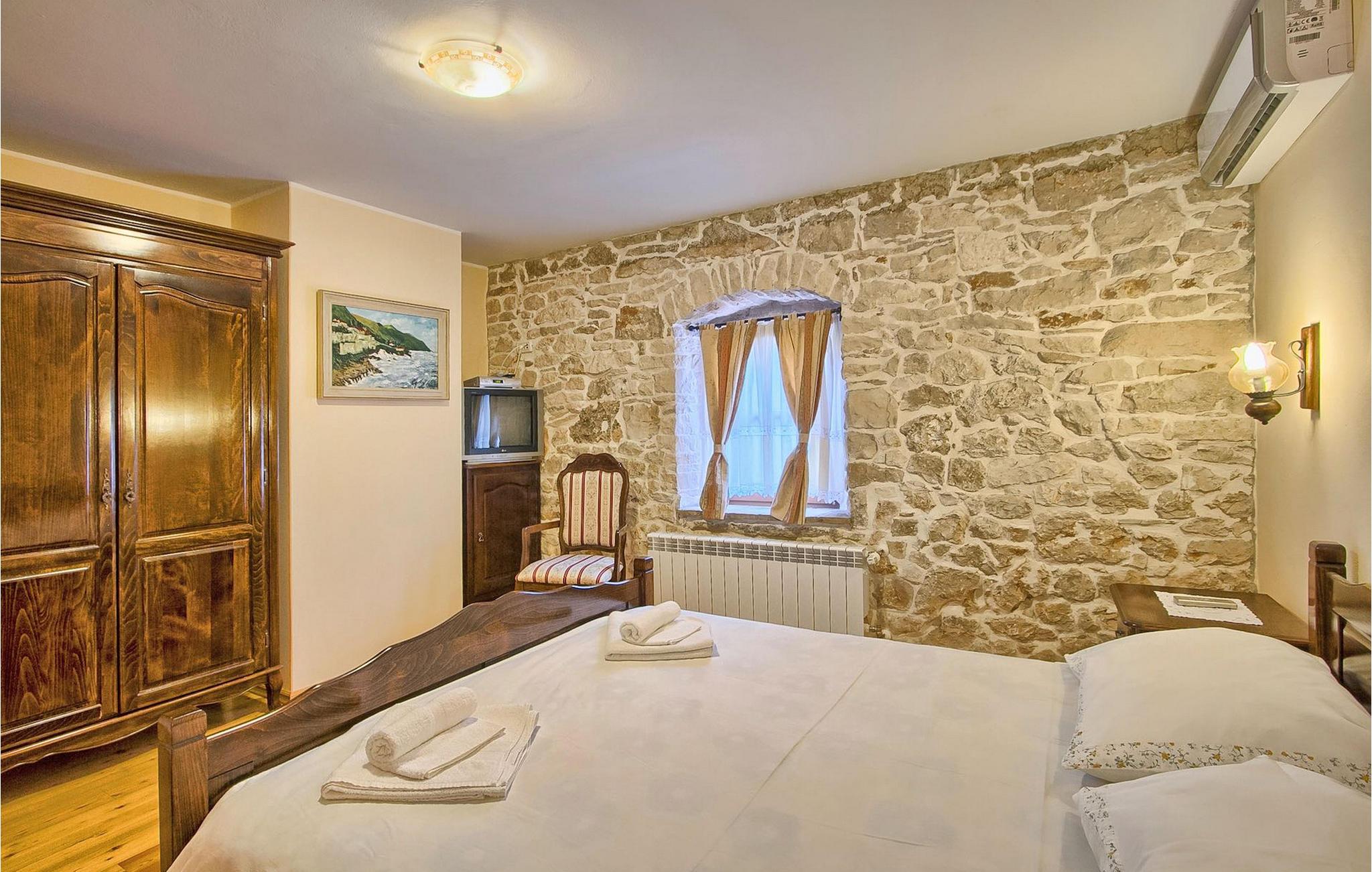 Denne charmerende stenbyggede villa tilbyder fred og privatliv for gæster, der søger ro og et tilflugtssted fra det hektiske moderne liv. Denne ensomme villa er beliggende på et roligt og privat stykke jord, og den byder på mange faciliteter; en privat swimmingpool, stenbygget grill, legeplads, streetballbane, badminton- og fodboldbane. Villaen kan komfortabelt rumme gæster i 2 soveværelser med dobbeltsenge, det ene med en babyseng, hvis du har brug for det. Soveværelset på første sal har et satellit-tv. Der er to badeværelser, det ene med massagebadekar. Villaen har en smuk og rummelig have fyldt med middelhavsurter, som skaber de perfekte rammer for en afslappende ferie i kombination med den private pool. Krnica er et lille sted i Istrien, der ligger lidt væk fra havet (5 min. kørsel). Det er den perfekte base for dagsture til de berømte byer Pula, Rovinj og Opatija. Krnica er også et glimrende sted at kombinere både afslapning og aktiv ferie. I den nærliggende havn er der et veludstyret dykkercenter, som henvender sig til både begyndere og øvede dykkere, der tilbyder dyk til gamle sunkne skibe, spektakulære undervandshuler, klipper og spændingen ved natdykning. Istriens østkyst byder på en mangfoldighed af strande og krystalklart hav. Den uberørte kyst afslører fredelige bugter med blide småsten, friske klipper badet i bølger og den rene hvidhed af glat sten kronet med aromatiske træsorter. Med sine mange kyst- og skovstier er dette område fantastisk til mountainbiking, lange afslappende gåture, ridning, men også som udgangspunkt for udflugter til at opdage det magiske Istrien. Krnicki Porat er en dejlig fiskerihavn, hvor du stadig kan se dens lange traditioner. Vigtigt: ungdomsgrupper er ikke tilladt.