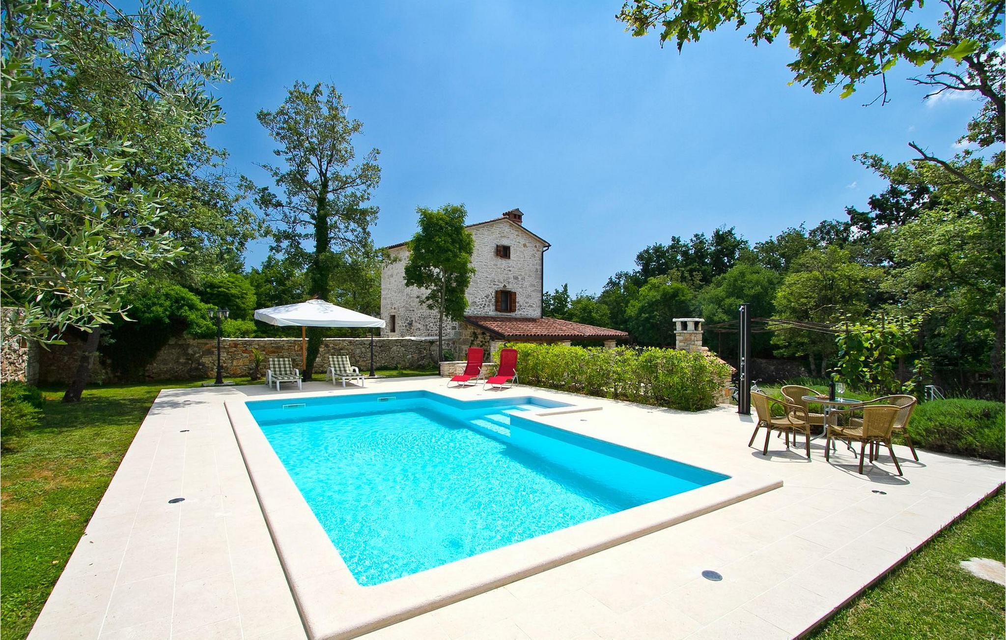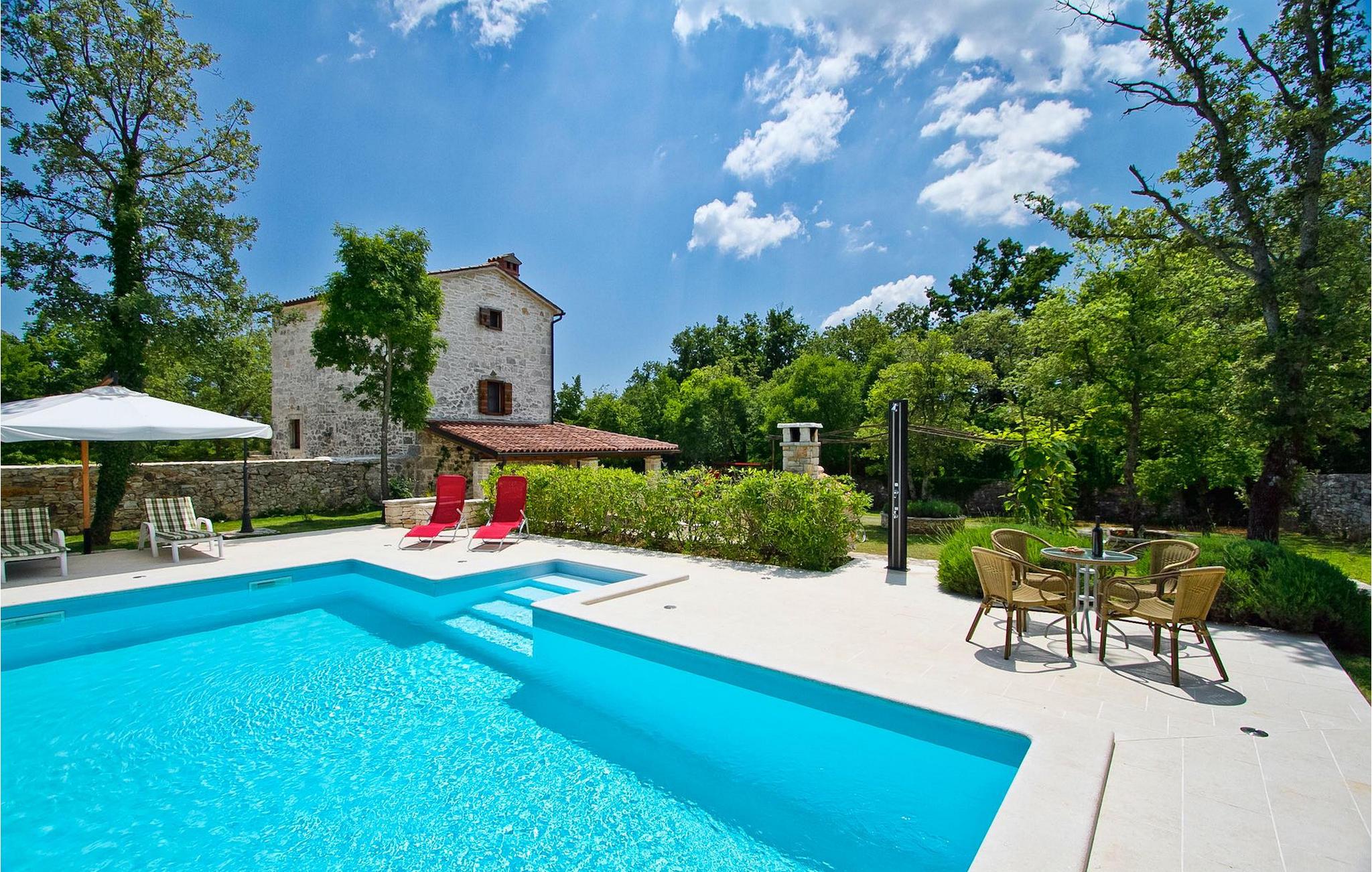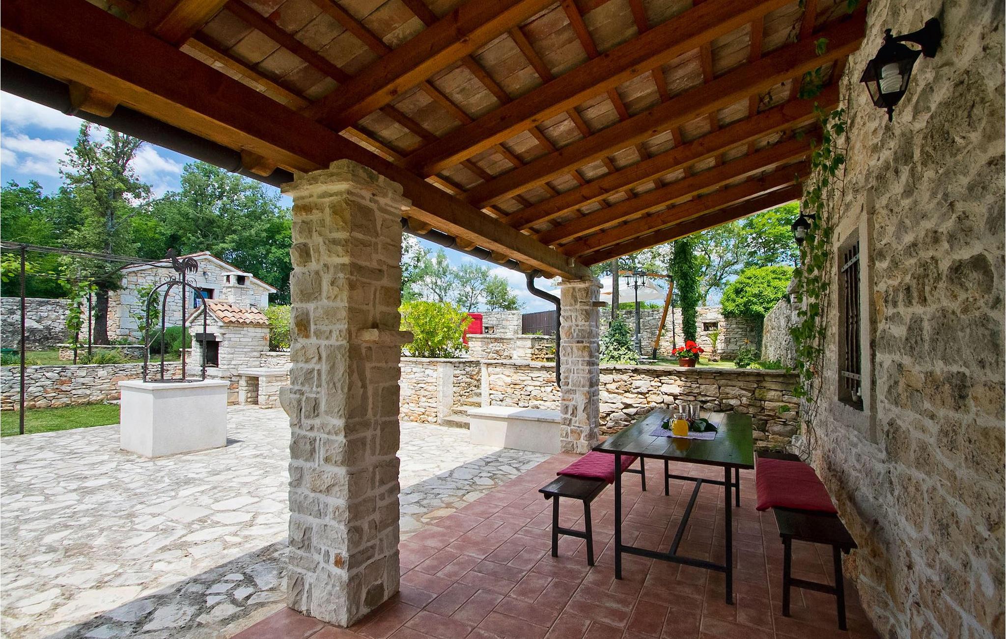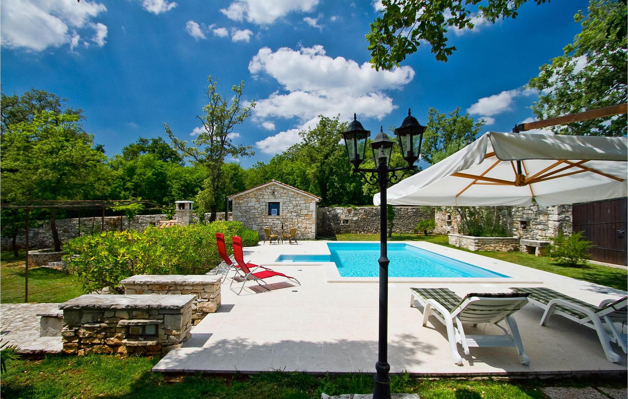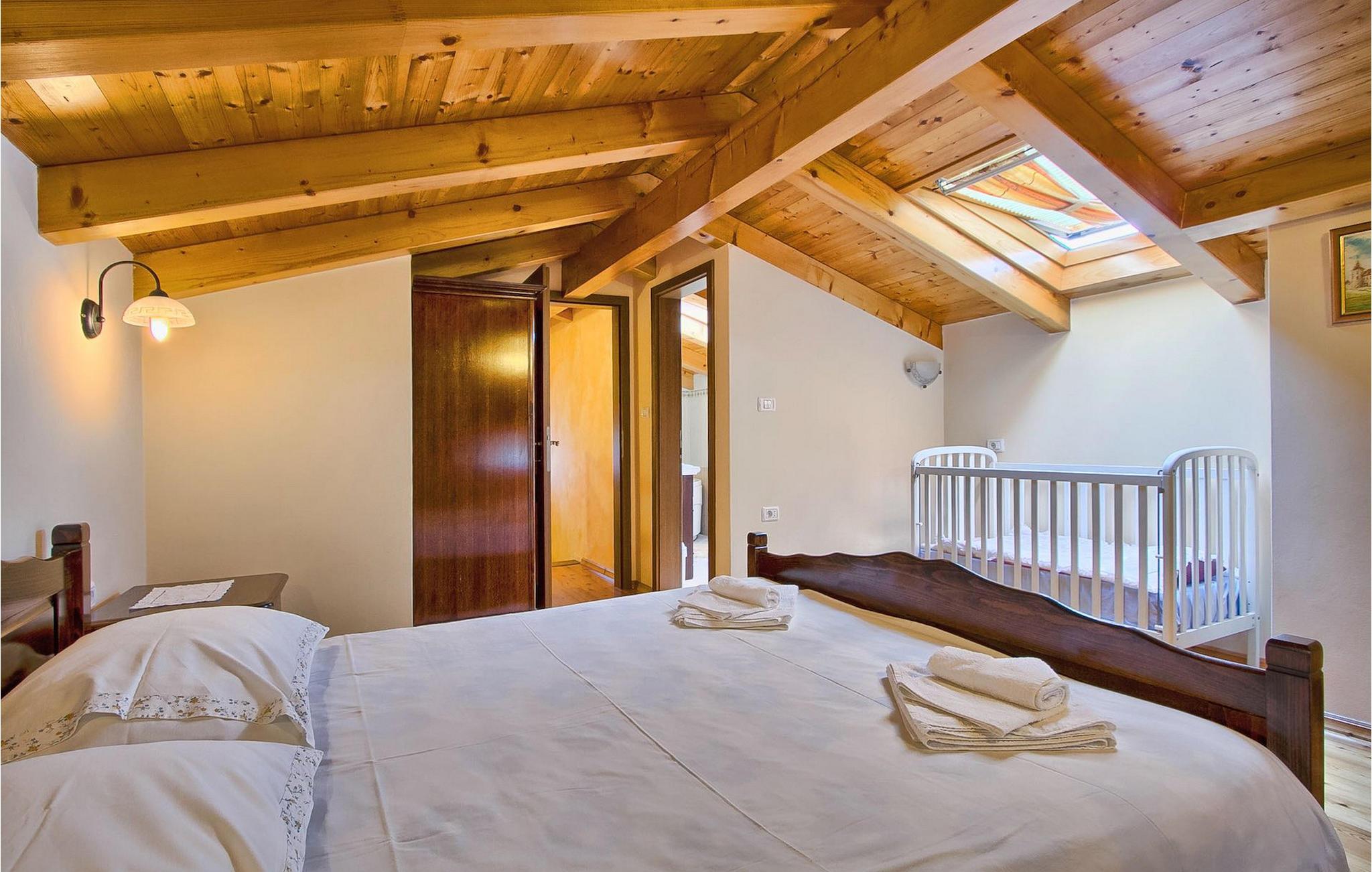 Denne charmerende stenbyggede villa tilbyder fred og privatliv for gæster, der søger ro og et tilflugtssted fra det hektiske moderne liv. Denne ensomme villa er beliggende på et roligt og privat stykke jord, og den byder på mange faciliteter; en privat swimmingpool, stenbygget grill, legeplads, streetballbane, badminton- og fodboldbane. Villaen kan komfortabelt rumme gæster i 2 soveværelser med dobbeltsenge, det ene med en babyseng, hvis du har brug for det. Soveværelset på første sal har et satellit-tv. Der er to badeværelser, det ene med massagebadekar. Villaen har en smuk og rummelig have fyldt med middelhavsurter, som skaber de perfekte rammer for en afslappende ferie i kombination med den private pool. Krnica er et lille sted i Istrien, der ligger lidt væk fra havet (5 min. kørsel). Det er den perfekte base for dagsture til de berømte byer Pula, Rovinj og Opatija. Krnica er også et glimrende sted at kombinere både afslapning og aktiv ferie. I den nærliggende havn er der et veludstyret dykkercenter, som henvender sig til både begyndere og øvede dykkere, der tilbyder dyk til gamle sunkne skibe, spektakulære undervandshuler, klipper og spændingen ved natdykning. Istriens østkyst byder på en mangfoldighed af strande og krystalklart hav. Den uberørte kyst afslører fredelige bugter med blide småsten, friske klipper badet i bølger og den rene hvidhed af glat sten kronet med aromatiske træsorter. Med sine mange kyst- og skovstier er dette område fantastisk til mountainbiking, lange afslappende gåture, ridning, men også som udgangspunkt for udflugter til at opdage det magiske Istrien. Krnicki Porat er en dejlig fiskerihavn, hvor du stadig kan se dens lange traditioner. Vigtigt: ungdomsgrupper er ikke tilladt.