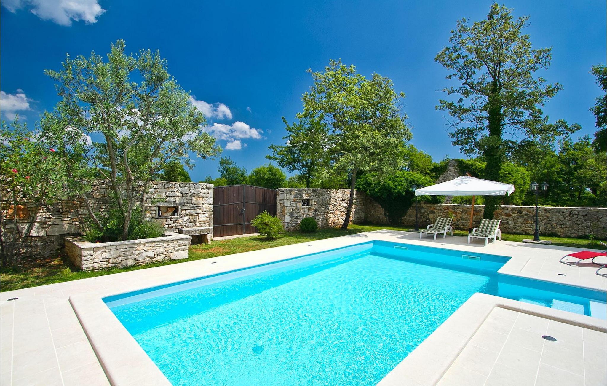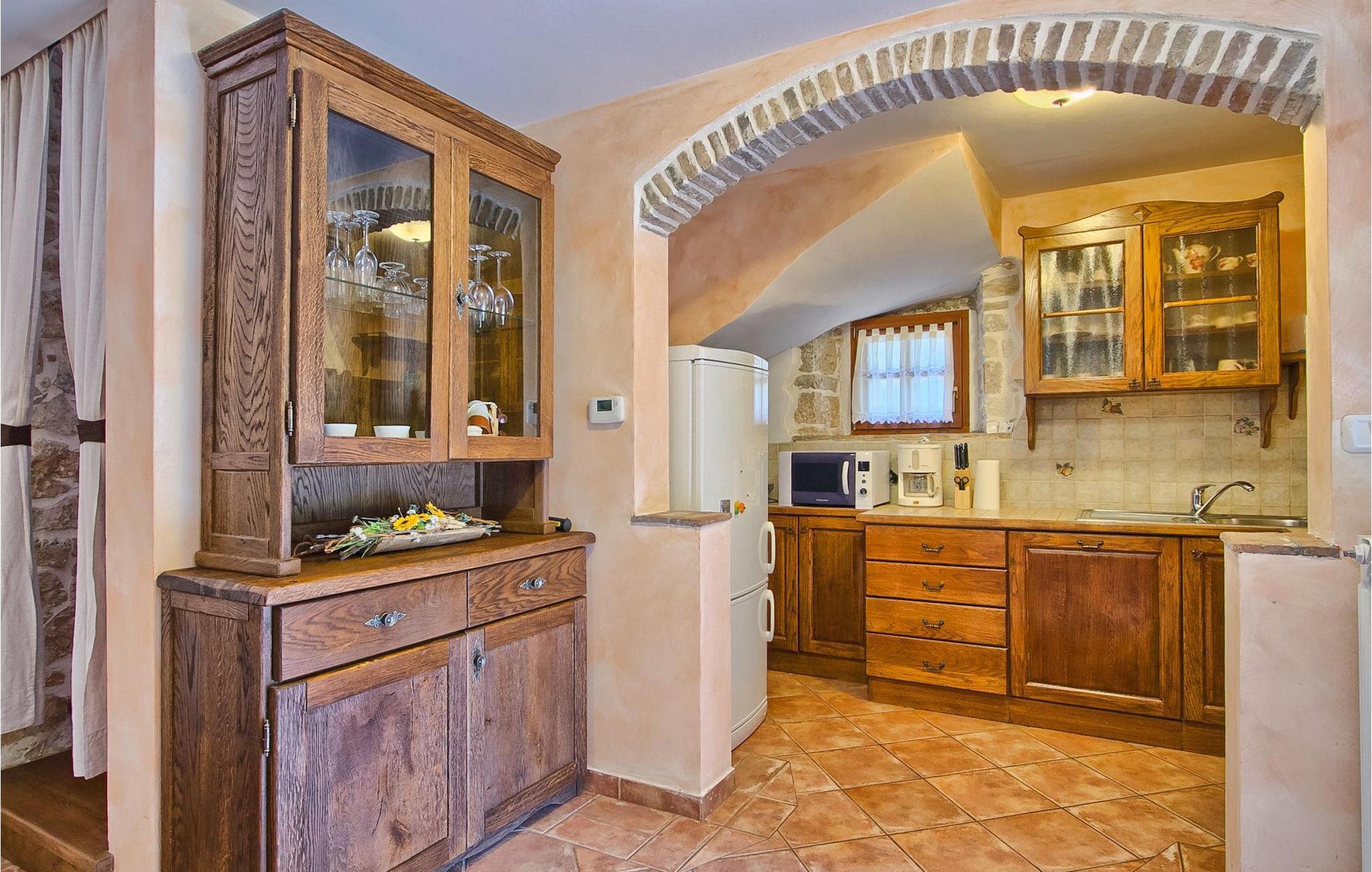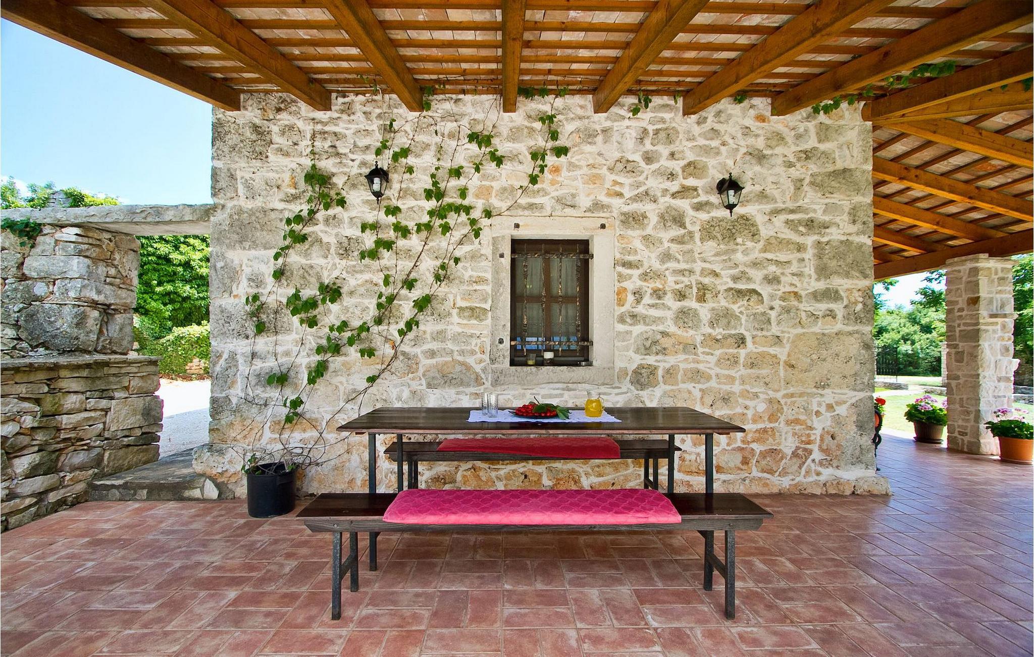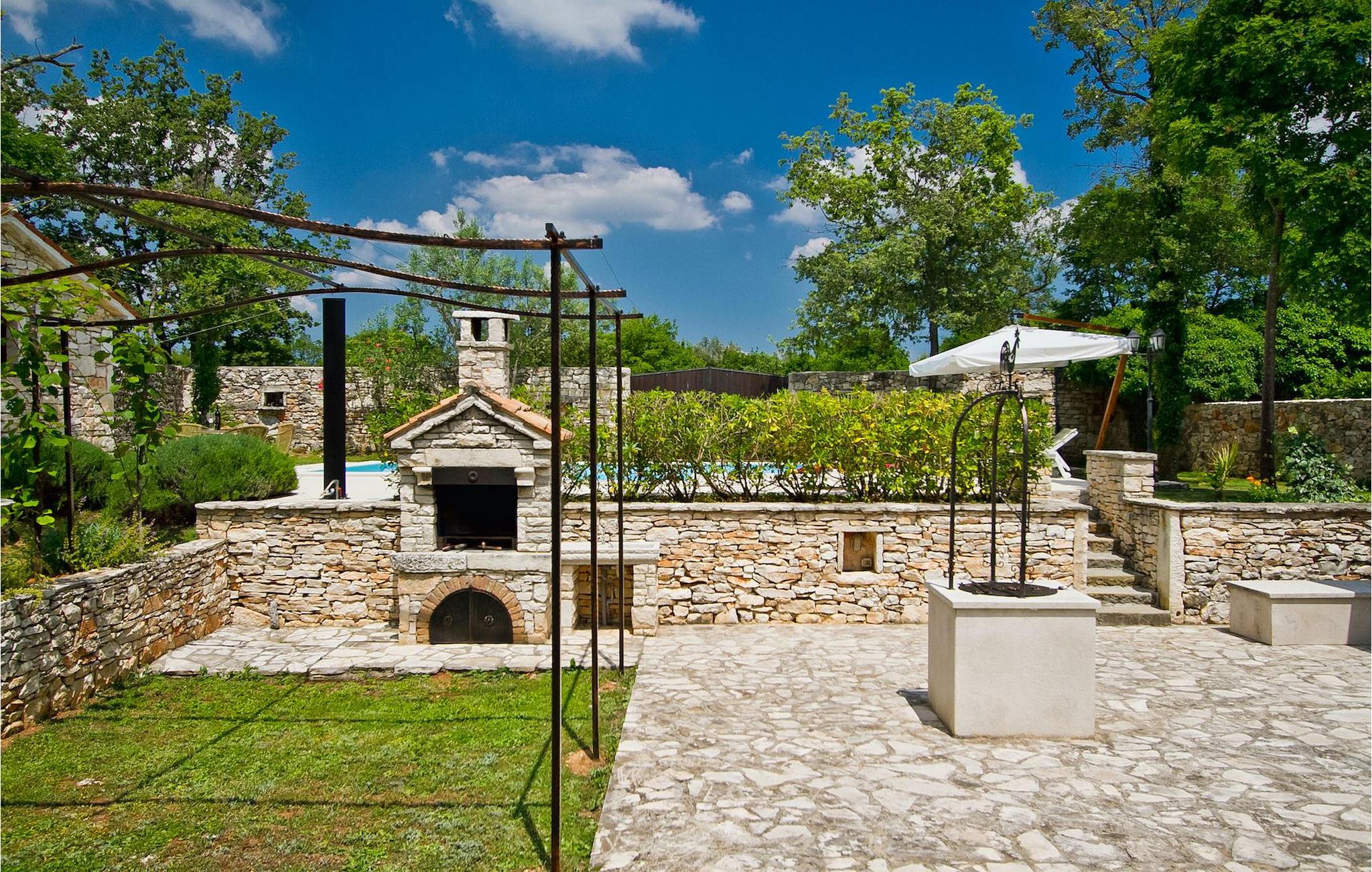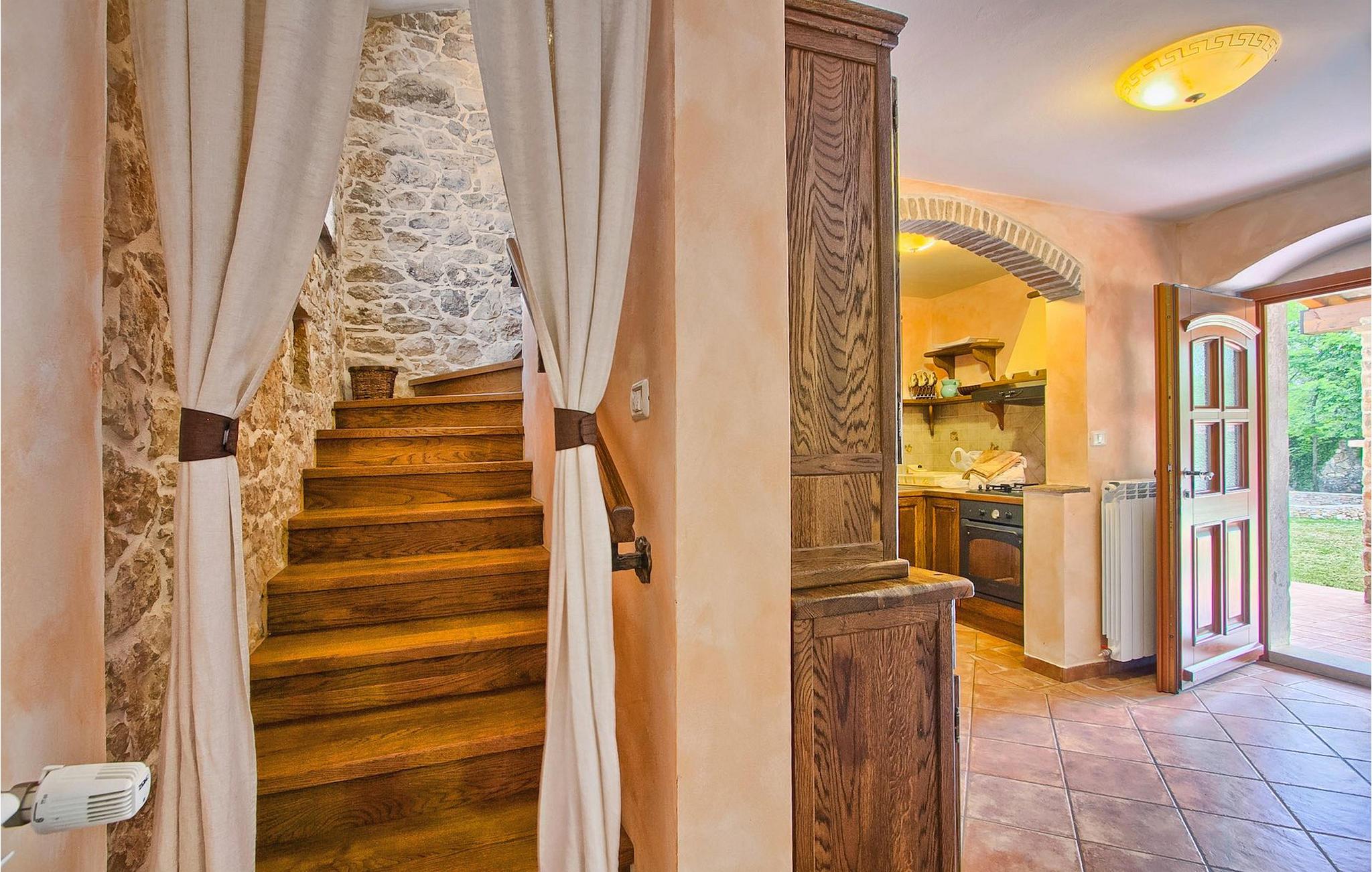 Denne charmerende stenbyggede villa tilbyder fred og privatliv for gæster, der søger ro og et tilflugtssted fra det hektiske moderne liv. Denne ensomme villa er beliggende på et roligt og privat stykke jord, og den byder på mange faciliteter; en privat swimmingpool, stenbygget grill, legeplads, streetballbane, badminton- og fodboldbane. Villaen kan komfortabelt rumme gæster i 2 soveværelser med dobbeltsenge, det ene med en babyseng, hvis du har brug for det. Soveværelset på første sal har et satellit-tv. Der er to badeværelser, det ene med massagebadekar. Villaen har en smuk og rummelig have fyldt med middelhavsurter, som skaber de perfekte rammer for en afslappende ferie i kombination med den private pool. Krnica er et lille sted i Istrien, der ligger lidt væk fra havet (5 min. kørsel). Det er den perfekte base for dagsture til de berømte byer Pula, Rovinj og Opatija. Krnica er også et glimrende sted at kombinere både afslapning og aktiv ferie. I den nærliggende havn er der et veludstyret dykkercenter, som henvender sig til både begyndere og øvede dykkere, der tilbyder dyk til gamle sunkne skibe, spektakulære undervandshuler, klipper og spændingen ved natdykning. Istriens østkyst byder på en mangfoldighed af strande og krystalklart hav. Den uberørte kyst afslører fredelige bugter med blide småsten, friske klipper badet i bølger og den rene hvidhed af glat sten kronet med aromatiske træsorter. Med sine mange kyst- og skovstier er dette område fantastisk til mountainbiking, lange afslappende gåture, ridning, men også som udgangspunkt for udflugter til at opdage det magiske Istrien. Krnicki Porat er en dejlig fiskerihavn, hvor du stadig kan se dens lange traditioner. Vigtigt: ungdomsgrupper er ikke tilladt.