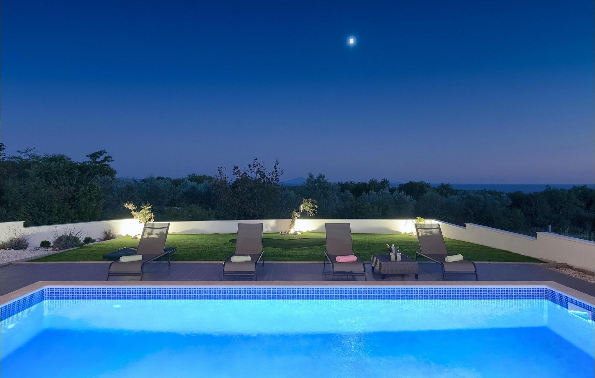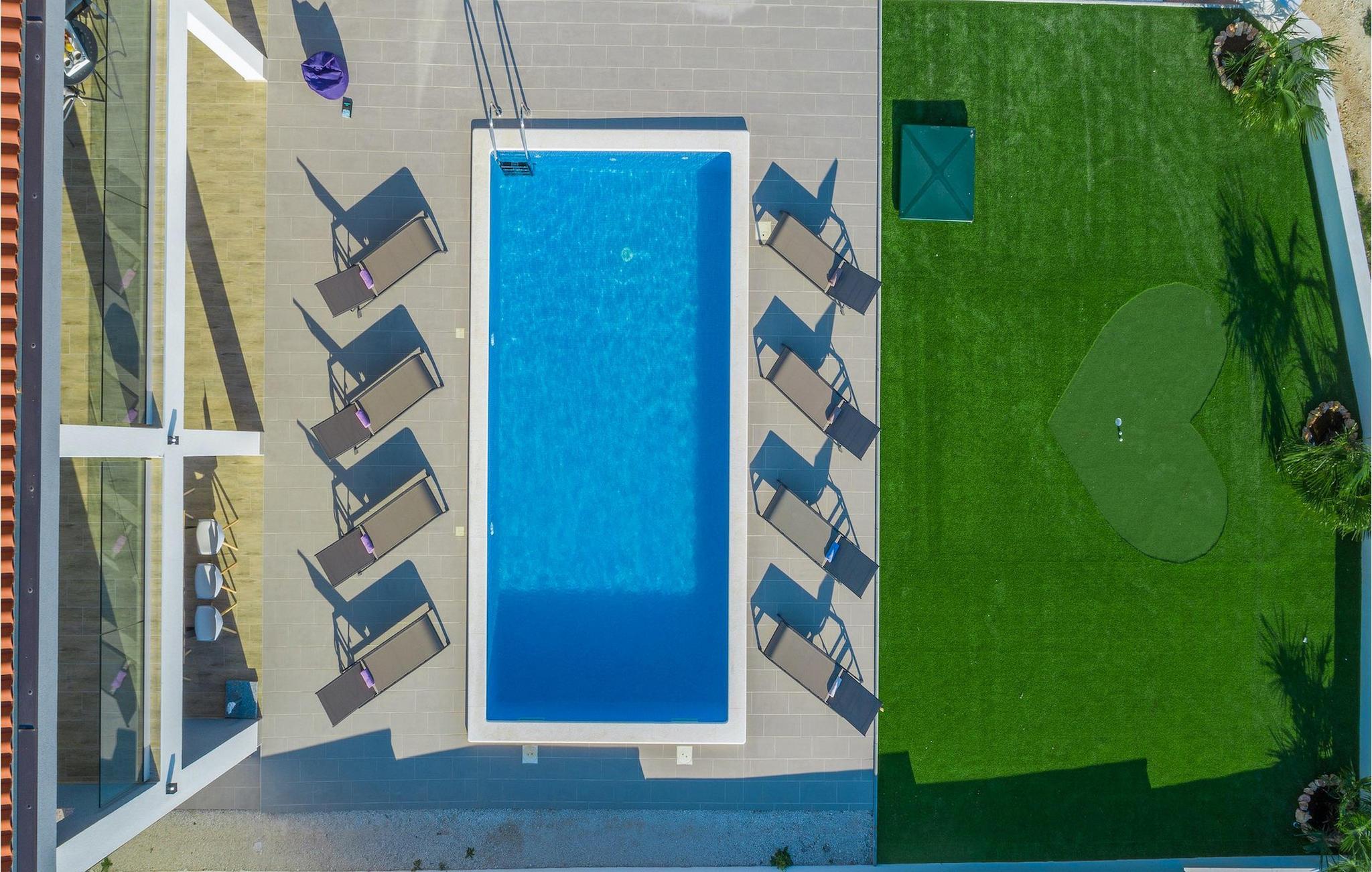 Forlader huset og går udenfor i haven, få en symfoni for alle dine sanser, for for hver gæst er der noget at byde på. Kan du lide at spille minigolf - står din egen kunstgræsbane til din rådighed. Poolen byder på forfriskninger til al sommervarmen, og du kan bogstaveligt talt bade på et øjeblik, så snart du vågner eller om aftenen, mens en let grill griller ved siden af.