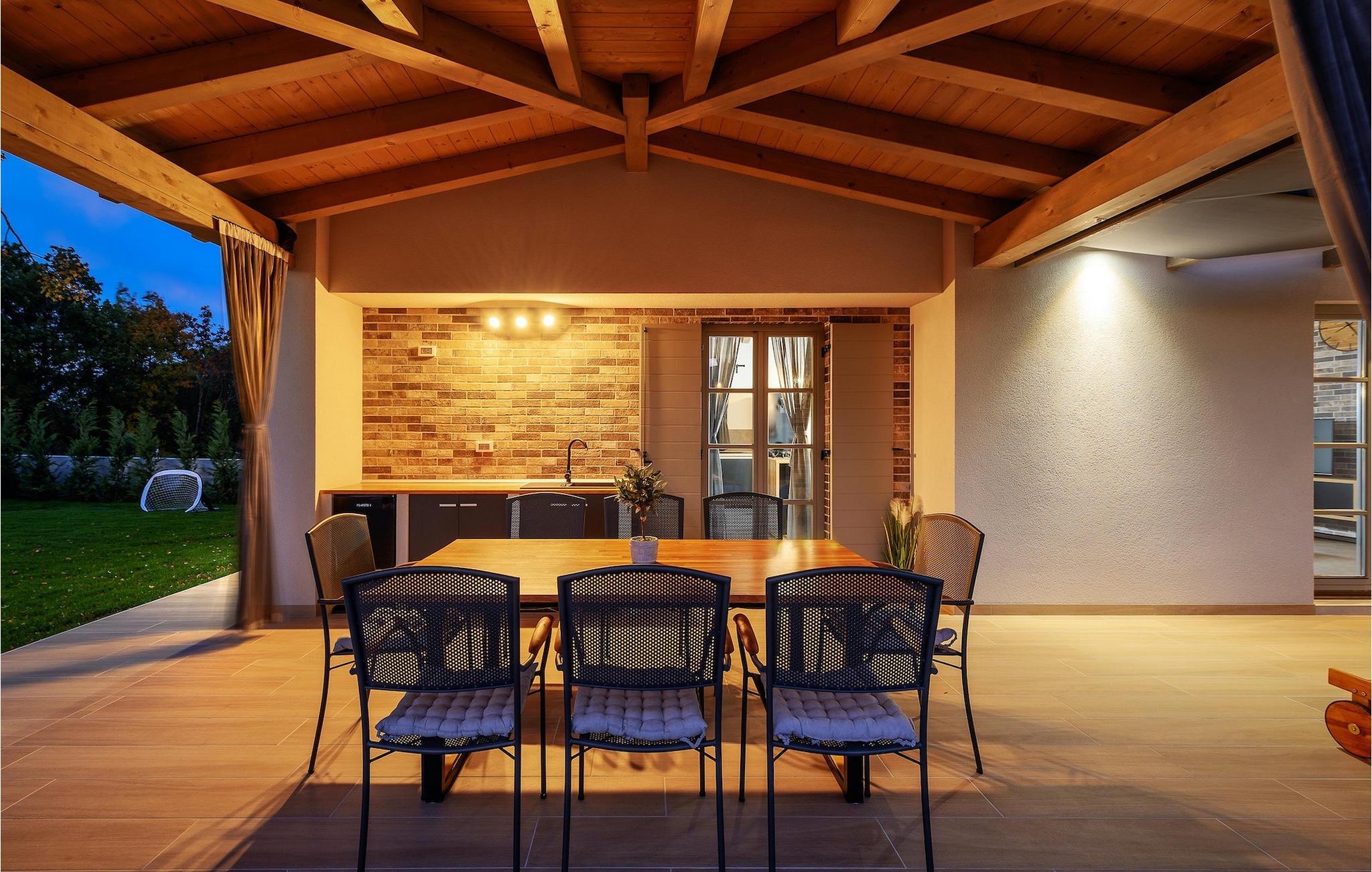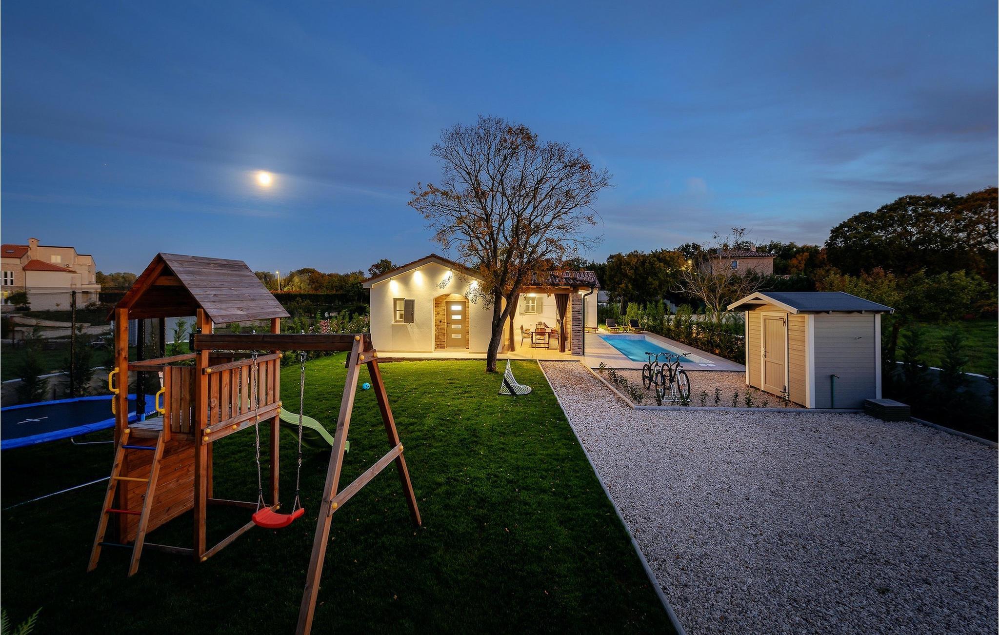I haven finder du en legeplads og minifodboldmål, og for alle eventyrfans er der to cykler til rådighed. .Villa Acorn ligger i den lille landsby Mali Vareški nær Pula, kun 3 kilometer fra den nærmeste strand. Pula er i dag den største by i Istrien og havnen i Pula regnes stadig som en af de vigtigste havne i Kroatien. Med sin lange historie byder Pula på en række historiske og kulturelle attraktioner, hvor arenaen spiller den vigtigste rolle siden Romerriget. Nogle andre steder, som du ikke bør springe over, er det berømte Augustus tempel, Sergiens Triumfbue – Den Gyldne Port, det gamle slot og et lille romersk teater. Om sommeren byder byen Pula på mange kulturelle begivenheder, du bør besøge. Når du er i Pula, bør du bestemt prøve traditionelle specialiteter på istriske restauranter og taverner. For alle eventyrfans er der adskillige vandre- og cykelstier i Istrien, samt en række vandaktiviteter på kysten såsom dykning eller sejlads. Holder du din ferie i Istrien, anbefaler vi at tage en tur til Brijuni National Park og Kap Kamenjak.