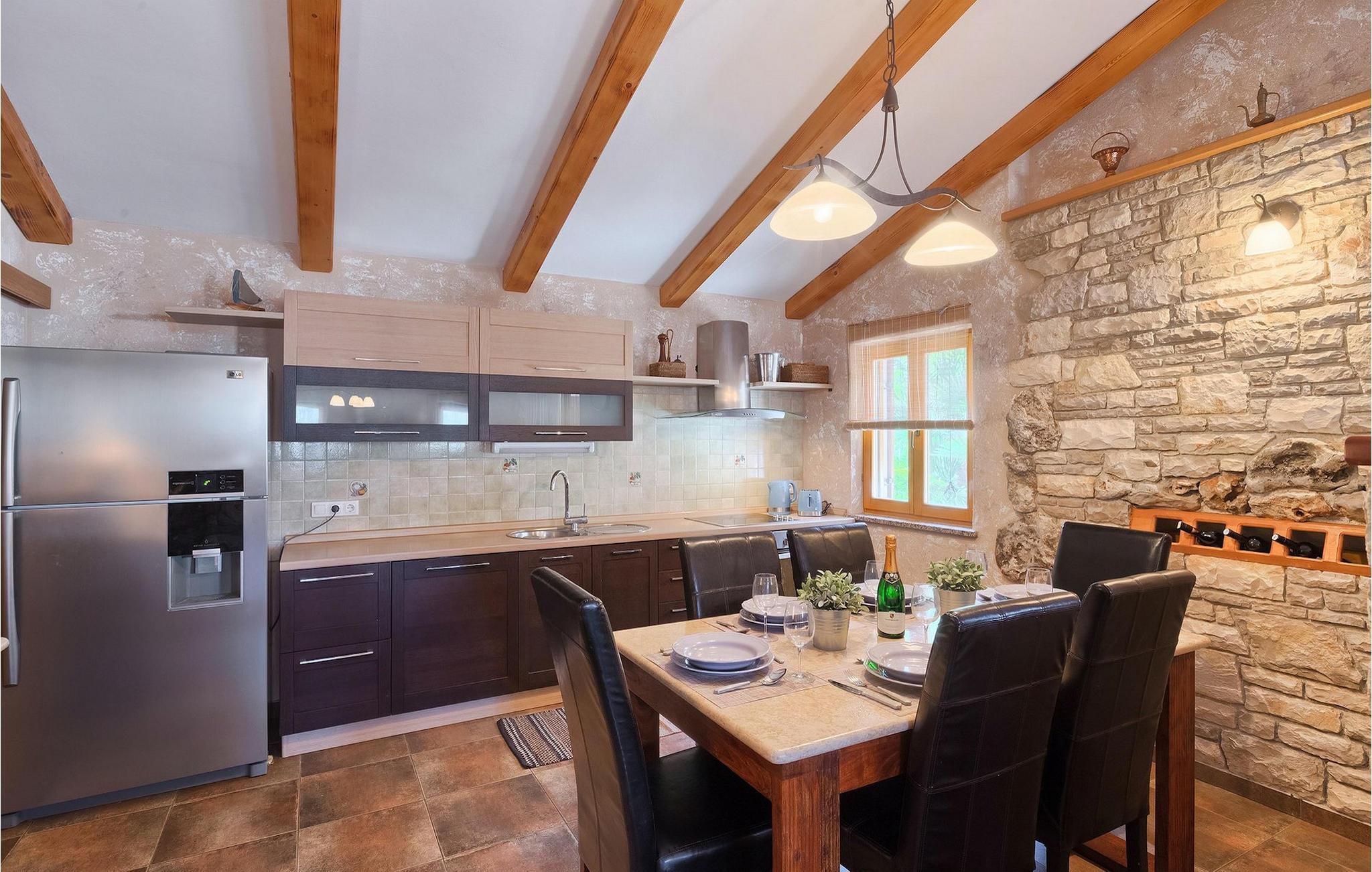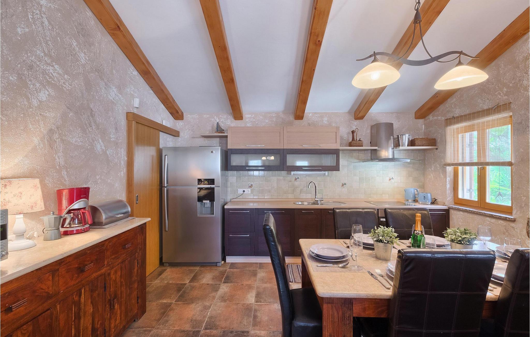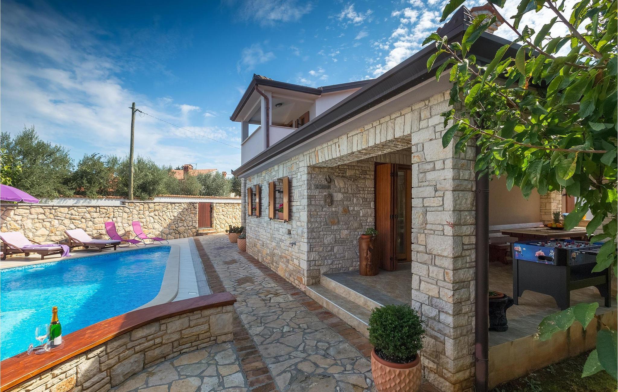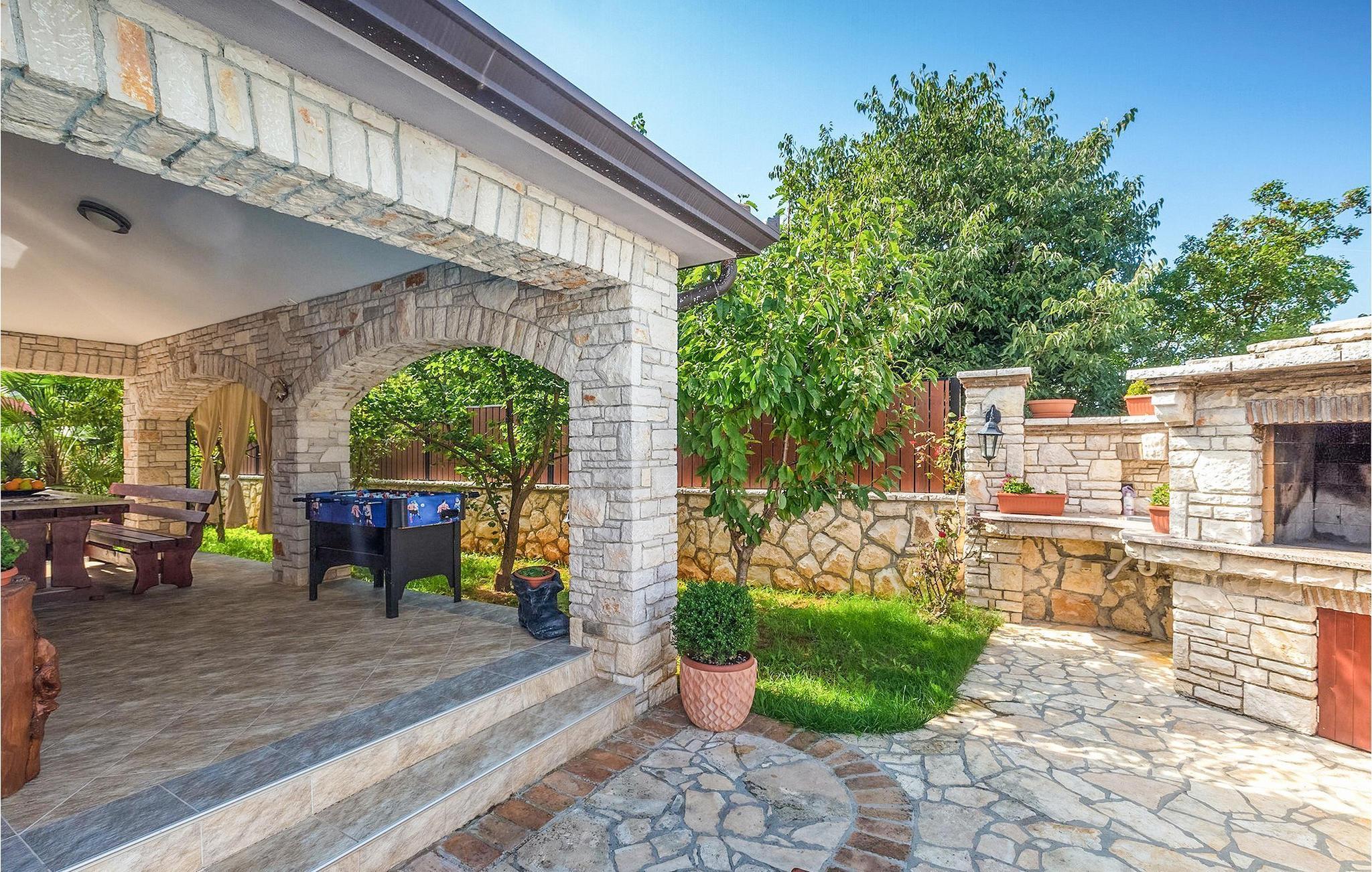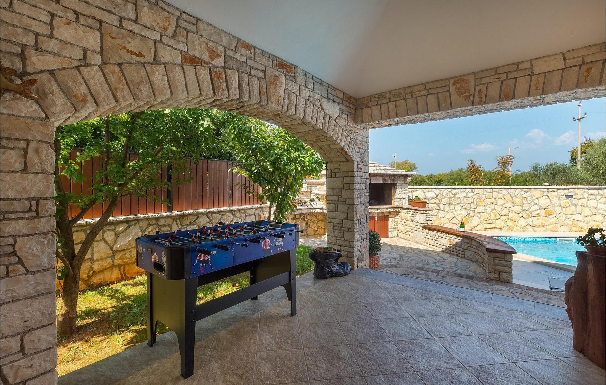 Denne villa tilbyder en privat swimmingpool i en smuk have. Du er velkommen til at tilbringe varme sommeraftener udendørs, spise middag på den overdækkede terrasse og nyde roen i denne lille istriske landsby, men også have det sjovt med et godt spil bordfodbold.