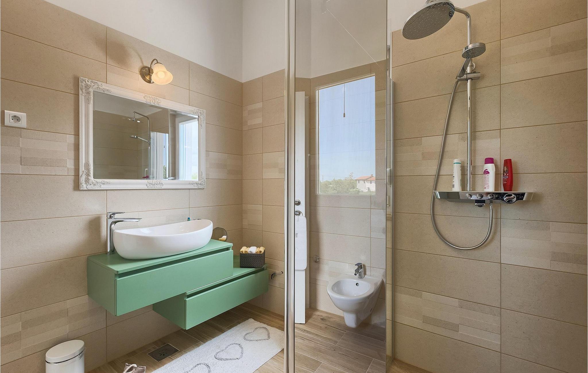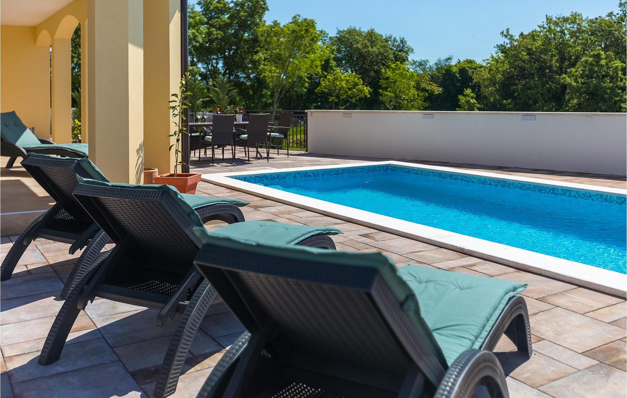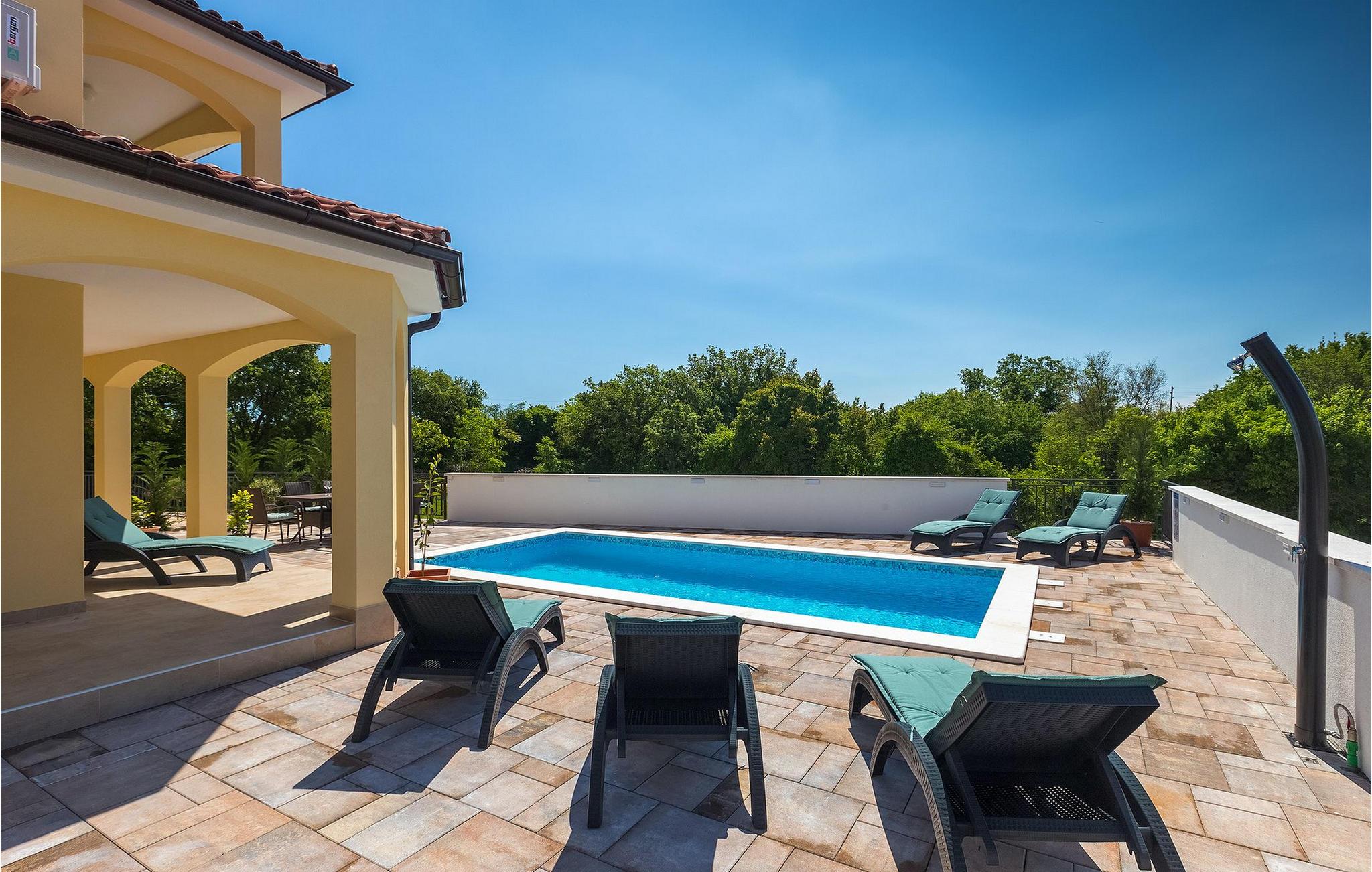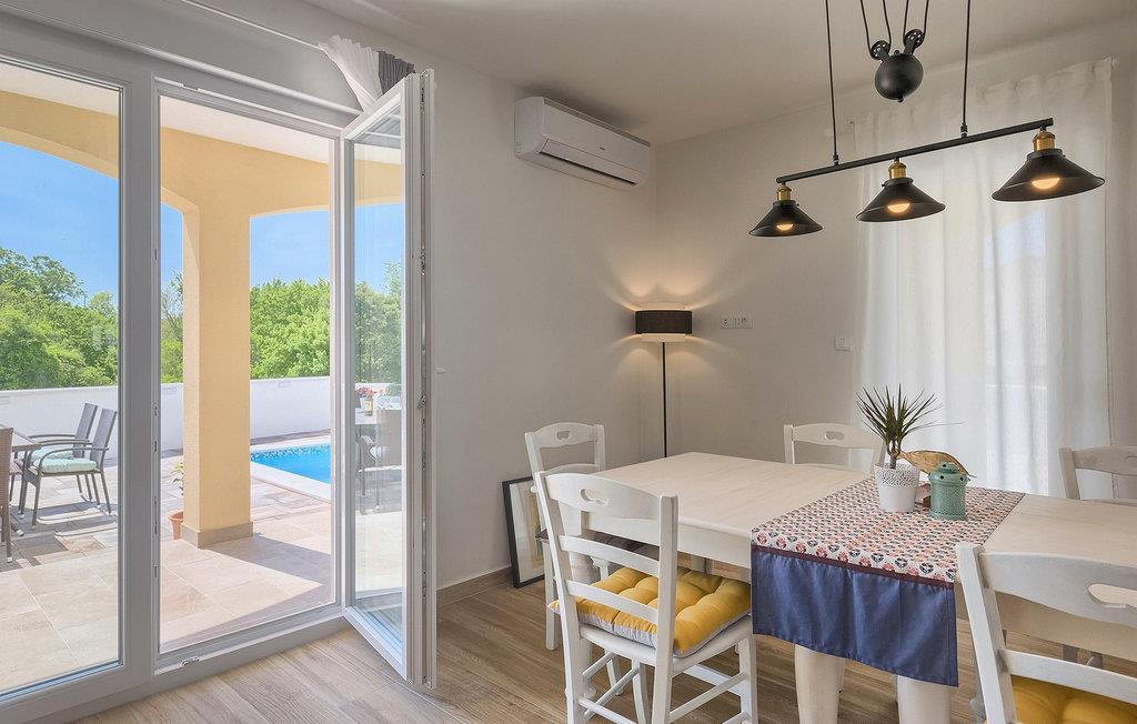 Smukke villa Florami er en perfekt familieferie. Beliggende i Krnica, kun ca. 3 km fra den nærmeste strand tilbyder denne villa ideel indkvartering i sine 3 kærligt indrettede soveværelser. Alle værelser har aircondition og tv. 3 soveværelser på øverste etage har adgang til altanen, det perfekte sted for en morgenkaffe til at starte din dag rigtigt. Et af disse soveværelser har eget badeværelse, mens de resterende to soveværelser deler det andet badeværelse. I underetagen er stueetagen et lyst og hyggeligt åbent område, indrettet med en masse kærlighed og opdelt i en stue og et fuldt udstyret køkken med spiseplads. Bordfodbold står til din rådighed for yderligere underholdning. Direkte fra spisepladsen har du adgang til terrassen og den udendørs spiseplads lige ved siden af den indbydende private pool. En kulgrill er til rådighed for dem, der er villige til at tilberede måltider udendørs, mens andre kan lægge sig på liggestolene og vente på, at måltidet bliver klar. Tre cykler står til din rådighed, hvis du ønsker at nå den nærmeste butik i centrum af Krnica, ca. 200 m væk, lidt hurtigere end til fods. Denne villa er et godt valg for eller alle dem, der søger en afslappende ferie i fredelige omgivelser, der også byder på muligheder for en aktiv ferie. Krnica er et lille sted i Istrien, som ligger kun få kilometer fra havet. Krnica kombinerer det bedste fra kyst- og landdistrikterne Istrien og er også den perfekte base for dagsture til de berømte byer Pula, Rovinj eller Opatija. Krnica er også et glimrende sted at kombinere både afslapning og aktiv ferie. I den nærliggende havn er der et fremragende udstyret dykkercenter, der opdager gamle sunkne skibe, undervandshuler, klipper, spændingen ved natdykning for både begyndere og erfarne dykkere. Østkysten af Istrien byder på en mangfoldighed af strande og krystalklart hav. Med sine mange kyst- og skovstier er dette område fantastisk til mountainbiking, lange afslapningsture, ridning, men også som udgangspunkt for at opdage små byer i det centrale Istrien. Krnicki Porat, kun 3 km væk, er en dejlig havn, der udstråler med den tidløse fiskertradition. Madelskere vil også nyde de gastronomiske delikatesser og produkter fra dette område.