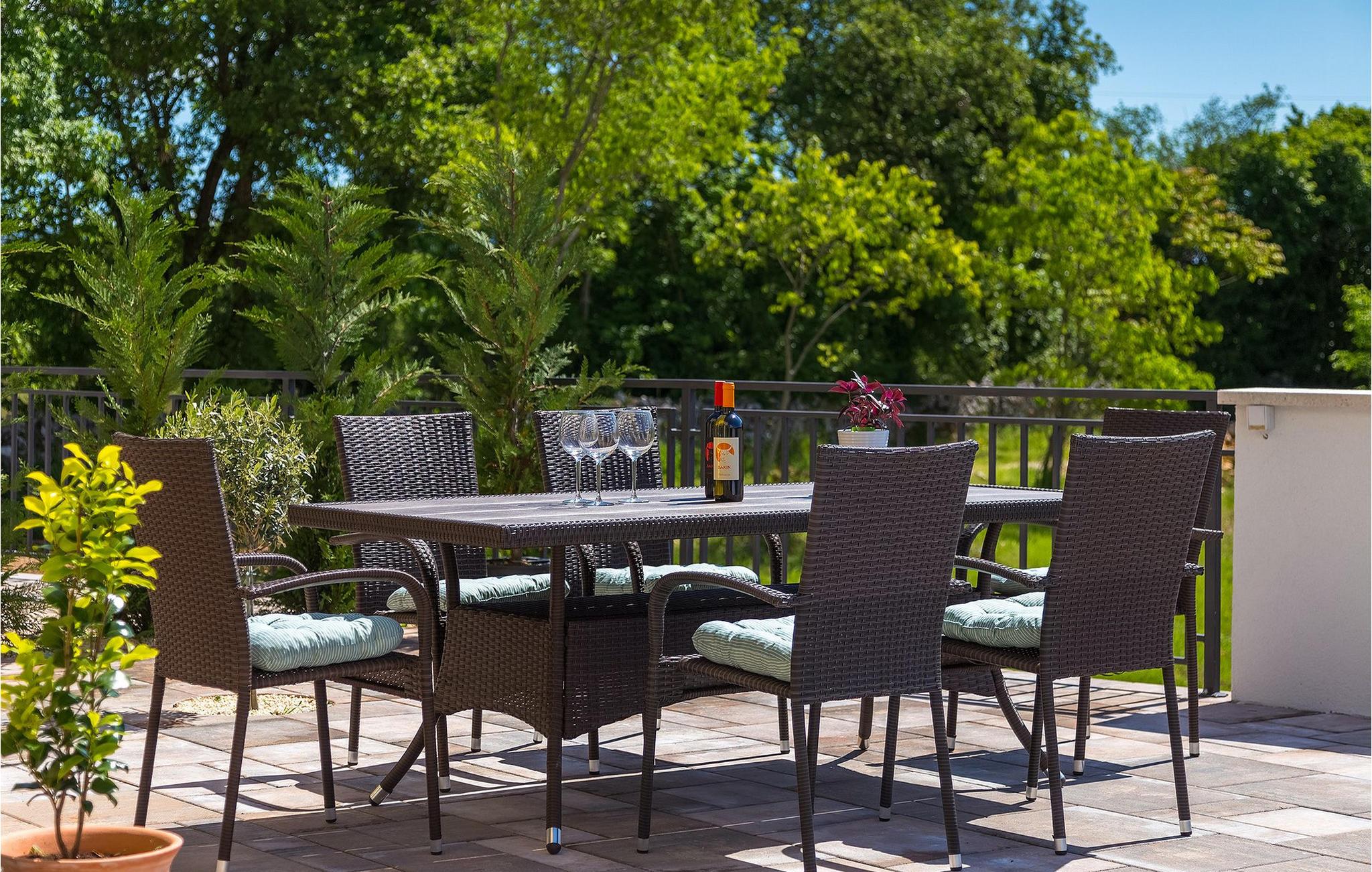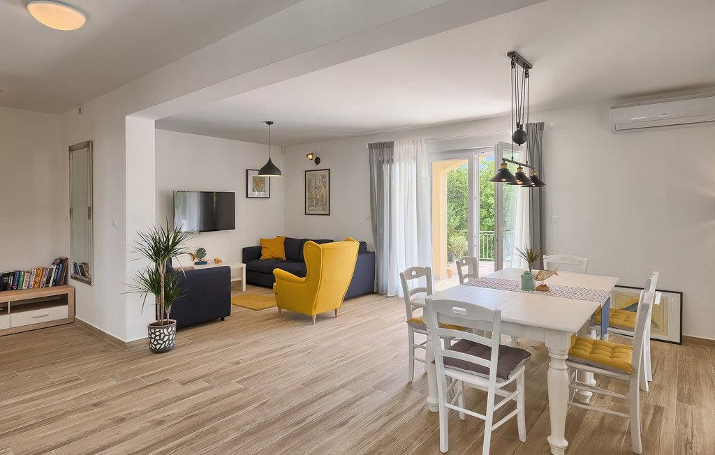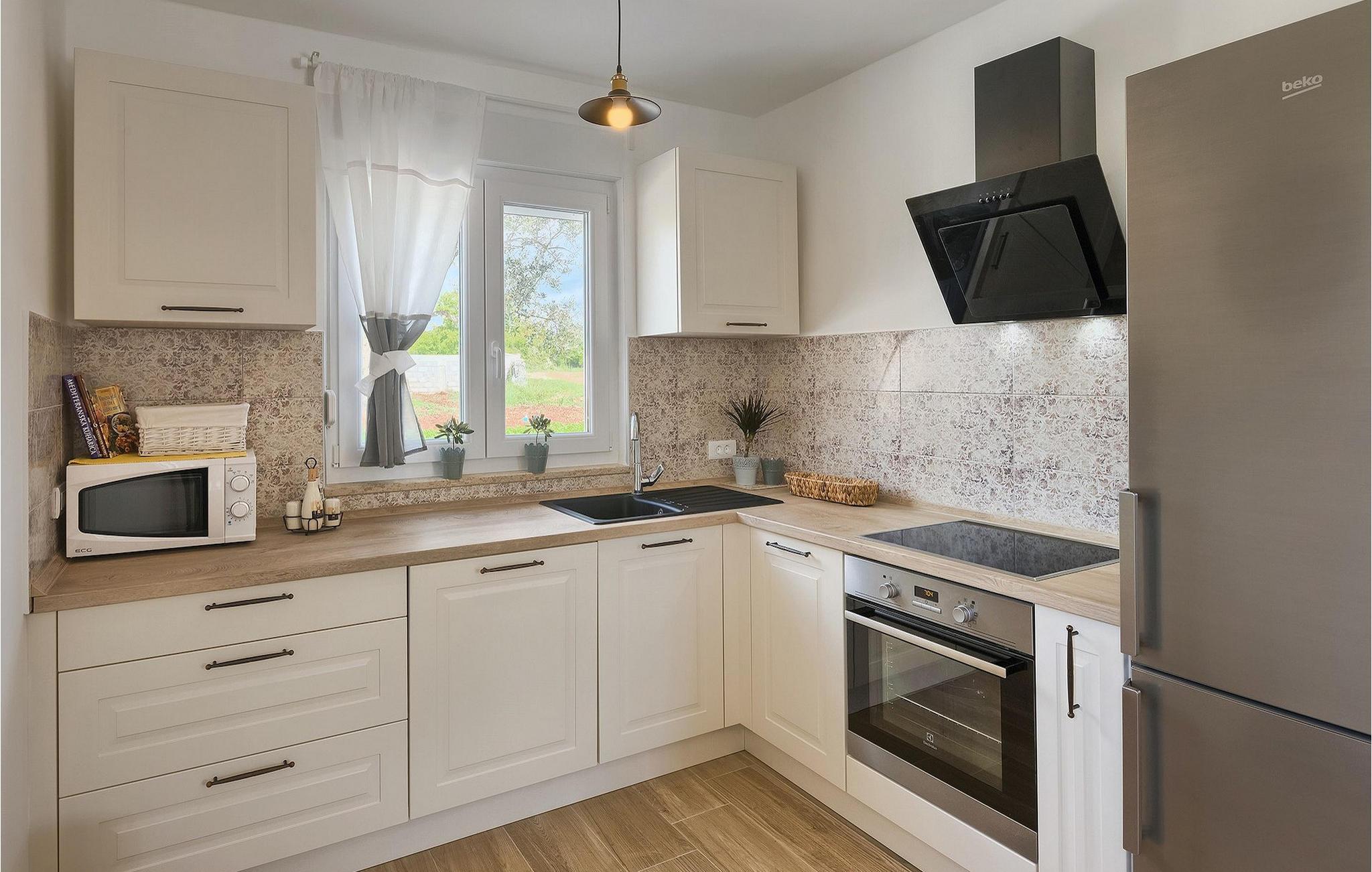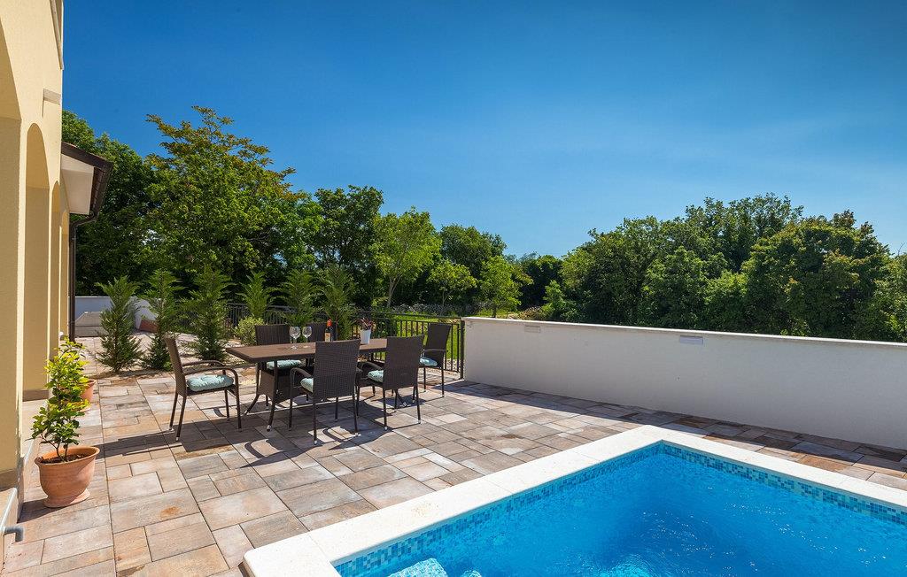 Smukke villa Florami er en perfekt familieferie. Beliggende i Krnica, kun ca. 3 km fra den nærmeste strand tilbyder denne villa ideel indkvartering i sine 3 kærligt indrettede soveværelser. Alle værelser har aircondition og tv. 3 soveværelser på øverste etage har adgang til altanen, det perfekte sted for en morgenkaffe til at starte din dag rigtigt. Et af disse soveværelser har eget badeværelse, mens de resterende to soveværelser deler det andet badeværelse. I underetagen er stueetagen et lyst og hyggeligt åbent område, indrettet med en masse kærlighed og opdelt i en stue og et fuldt udstyret køkken med spiseplads. Bordfodbold står til din rådighed for yderligere underholdning. Direkte fra spisepladsen har du adgang til terrassen og den udendørs spiseplads lige ved siden af den indbydende private pool. En kulgrill er til rådighed for dem, der er villige til at tilberede måltider udendørs, mens andre kan lægge sig på liggestolene og vente på, at måltidet bliver klar. Tre cykler står til din rådighed, hvis du ønsker at nå den nærmeste butik i centrum af Krnica, ca. 200 m væk, lidt hurtigere end til fods. Denne villa er et godt valg for eller alle dem, der søger en afslappende ferie i fredelige omgivelser, der også byder på muligheder for en aktiv ferie. Krnica er et lille sted i Istrien, som ligger kun få kilometer fra havet. Krnica kombinerer det bedste fra kyst- og landdistrikterne Istrien og er også den perfekte base for dagsture til de berømte byer Pula, Rovinj eller Opatija. Krnica er også et glimrende sted at kombinere både afslapning og aktiv ferie. I den nærliggende havn er der et fremragende udstyret dykkercenter, der opdager gamle sunkne skibe, undervandshuler, klipper, spændingen ved natdykning for både begyndere og erfarne dykkere. Østkysten af Istrien byder på en mangfoldighed af strande og krystalklart hav. Med sine mange kyst- og skovstier er dette område fantastisk til mountainbiking, lange afslapningsture, ridning, men også som udgangspunkt for at opdage små byer i det centrale Istrien. Krnicki Porat, kun 3 km væk, er en dejlig havn, der udstråler med den tidløse fiskertradition. Madelskere vil også nyde de gastronomiske delikatesser og produkter fra dette område.