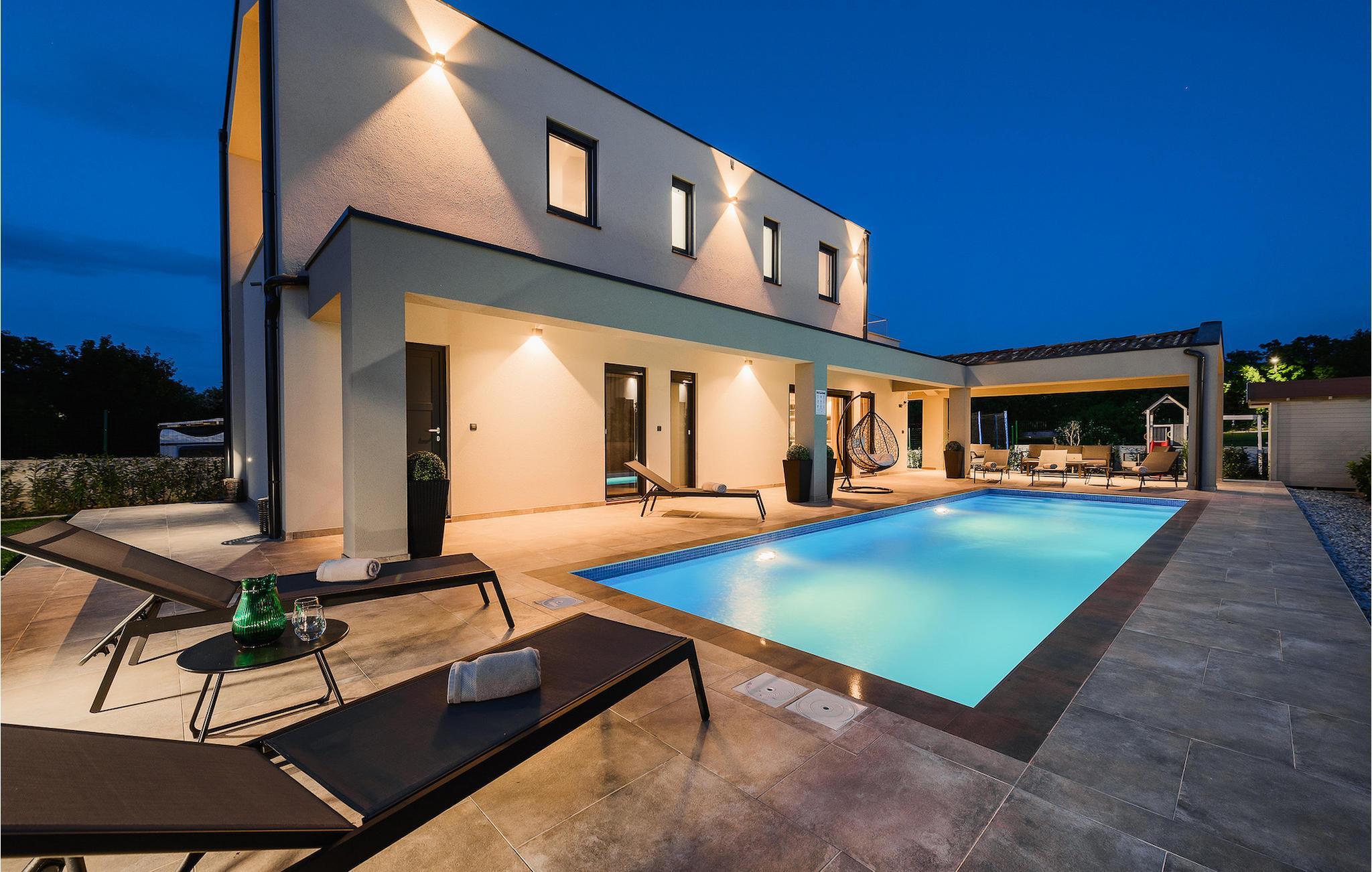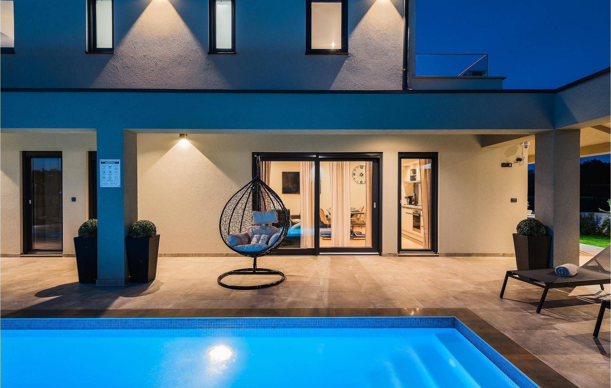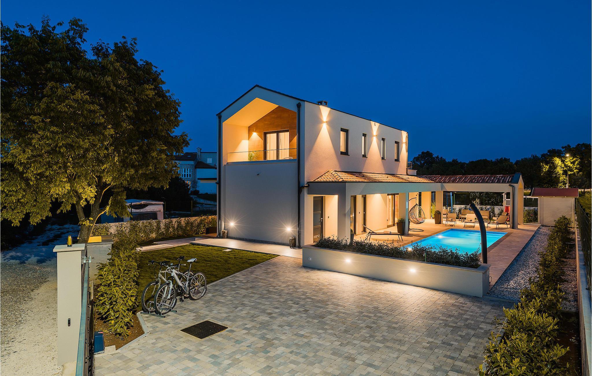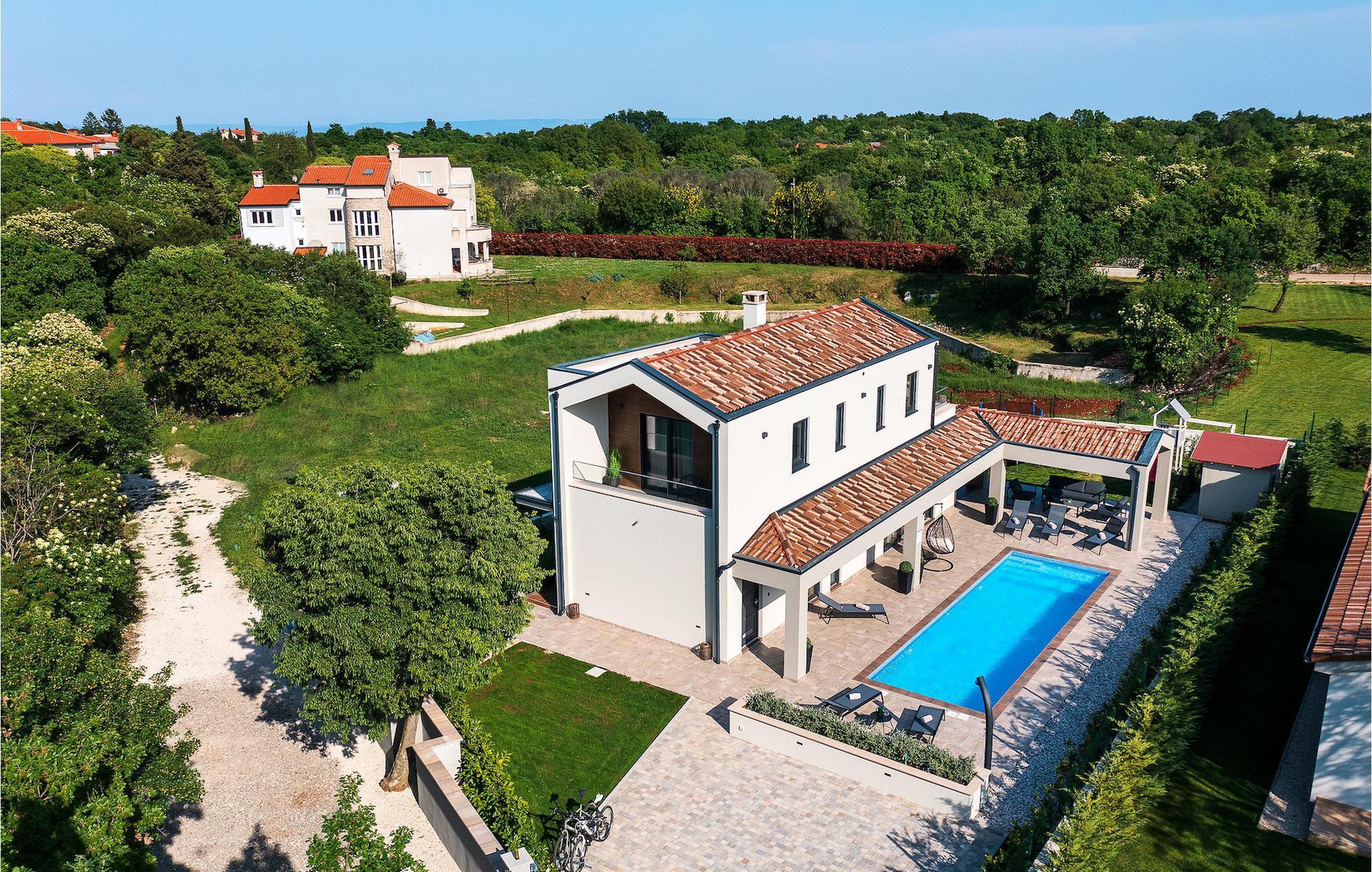 Leder du efter din drømmevilla i Istrien, har vi den perfekte villa. Villa Nobu er en moderne familievilla beliggende i den smukke landsby Mali Vareski, kun en kort køretur fra Pula. Villaen i to etager med 150 kvadratmeter boligareal kan rumme 6 personer og er nænsomt indrettet. Stueetagen består af en rummelig opholdsstue med pejs, et moderne og fuldt udstyret køkken og en spisestue. Der er også et soveværelse med dobbeltseng med eget badeværelse og et separat gæstetoilet. Ovenpå er der yderligere to soveværelser, et med dobbeltseng og et med to enkeltsenge, hver med eget badeværelse. På første sal er der altan, det perfekte sted at nyde den smukke solnedgang og omgivelserne. Ønsker du at holde din ferie i solen, er der en indbydende pool med liggestole foran villaen. Et overdækket sommerkøkken med spiseplads ligger kun få skridt væk. Der er også en kulgrill, hvor du kan tilberede lækre måltider til din familie og venner. Mens du nyder dit måltid, kan dine børn slippe dampen ud på legepladsen eller trampolinen. Hvis du vil udforske omgivelserne, er der 2 cykler til din rådighed.