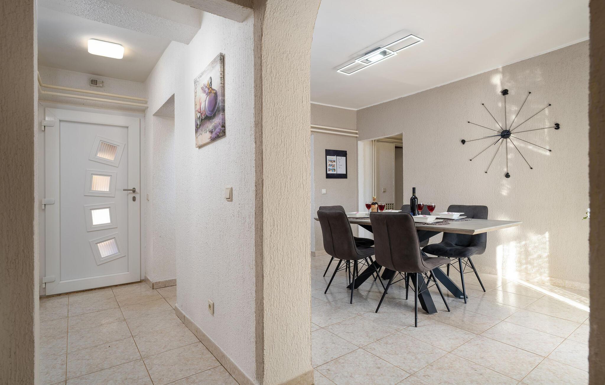 Villa Lara er et smukt møbleret og renoveret feriehus i den rolige landsby Belavici på Istriens østkyst. Kun 6 km fra den nærmeste strand og en kort køretur fra Pula tilbyder det både fred og nem adgang til lokale attraktioner. I nærheden finder du et pizzeria, en butik og et agriturismested, der serverer lokale retter. Villaen ligger på en rummelig grund og er ideel til familier. Det har en swimmingpool, en overdækket terrasse med grill og masser af legeredskaber til børn. Villa Lara består af to separate enheder forbundet med udvendige trapper. Stueetagen indeholder en hyggelig stue med pejs og udgang til terrassen, en spisestue til seks personer med udsigt over poolen og et veludstyret køkken. Der er desuden to dobbeltværelser, bad/toilet og separat toilet. Første sal afspejler denne plantegning og tilbyder ekstra plads og privatliv. Et besøg i nærliggende Pula er et must, hvor du kan udforske det storslåede romerske amfiteater, slentre i gamle gader og opleve den rige kulturarv i denne pulserende kystby. Bemærk venligst, at denne ejendom ikke accepterer ungdomsgrupper eller polterabender. En ungdomsgruppe på denne ejendom består af personer på 26 år eller derunder.