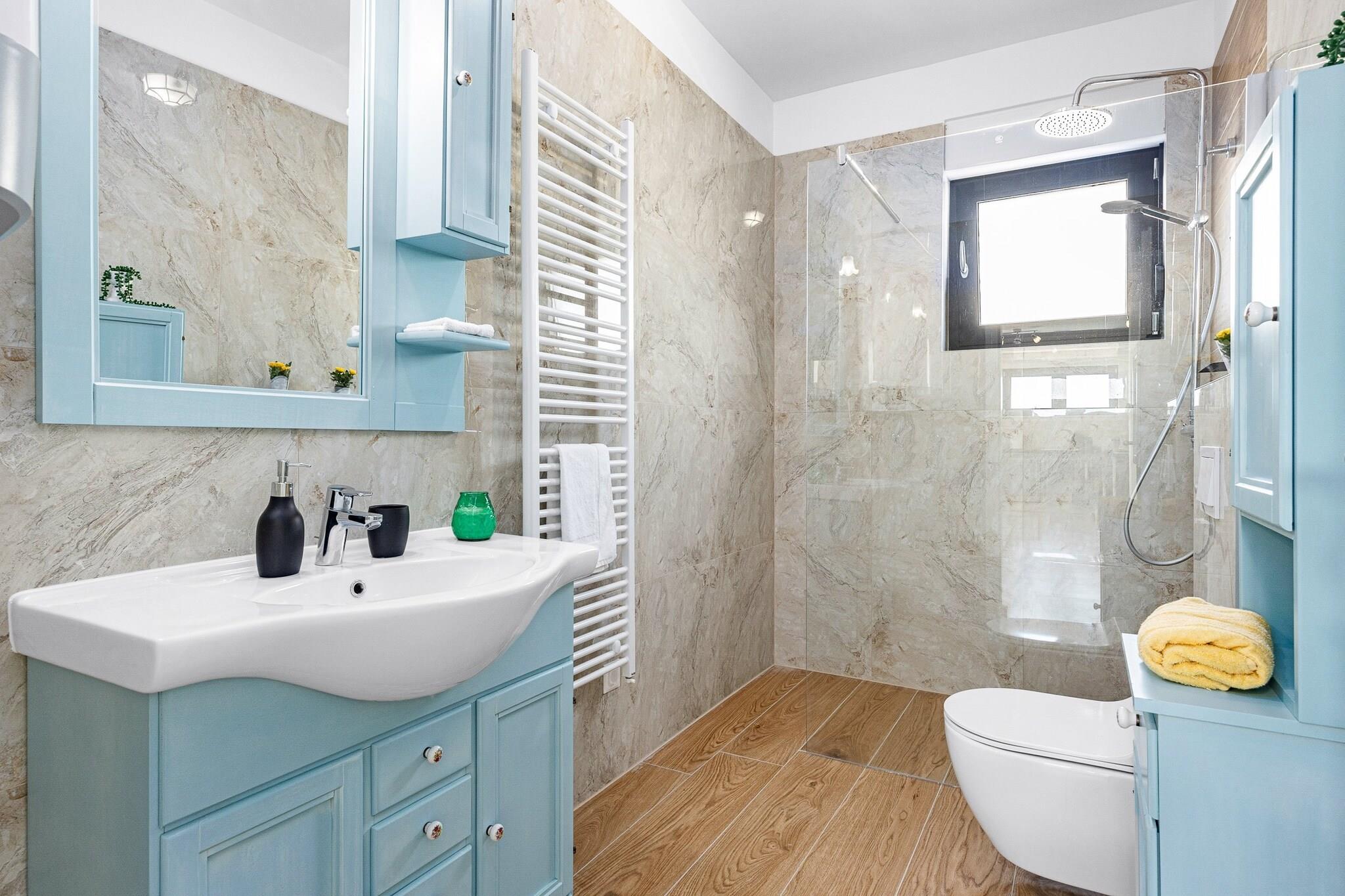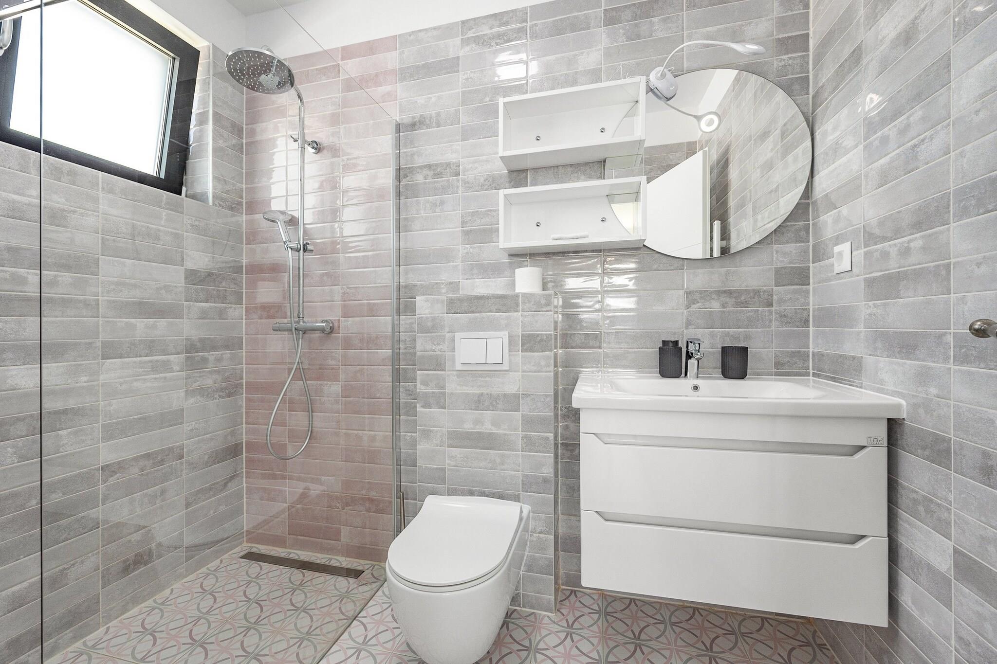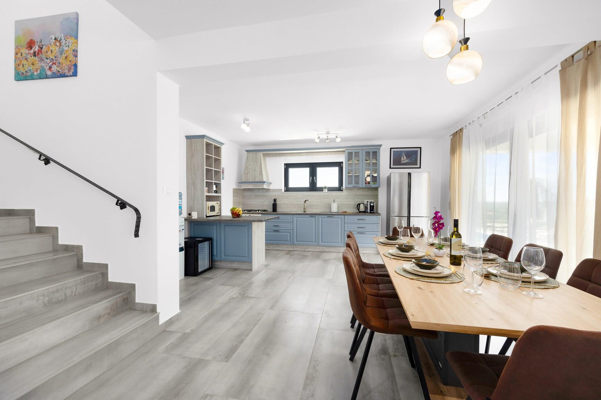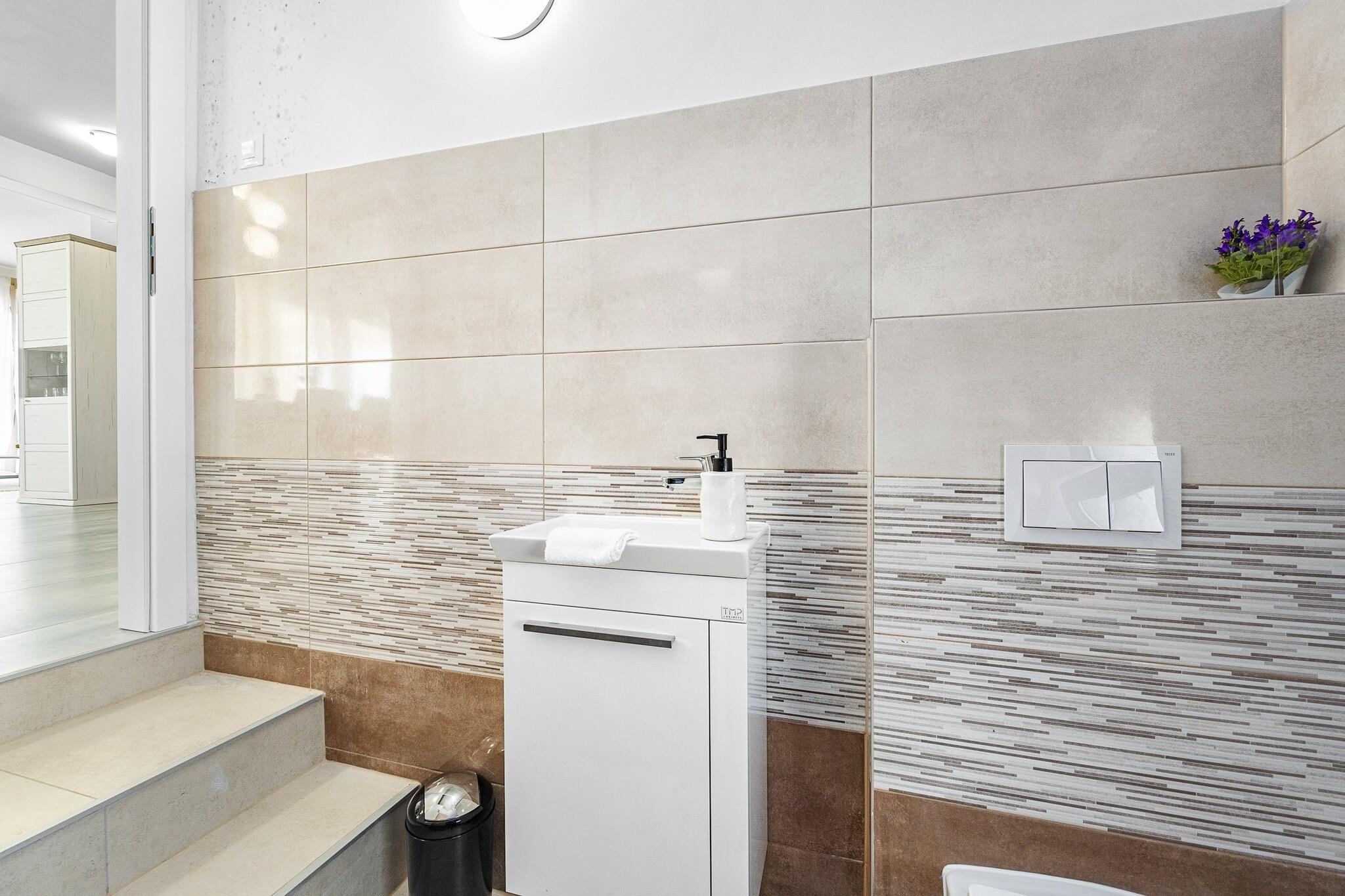 Denne fantastiske villa i Krnica tilbyder rummelig indkvartering med 4 smagfuldt indrettede soveværelser, der giver rigelig plads til op til 10 gæster (maksimalt 8 voksne). Den 200 m² store villa er en nybygget ejendom, designet med moderne stil og komfort i tankerne. Gæsterne kan nyde en række faciliteter, herunder en privat swimmingpool, spabad, aircondition og 5 tv med satellitkanaler til underholdning. Ejendommen har også en smuk have, udendørsmøbler, en terrasse og en grill, hvilket gør den ideel til at slappe af eller spise udendørs. Derudover tilbyder villaen væsentlige tjenester såsom vaskemaskine, strygejern, pengeskab og gratis Wi-Fi. Beliggende i et fredeligt og familievenligt landområde, er villaen bekvemt beliggende kun 200 meter fra en restaurant og 300 meter fra et supermarked, hvilket sikrer nem adgang til væsentlige tjenester. En klippestrand ligger kun 1 km derfra, mens en sandstrand 15 km fra ejendommen byder på forskellige kystoplevelser. Busstationen ligger kun 1 km væk og giver bekvemme transportmuligheder, og lufthavnen og togstationen ligger begge 15 km væk, hvilket gør det nemt at rejse til og fra villaen. Villaens fuldt udstyrede køkken i åbent plan har moderne induktionsapparater, herunder køleskab, mikroovn, ovn, fryser og opvaskemaskine. Gæsterne vil finde alt, hvad de har brug for til at tilberede måltider, herunder kaffemaskine, brødrister, kedel, komfur og køkkenudstyr. Med så omfattende faciliteter giver villaen det perfekte miljø for et afslappende og behageligt ophold med familie eller venner.