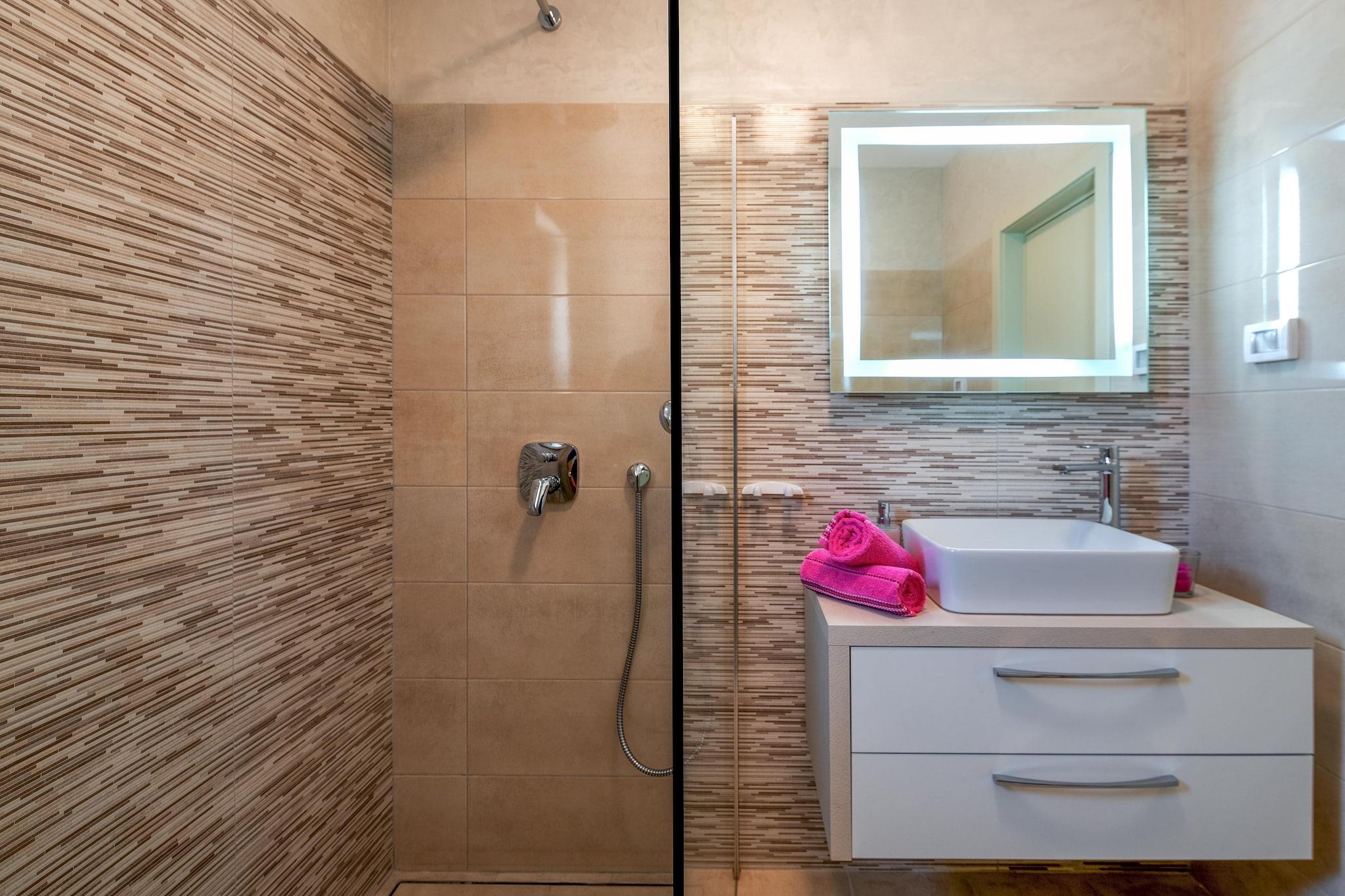 Den dejlige Villa Porto ligger på Istriens østkyst, i Krnicki Porat, lige ved havet. Kun 100 meter væk kan du nå de smukke strande, så dette hus er et ideelt valg for dem, der ønsker at tilbringe en ferie ved havet, men også i rolige omgivelser. Morgen og aften kan tilbringes med at gå langs kysten, og varme eftermiddage kan tilbringes på strandene. Du kan også slappe af i Villa Portos udendørsområde på den private terrasse med stole og bord, liggestole og grill, og der er også dart og gratis internetadgang til rådighed. Villa Portos interiør er opdelt i to etager. I stueetagen er der en stue, spisestue, et fuldt udstyret køkken og et badeværelse, mens der i stueetagen er tre soveværelser med aircondition og tre badeværelser med bruser. Interiøret er pænt indrettet, og alle værelser er indrettet i blide pastelfarver, så komforten i husets interiør vil helt sikkert ikke gå glip af. Det skal bemærkes, at restauranten "PortoRiko" ligger i nærheden af Villa Porto, kendt for sine fiskespecialiteter. Hvis du leder efter en pause fra hverdagen, svømning og solbadning på smukke istriske strande og fuldstændig afslapning, så er Villa Porto det perfekte valg for dig og dine nærmeste! Derudover sørgede ejerne for, at der ikke manglede underholdning, så du har mulighed for at spille dart.