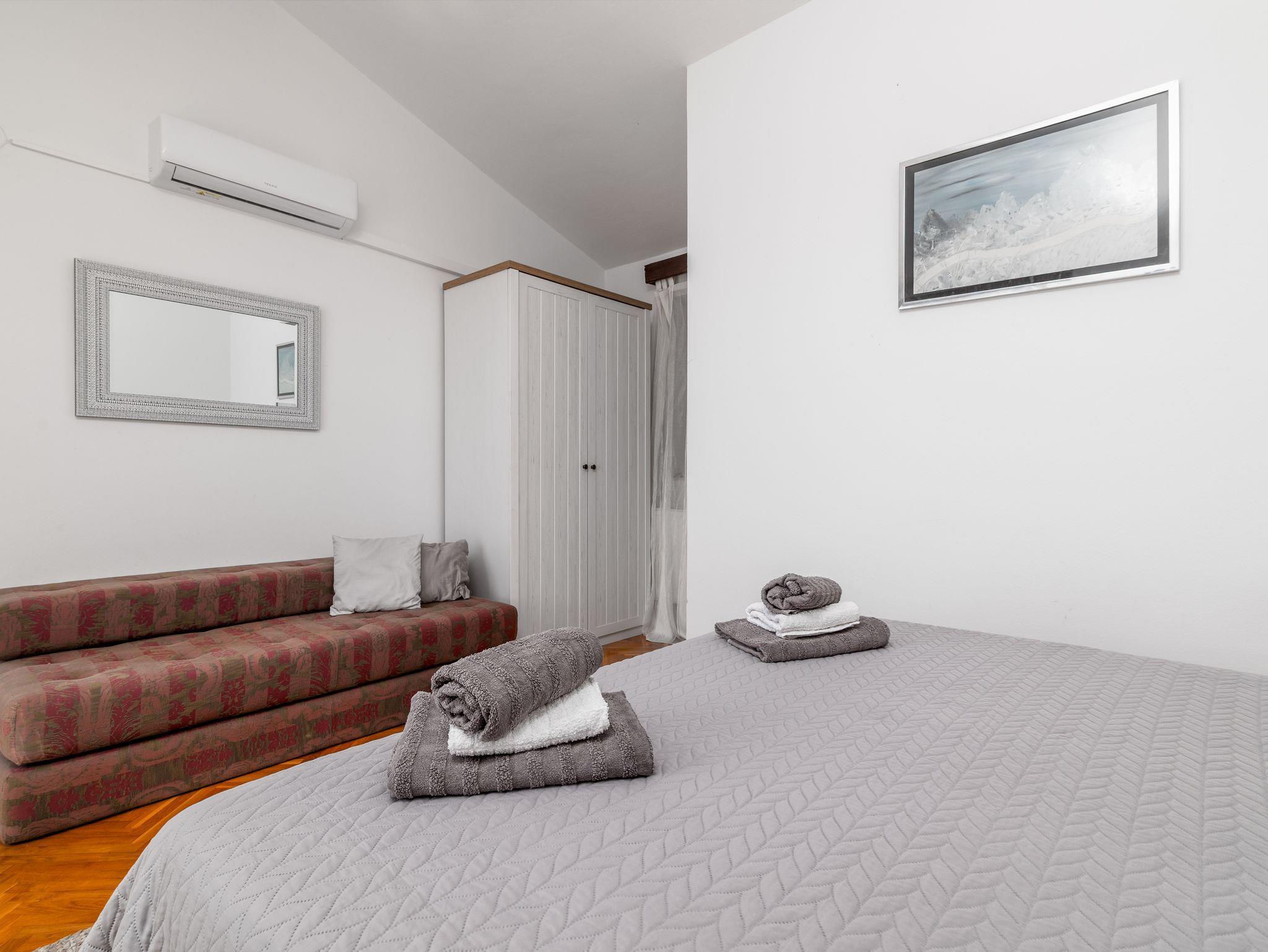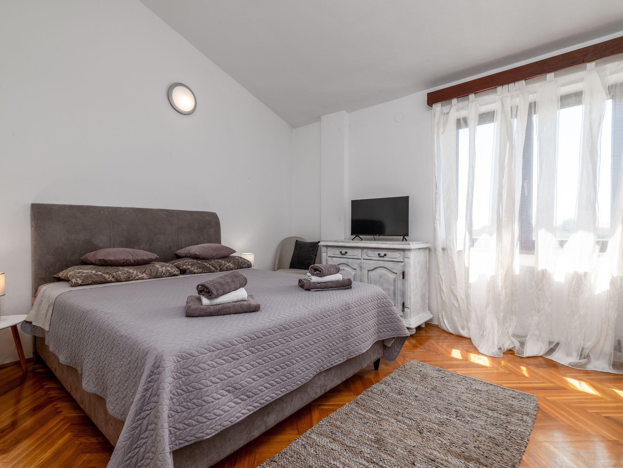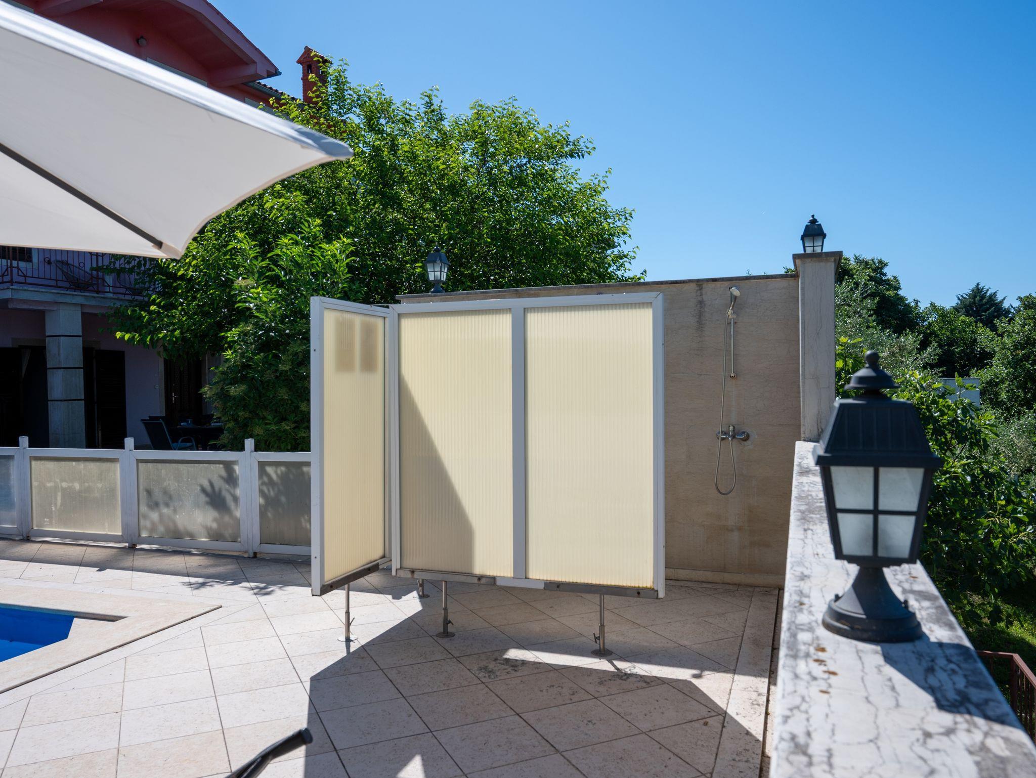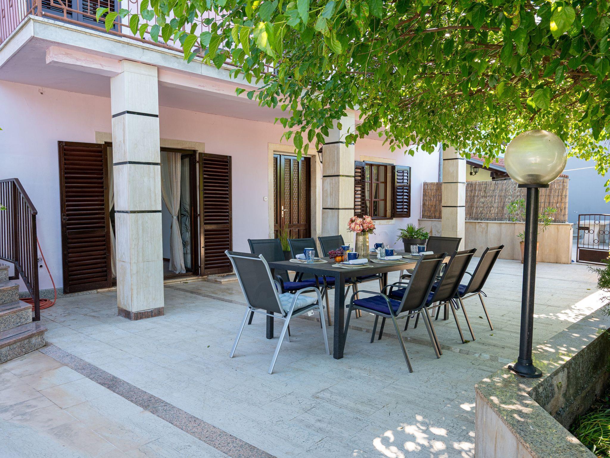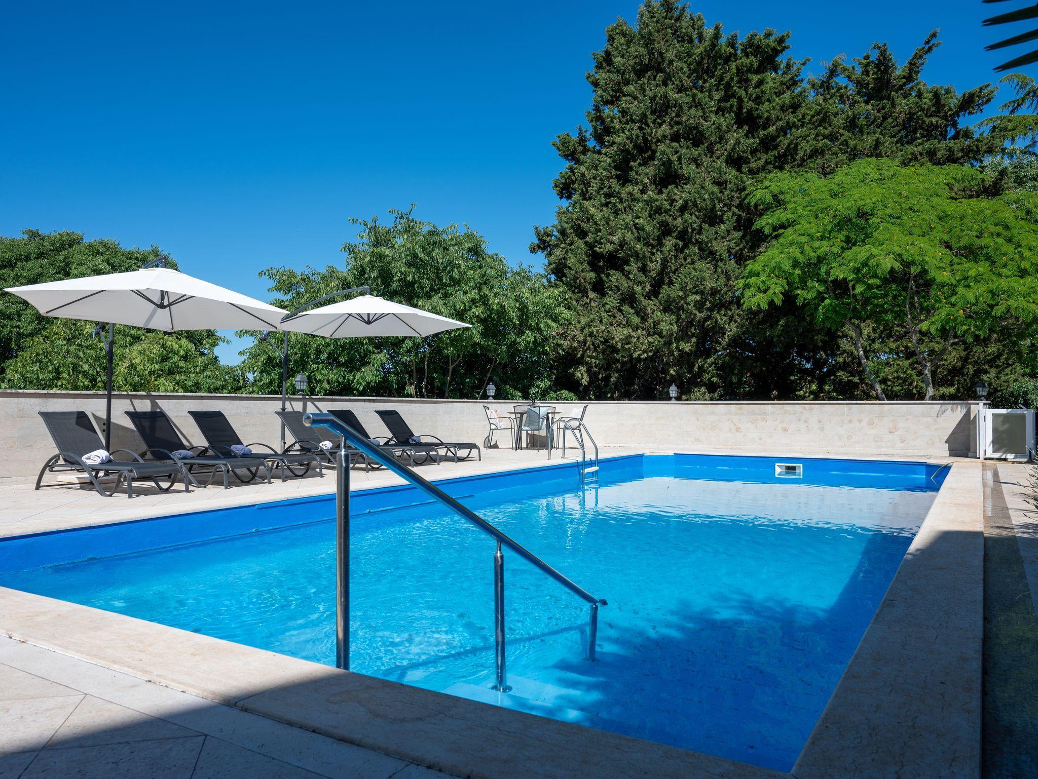 Haus bietet Platz für 10 Gäste. Die Betten sind in Schlafzimmern, die es 4 gibt, und in Wohnzimmer, innerhalb einer Gesamtfläche von 135m2, angeordnet. Die Gäste haben eine eigene Terrasse zur Verfügung, auf der sie in warmen Sommernächten genießen können. Für vollen Genuss und Entspannung gibt es einen privaten Grill für Gäste dieser Unterkunft. Während ihres Aufenthalts können sich Gäste im privaten Schwimmbad entspannen. IM PREIS INBEGRIFFEN: Kurtaxe, Endreinigung, Klimatisierung, Zentralheizung, Pool, Parkplatz, Internet, Kinderbett, Bügeleisen, Bügelbrett, Föhn. Die Verfügbarkeit zusätzlicher Dienstleistungen in Ihrem reservierten Termin und die Preise derselben (falls nicht aufgeführt) müssen im Voraus überprüft werden. Zusätzliche Dienstleistungen die in der Zahlungsaufforderung nicht aufgeführt sind werden direkt beim Vermieter bezahlt, angenommen der Gast nutzt auch diese.