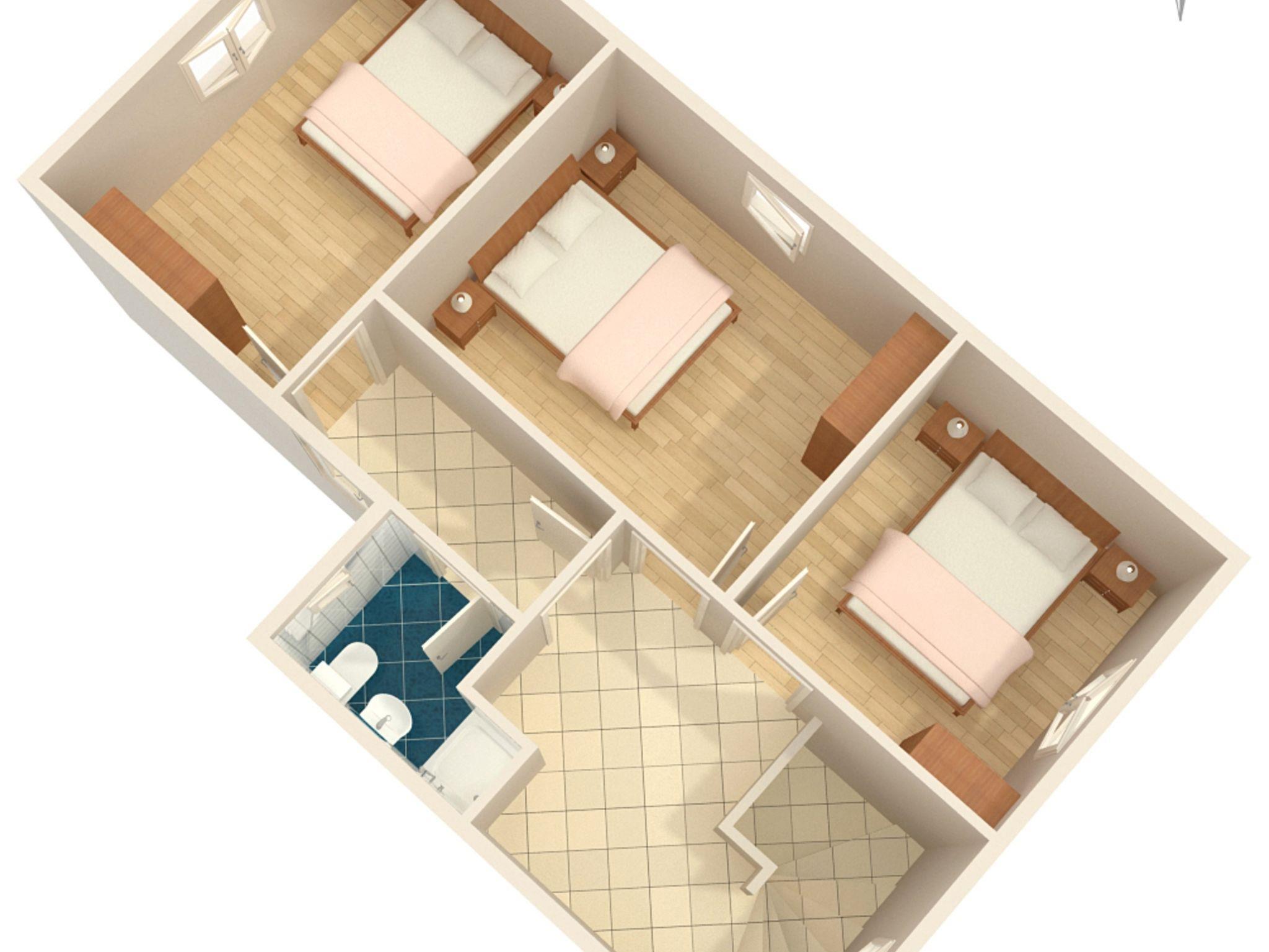 Ferienwohnung bietet Platz für 6 Gäste. Die Betten sind in Schlafzimmern, die es 3 gibt, innerhalb einer Gesamtfläche von 83m2, angeordnet. Die Gäste haben eine eigene Terrasse zur Verfügung, auf der sie in warmen Sommernächten genießen können. Es ist erlaubt, Speisen auf dem Gemeinschafts-Grill vorzubereiten. Während ihres Aufenthalts können Gäste das gemeinsam zur Nutzung stehende Schwimmbad benutzen. In der Unterkunftseinheit besteht die Möglichkeit des Mitbringens von Haustieren gegen Aufpreis. IM PREIS INBEGRIFFEN: Kurtaxe, Endreinigung, Klimatisierung, Pool, Parkplatz, Internet, Bügeleisen, Bügelbrett, Föhn. VERBINDLICHE ZUSÄTZLICHE KOSTEN: Aufzahlung für Kurzaufenthalte (prozentualer Zuschlag pro Nächtigungsanzahl: 30% - 1, 20% - 2, 10% - 3). UNVERBINDLICHE ZUSÄTZLICHE KOSTEN: Zentralheizung (8,00 € pro Nacht), Wäschewaschen (5,00 € Waschen), Haustiere (10,00 € pro Nacht). Die Verfügbarkeit zusätzlicher Dienstleistungen in Ihrem reservierten Termin und die Preise derselben (falls nicht aufgeführt) müssen im Voraus überprüft werden. Zusätzliche Dienstleistungen die in der Zahlungsaufforderung nicht aufgeführt sind werden direkt beim Vermieter bezahlt, angenommen der Gast nutzt auch diese.