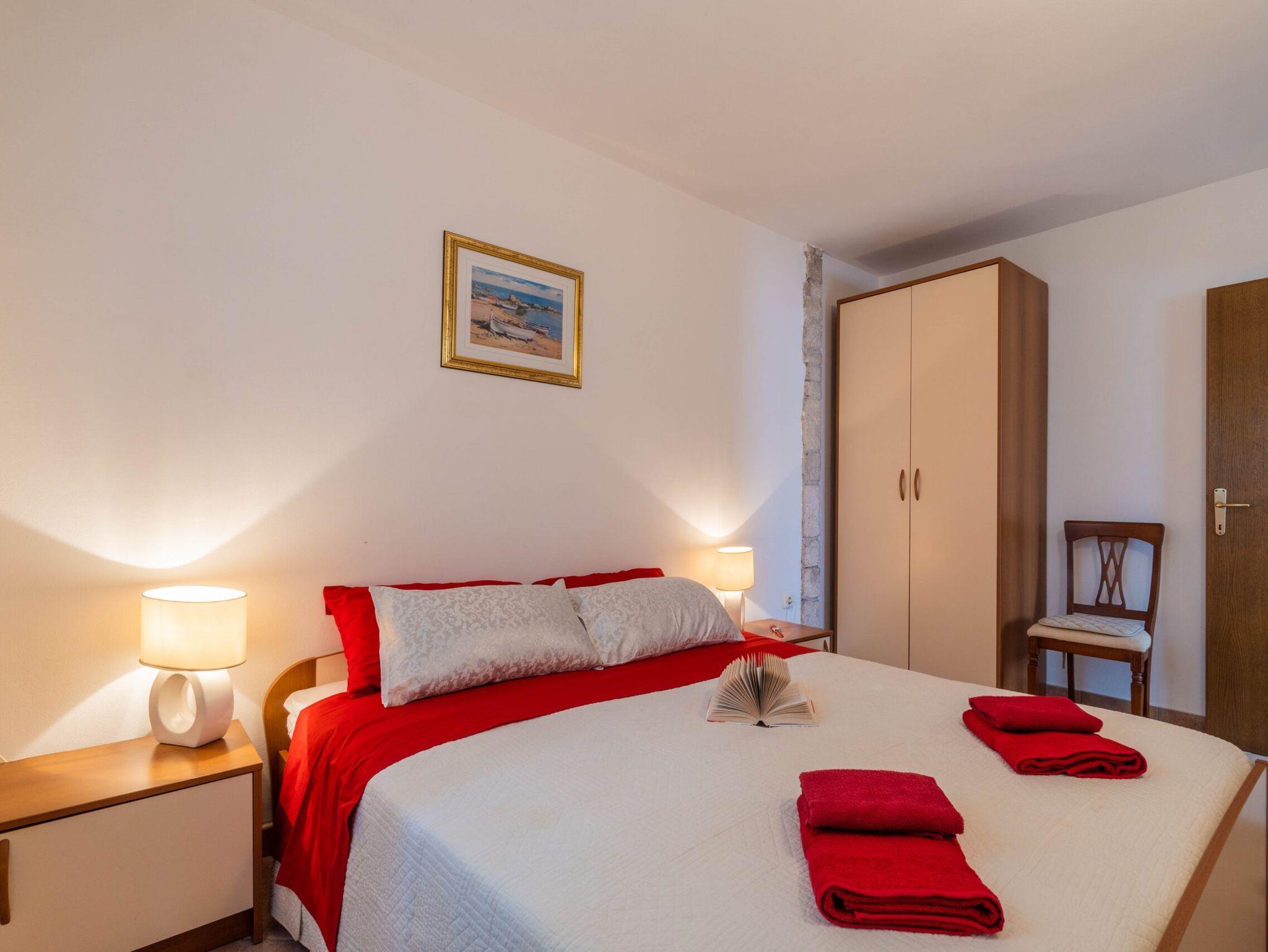 Ferienwohnung bietet Platz für 4 Gäste. Die Betten sind in Schlafzimmern, die es 1 gibt, und in Wohnzimmer, innerhalb einer Gesamtfläche von 29m2, angeordnet. Die Gäste haben eine eigene Terrasse zur Verfügung, auf der sie in warmen Sommernächten genießen können. Es ist erlaubt, Speisen auf dem Gemeinschafts-Grill vorzubereiten. Während ihres Aufenthalts können Gäste das gemeinsam zur Nutzung stehende Schwimmbad benutzen. In der Unterkunftseinheit besteht die Möglichkeit des Mitbringens von Haustieren gegen Aufpreis. Unterkunftseinheit hat Räume, die von dem Rest der Einheit abgetrennt werden. IM PREIS INBEGRIFFEN: Kurtaxe, Endreinigung, Klimatisierung, Pool, Parkplatz, Internet, Bügeleisen, Bügelbrett, Föhn. VERBINDLICHE ZUSÄTZLICHE KOSTEN: Aufzahlung für Kurzaufenthalte (prozentualer Zuschlag pro Nächtigungsanzahl: 30% - 1, 20% - 2, 10% - 3). UNVERBINDLICHE ZUSÄTZLICHE KOSTEN: Zentralheizung (8,00 € pro Nacht), Wäschewaschen (5,00 € Waschen), Haustiere (10,00 € pro Nacht). Die Verfügbarkeit zusätzlicher Dienstleistungen in Ihrem reservierten Termin und die Preise derselben (falls nicht aufgeführt) müssen im Voraus überprüft werden. Zusätzliche Dienstleistungen die in der Zahlungsaufforderung nicht aufgeführt sind werden direkt beim Vermieter bezahlt, angenommen der Gast nutzt auch diese.