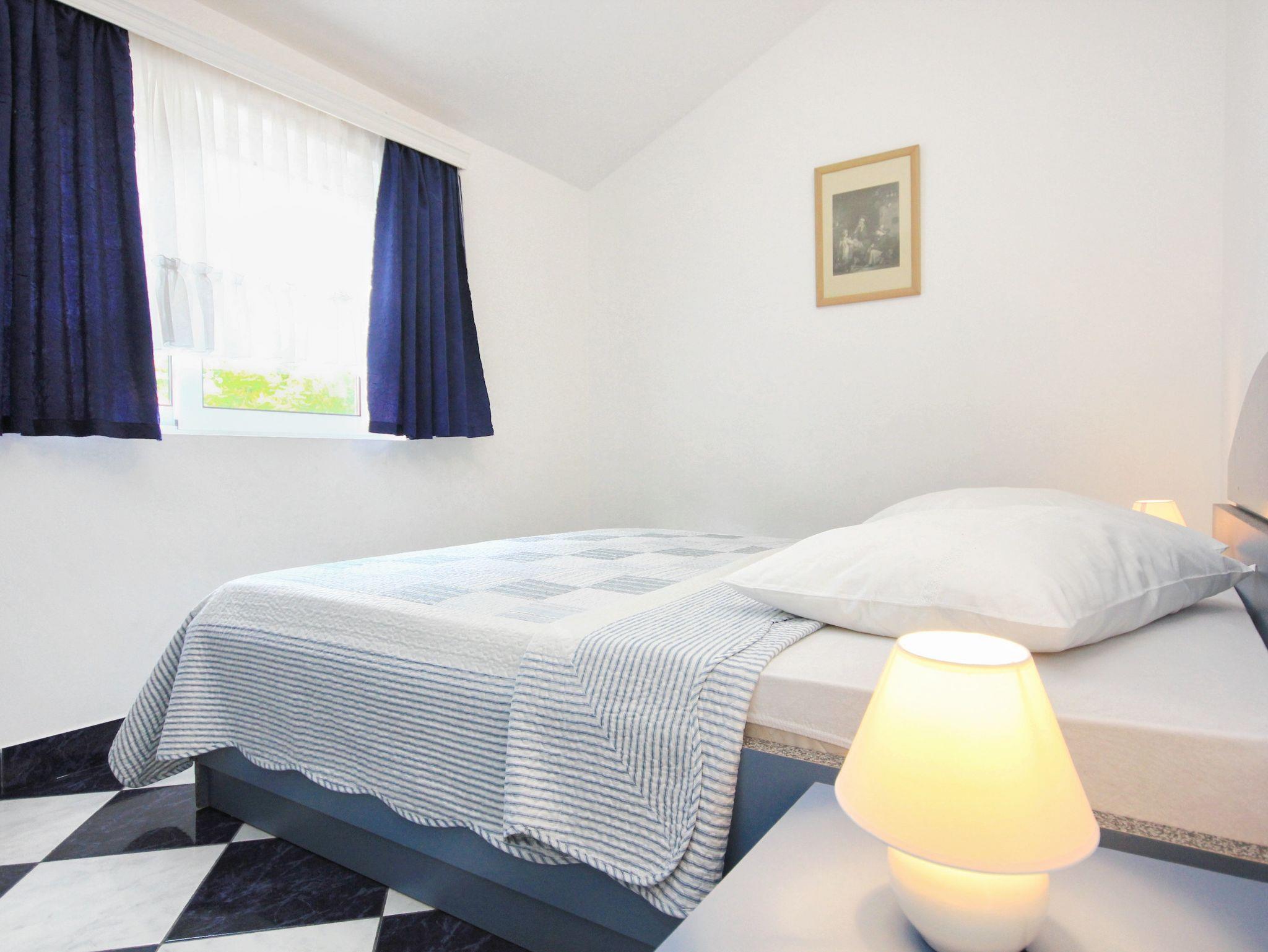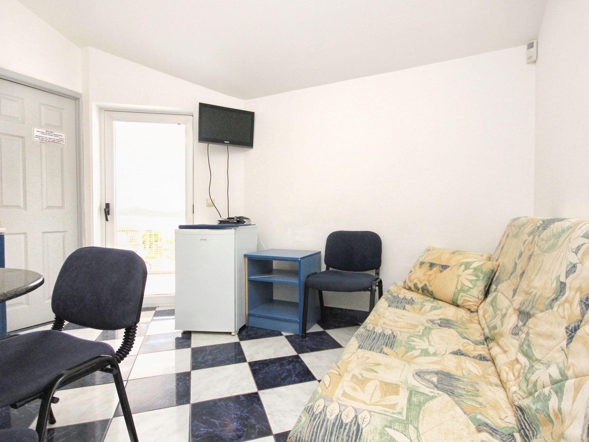 Ferienwohnung bietet Platz für 3 Gäste. Die Betten sind in Schlafzimmern, die es 1 gibt, und in Wohnzimmer, innerhalb einer Gesamtfläche von 23m2, angeordnet. Die Gäste haben eine eigene Terrasse zur Verfügung, auf der sie in warmen Sommernächten genießen können. Das Apartment bietet Meerblick. Es ist erlaubt, Speisen auf dem Gemeinschafts-Grill vorzubereiten. In der Unterkunftseinheit besteht die Möglichkeit des Mitbringens von Haustieren gegen Aufpreis. IM PREIS INBEGRIFFEN: Kurtaxe, Endreinigung, Klimatisierung, Parkplatz, Internet, Bügeleisen, Bügelbrett, Föhn. VERBINDLICHE ZUSÄTZLICHE KOSTEN: Aufzahlung für Kurzaufenthalte (prozentualer Zuschlag pro Nächtigungsanzahl: 30% - 1, 20% - 2, 10% - 3). UNVERBINDLICHE ZUSÄTZLICHE KOSTEN: Wäschewaschen (5,00 € Waschen), Haustiere (5,00 € pro Nacht). Die Verfügbarkeit zusätzlicher Dienstleistungen in Ihrem reservierten Termin und die Preise derselben (falls nicht aufgeführt) müssen im Voraus überprüft werden. Zusätzliche Dienstleistungen die in der Zahlungsaufforderung nicht aufgeführt sind werden direkt beim Vermieter bezahlt, angenommen der Gast nutzt auch diese. Ermäßigung auf den Grundpreis: Gratistag 21=19 (bei einem Aufenthalt von 21 Tagen oder mehr erhalten Sie 2 Gratistage für den Aufenthalt bis 31.12.26).