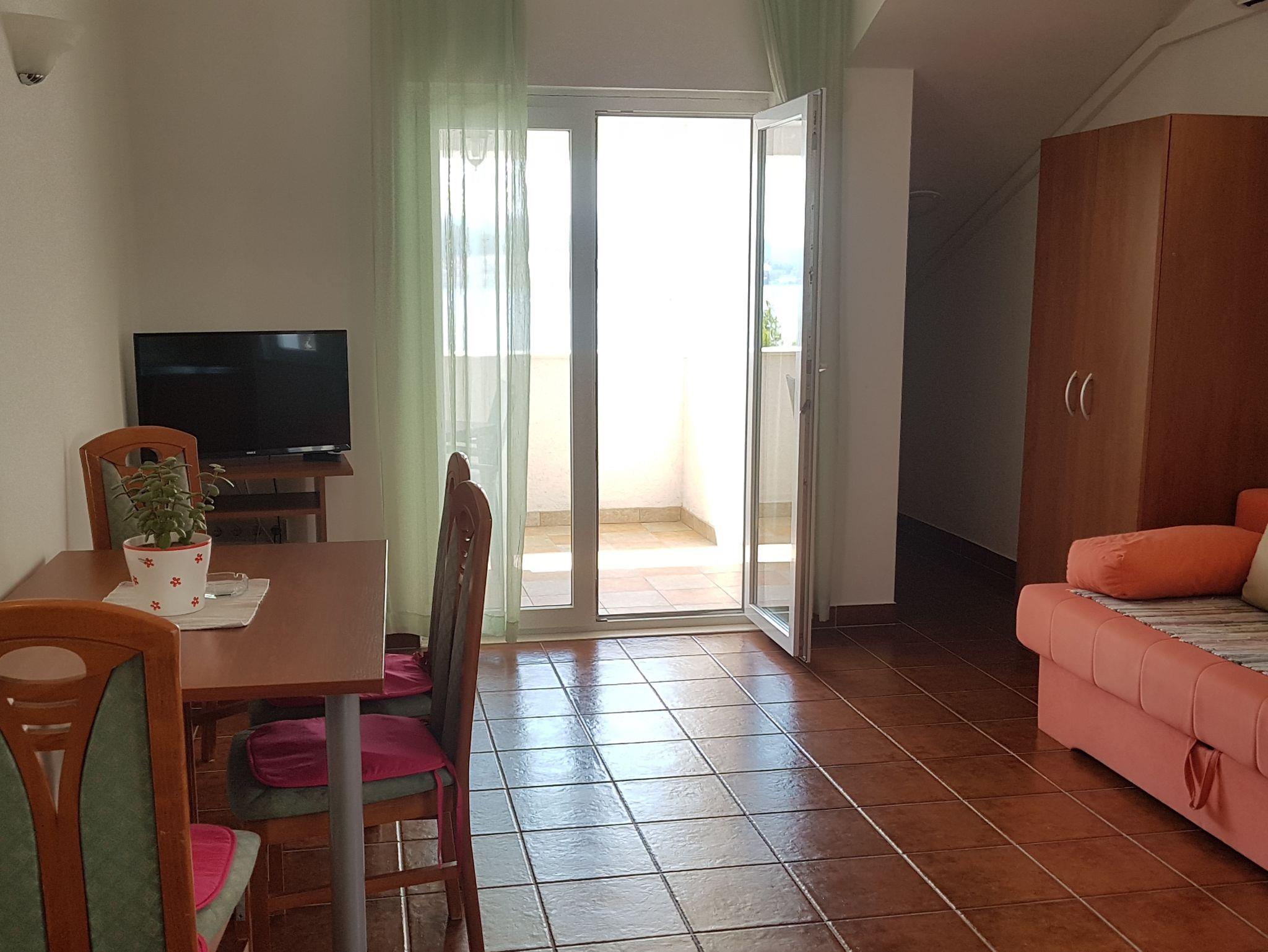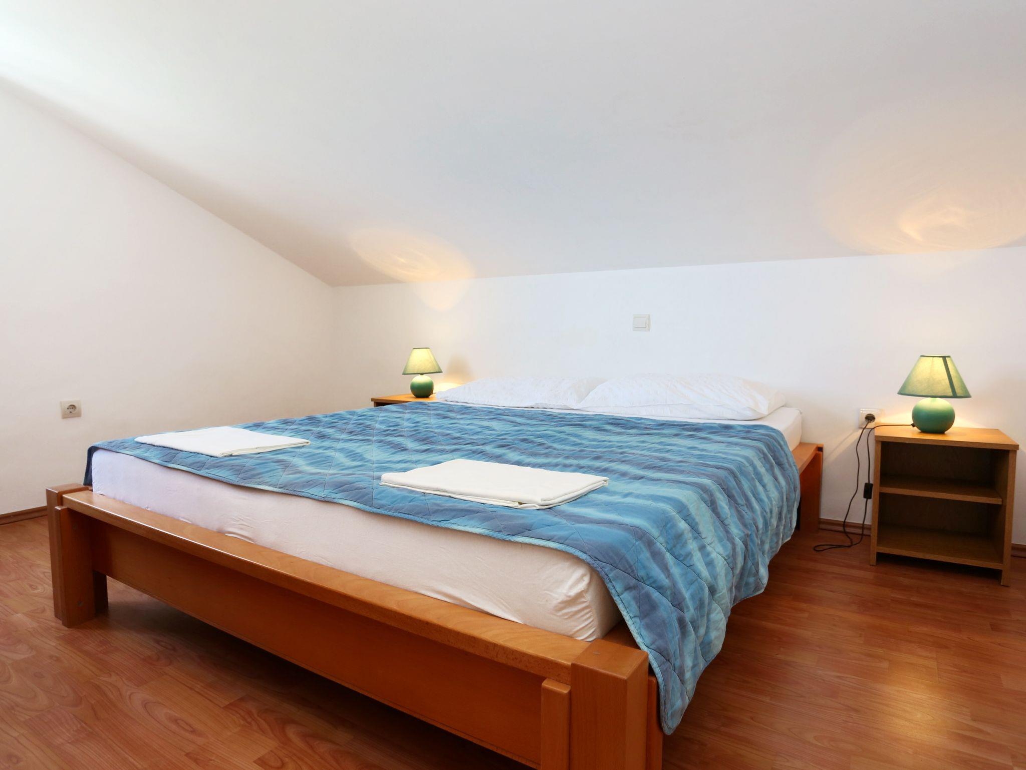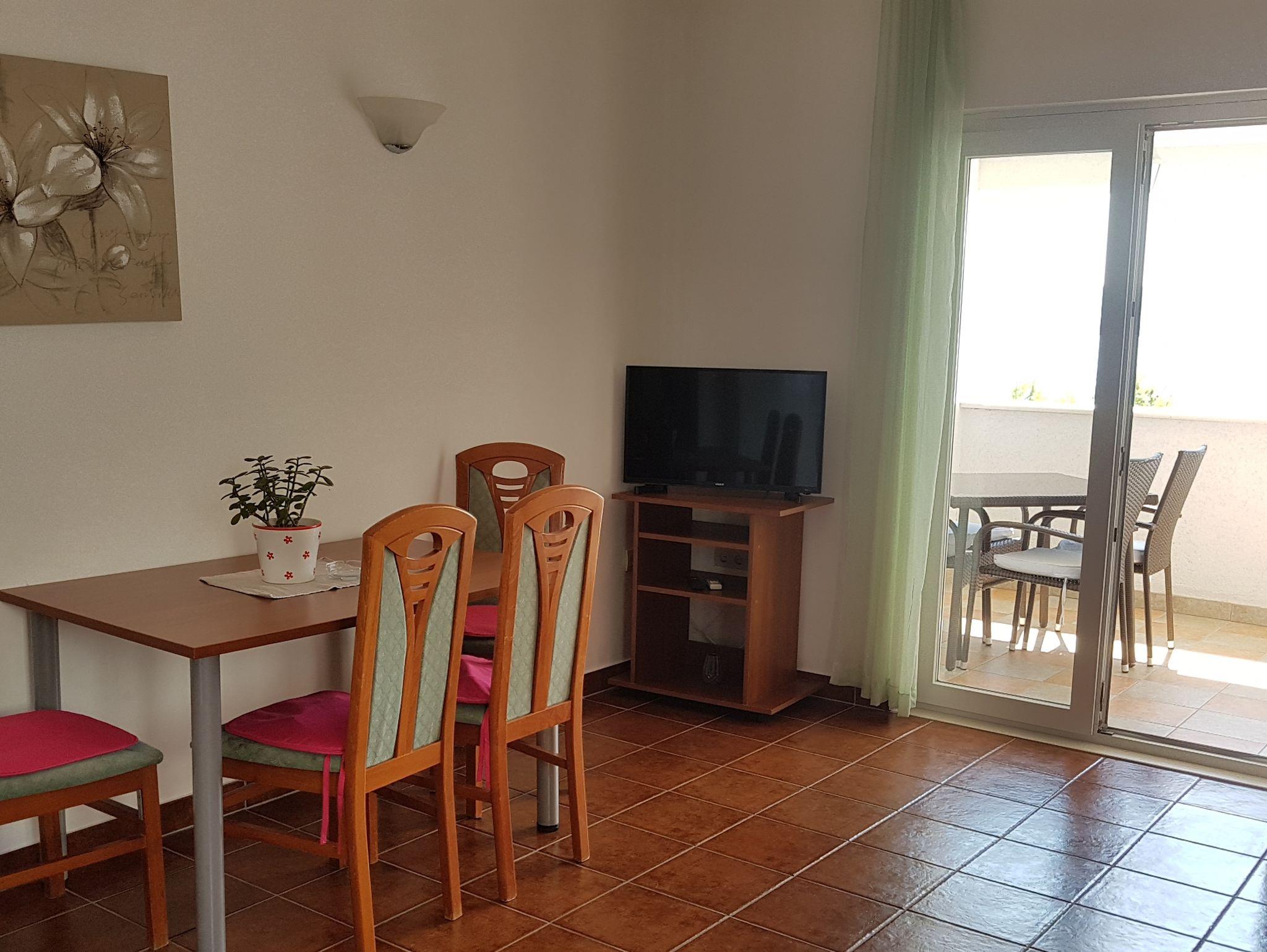 Ferienwohnung bietet Platz für 4 Gäste. Die Betten sind in Schlafzimmern, die es 1 gibt, und in Wohnzimmer, innerhalb einer Gesamtfläche von 42m2, angeordnet. Die Gäste haben eine eigene Terrasse zur Verfügung, auf der sie in warmen Sommernächten genießen können. Das Apartment bietet Meerblick. IM PREIS INBEGRIFFEN: Kurtaxe, Endreinigung, Klimatisierung, Parkplatz, Internet, Bootsanlegeplatz, Bügeleisen, Bügelbrett, Föhn. VERBINDLICHE ZUSÄTZLICHE KOSTEN: Aufzahlung für Kurzaufenthalte (prozentualer Zuschlag pro Nächtigungsanzahl: 30% - 1, 20% - 2, 10% - 3). Die Verfügbarkeit zusätzlicher Dienstleistungen in Ihrem reservierten Termin und die Preise derselben (falls nicht aufgeführt) müssen im Voraus überprüft werden. Zusätzliche Dienstleistungen die in der Zahlungsaufforderung nicht aufgeführt sind werden direkt beim Vermieter bezahlt, angenommen der Gast nutzt auch diese.