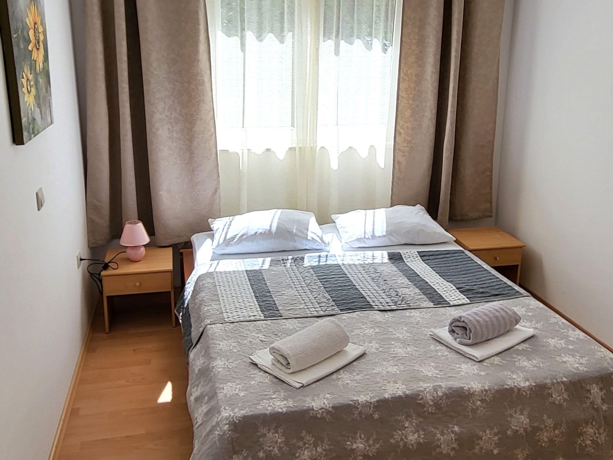 Ferienwohnung bietet Platz für 5 Gäste. Die Betten sind in Schlafzimmern, die es 2 gibt, und in Wohnzimmer, innerhalb einer Gesamtfläche von 66m2, angeordnet. Die Gäste haben eine eigene Terrasse zur Verfügung, auf der sie in warmen Sommernächten genießen können. Das Apartment bietet Meerblick. IM PREIS INBEGRIFFEN: Kurtaxe, Endreinigung, Klimatisierung, Parkplatz, Internet, Bootsanlegeplatz, Bügeleisen, Bügelbrett, Föhn. VERBINDLICHE ZUSÄTZLICHE KOSTEN: Aufzahlung für Kurzaufenthalte (prozentualer Zuschlag pro Nächtigungsanzahl: 30% - 1, 20% - 2, 10% - 3). Die Verfügbarkeit zusätzlicher Dienstleistungen in Ihrem reservierten Termin und die Preise derselben (falls nicht aufgeführt) müssen im Voraus überprüft werden. Zusätzliche Dienstleistungen die in der Zahlungsaufforderung nicht aufgeführt sind werden direkt beim Vermieter bezahlt, angenommen der Gast nutzt auch diese.