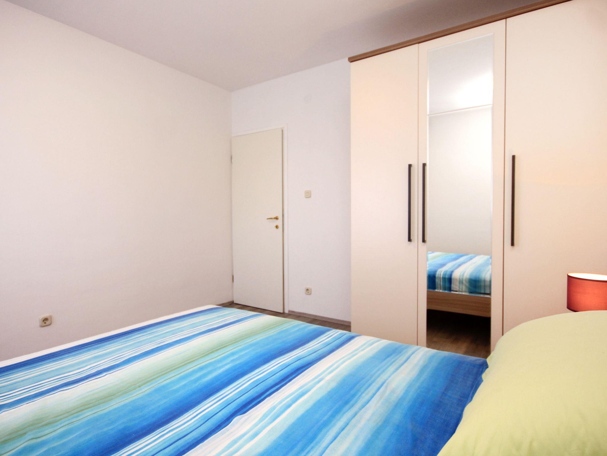 Ferienwohnung bietet Platz für 4 Gäste. Die Betten sind in Schlafzimmern, die es 1 gibt, und in Wohnzimmer, innerhalb einer Gesamtfläche von 42m2, angeordnet. Die Gäste haben eine eigene Terrasse zur Verfügung, auf der sie in warmen Sommernächten genießen können. Das Apartment bietet Meerblick. Es ist erlaubt, Speisen auf dem Gemeinschafts-Grill vorzubereiten. In der Unterkunftseinheit besteht die Möglichkeit des Mitbringens von Haustieren, und die Dienstleistung ist im Preis der Unterkunft enthalten. IM PREIS INBEGRIFFEN: Kurtaxe, Endreinigung, Klimatisierung, Parkplatz, Internet, Wäschewaschen, Haustiere, Kinderbett, Bügeleisen, Bügelbrett, Föhn, tragbarer Grill. Die Verfügbarkeit zusätzlicher Dienstleistungen in Ihrem reservierten Termin und die Preise derselben (falls nicht aufgeführt) müssen im Voraus überprüft werden. Zusätzliche Dienstleistungen die in der Zahlungsaufforderung nicht aufgeführt sind werden direkt beim Vermieter bezahlt, angenommen der Gast nutzt auch diese.
