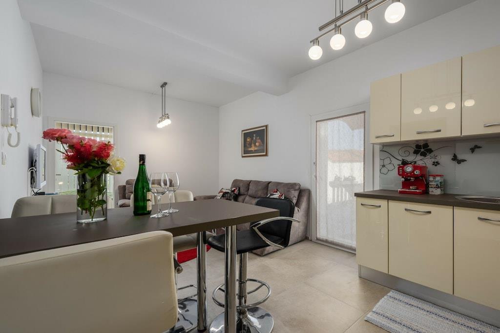 Oplev Apartment Vedran, et smukt designet og fuldt udstyret feriested med en privat opvarmet pool, en frodig have og bekvem parkering på stedet. Dette lyse og indbydende sted er perfekt til familier eller to par og tilbyder alt, hvad du behøver for en afslappende ferie. Apartment Vedran har: Privat opvarmet pool med udendørs bruser og komfortable havemøbler til ultimativ afslapning To hyggelige soveværelser med queensize-senge til et afslappende ophold Rummelig stue, spisestue og køkkenområde, perfekt til socialt samvær Moderne badeværelse med bruseniche Fredelig have og parkering på stedet Beliggenhed: Apartment Vedran ligger i Kukci, en charmerende landsby kun 4 km fra Porec og dens smukke strande, der kombinerer ro med tilgængelighed. I landsbyen finder du: En købmand til dine daglige behov En lokal restaurant kendt for sit lækre køkken, Marina Kukci Restaurant En hyggelig café-bar til din morgenkaffe eller en aftendrink Oplev den perfekte blanding af komfort, privatliv og bekvemmelighed i Apartment Vedran. Uanset om du slapper af ved poolen eller udforsker det nærliggende Porec, starter din drømmeferie her!