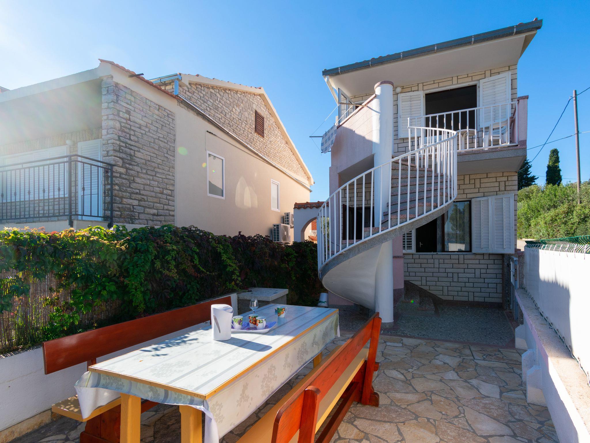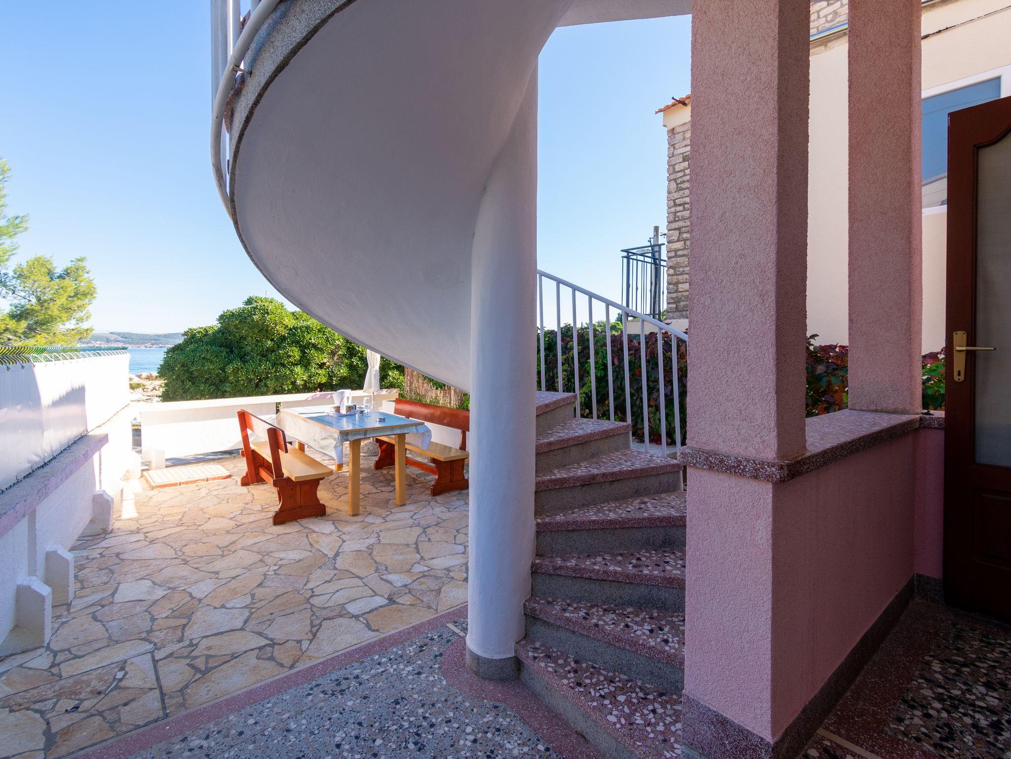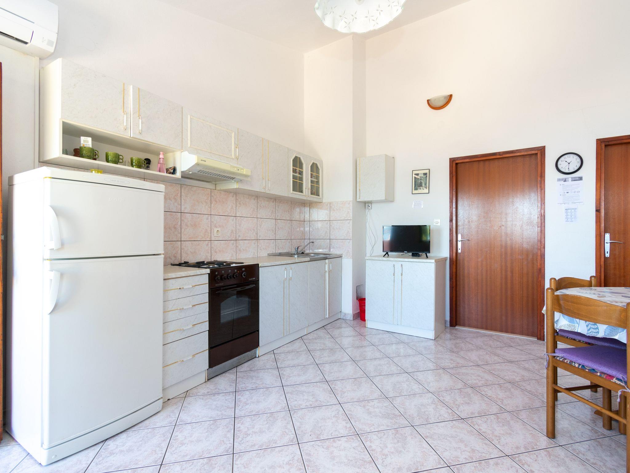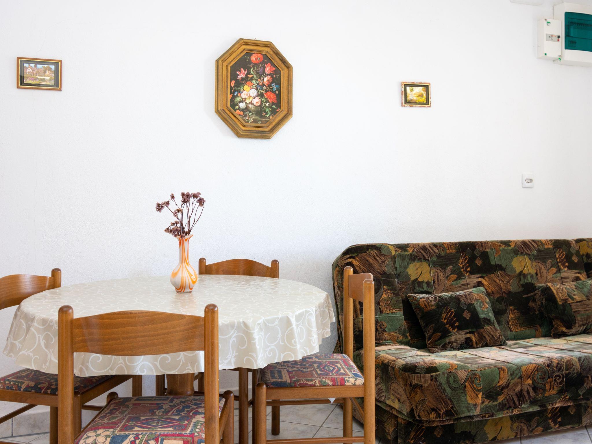 Haus bietet Platz für 8 Gäste. Die Betten sind in Schlafzimmern, die es 2 gibt, und in Esszimmer, innerhalb einer Gesamtfläche von 80m2, angeordnet. Die Gäste haben einen eigenen Balkon zur Verfügung, auf der sie in warmen Sommernächten genießen können. Das Haus bietet Meerblick. Es ist erlaubt, Speisen auf dem Gemeinschafts-Grill vorzubereiten. Räume der gebuchten Unterkunftseinheit werden nicht in eine Ganze verbunden. IM PREIS INBEGRIFFEN: Kurtaxe, Endreinigung, Klimatisierung, Parkplatz, Internet, tragbarer Grill. Die Verfügbarkeit zusätzlicher Dienstleistungen in Ihrem reservierten Termin und die Preise derselben (falls nicht aufgeführt) müssen im Voraus überprüft werden. Zusätzliche Dienstleistungen die in der Zahlungsaufforderung nicht aufgeführt sind werden direkt beim Vermieter bezahlt, angenommen der Gast nutzt auch diese. Ermäßigung auf den Grundpreis: Gratistag 14=13 (bei einem Aufenthalt von 14 Tagen oder mehr erhalten Sie einen Gratistag für den Aufenthalt bis 31.12.26).