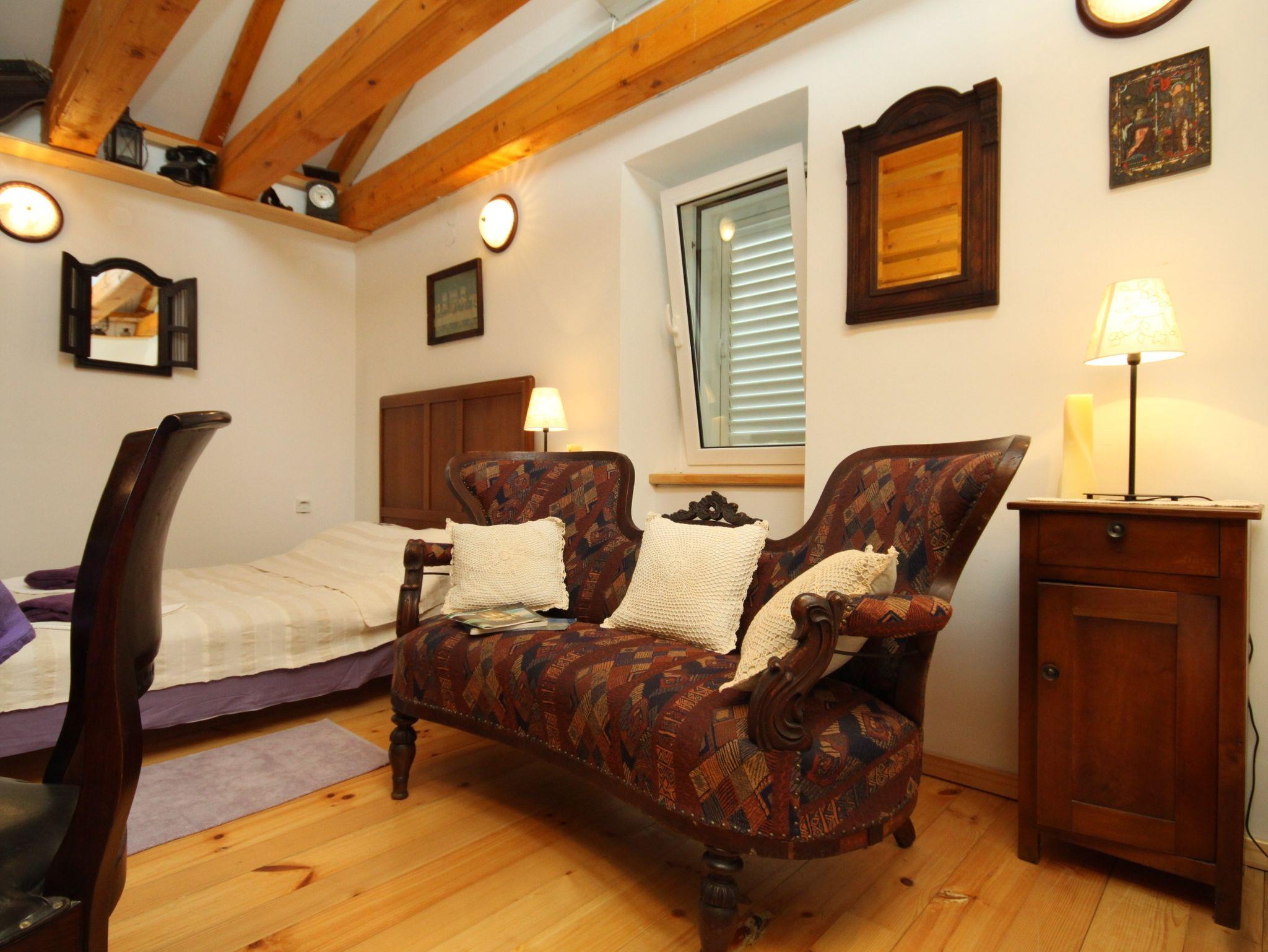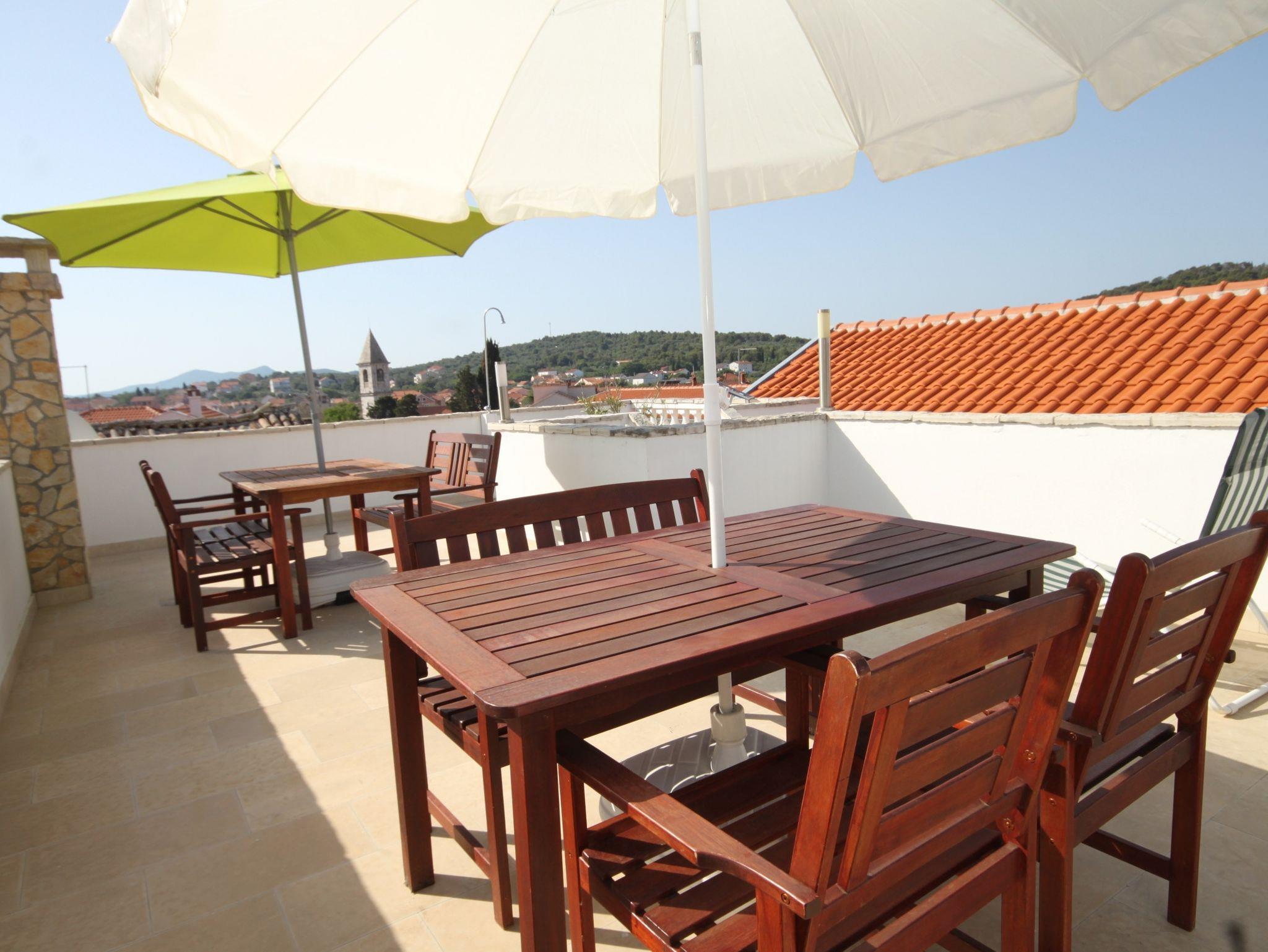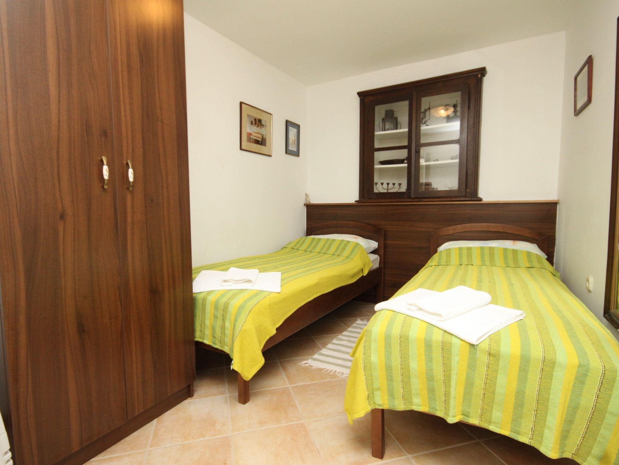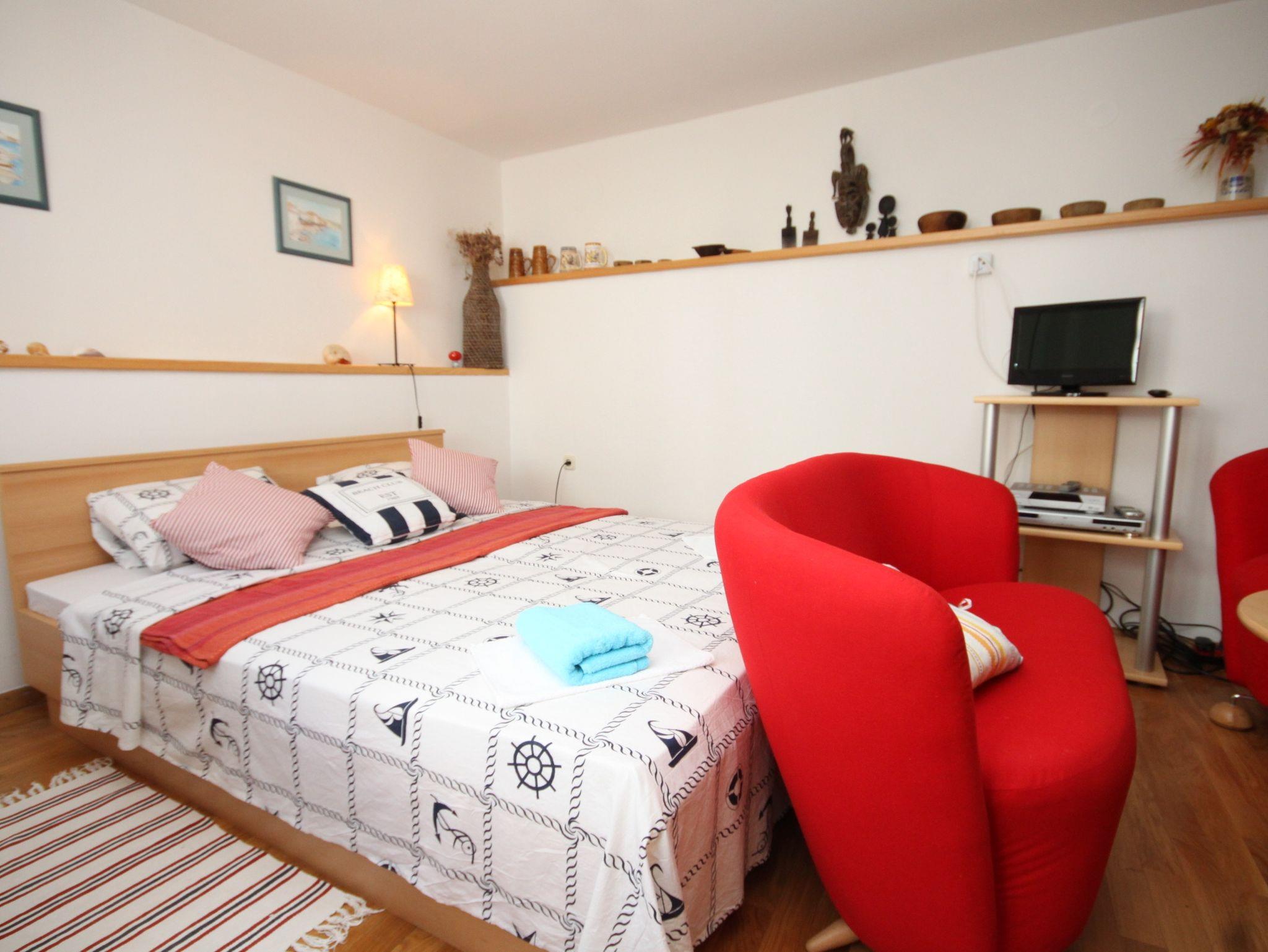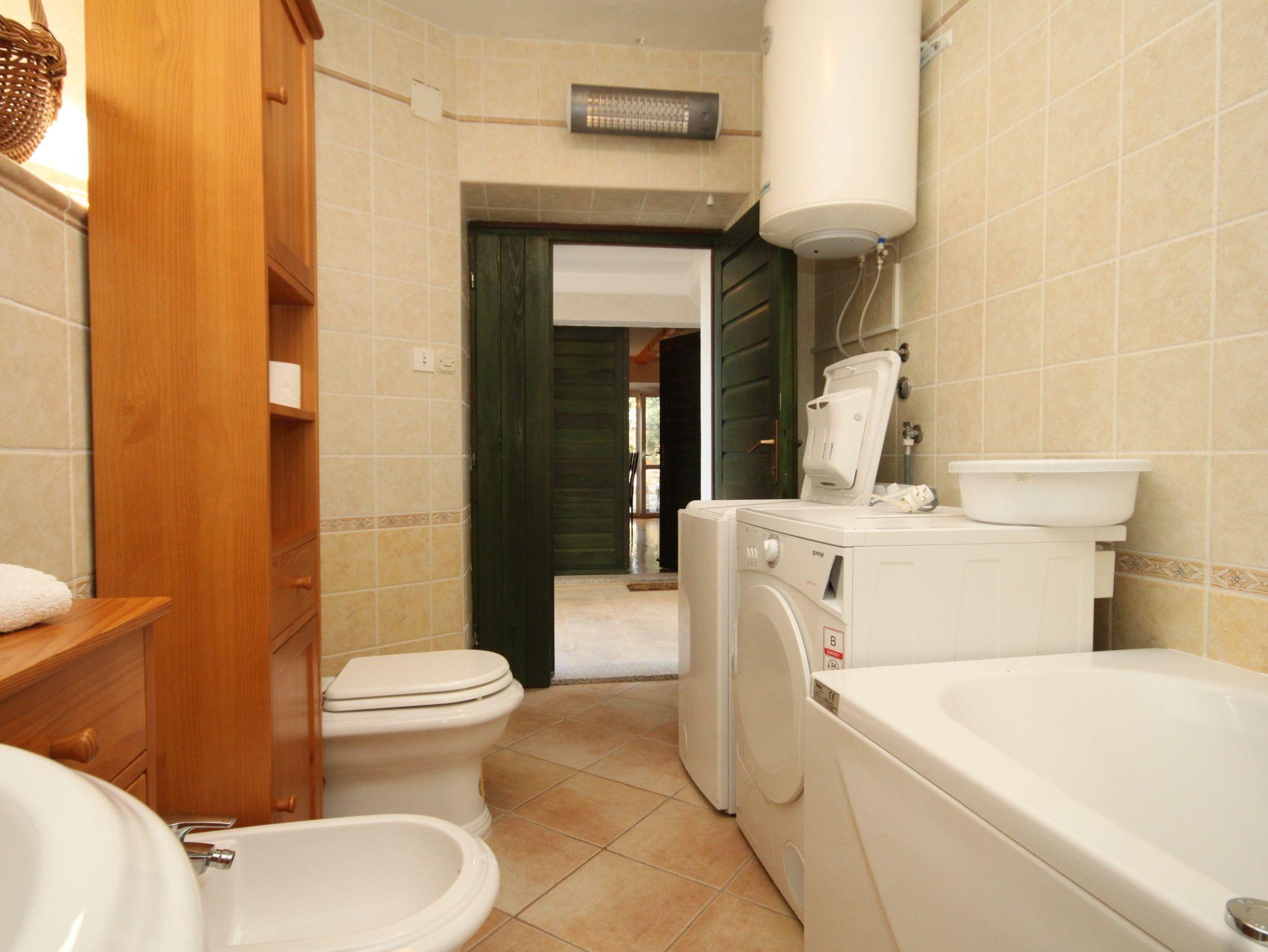 Haus bietet Platz für 9 Gäste. Die Betten sind in Schlafzimmern, die es 4 gibt, innerhalb einer Gesamtfläche von 106m2, angeordnet. Die Gäste haben eine eigene Terrasse zur Verfügung, auf der sie in warmen Sommernächten genießen können. Das Haus bietet Meerblick. Für vollen Genuss und Entspannung gibt es einen privaten Grill für Gäste dieser Unterkunft. IM PREIS INBEGRIFFEN: Kurtaxe, Endreinigung, Klimatisierung, Internet, Kinderbett, Bügeleisen, Bügelbrett, Föhn, Liegestühle. VERBINDLICHE ZUSÄTZLICHE KOSTEN: Aufzahlung für Kurzaufenthalte (prozentualer Zuschlag pro Nächtigungsanzahl: 30% - 1, 20% - 2, 10% - 3). Die Verfügbarkeit zusätzlicher Dienstleistungen in Ihrem reservierten Termin und die Preise derselben (falls nicht aufgeführt) müssen im Voraus überprüft werden. Zusätzliche Dienstleistungen die in der Zahlungsaufforderung nicht aufgeführt sind werden direkt beim Vermieter bezahlt, angenommen der Gast nutzt auch diese. Ermäßigung auf den Grundpreis: Gratistag 21=19 (bei einem Aufenthalt von 21 Tagen oder mehr erhalten Sie 2 Gratistage für den Aufenthalt bis 31.12.26).