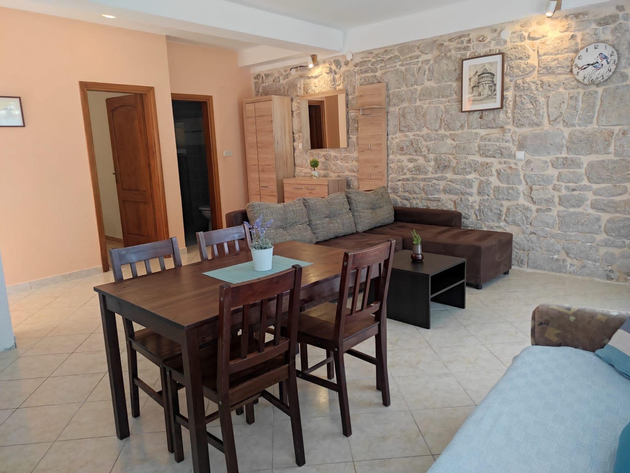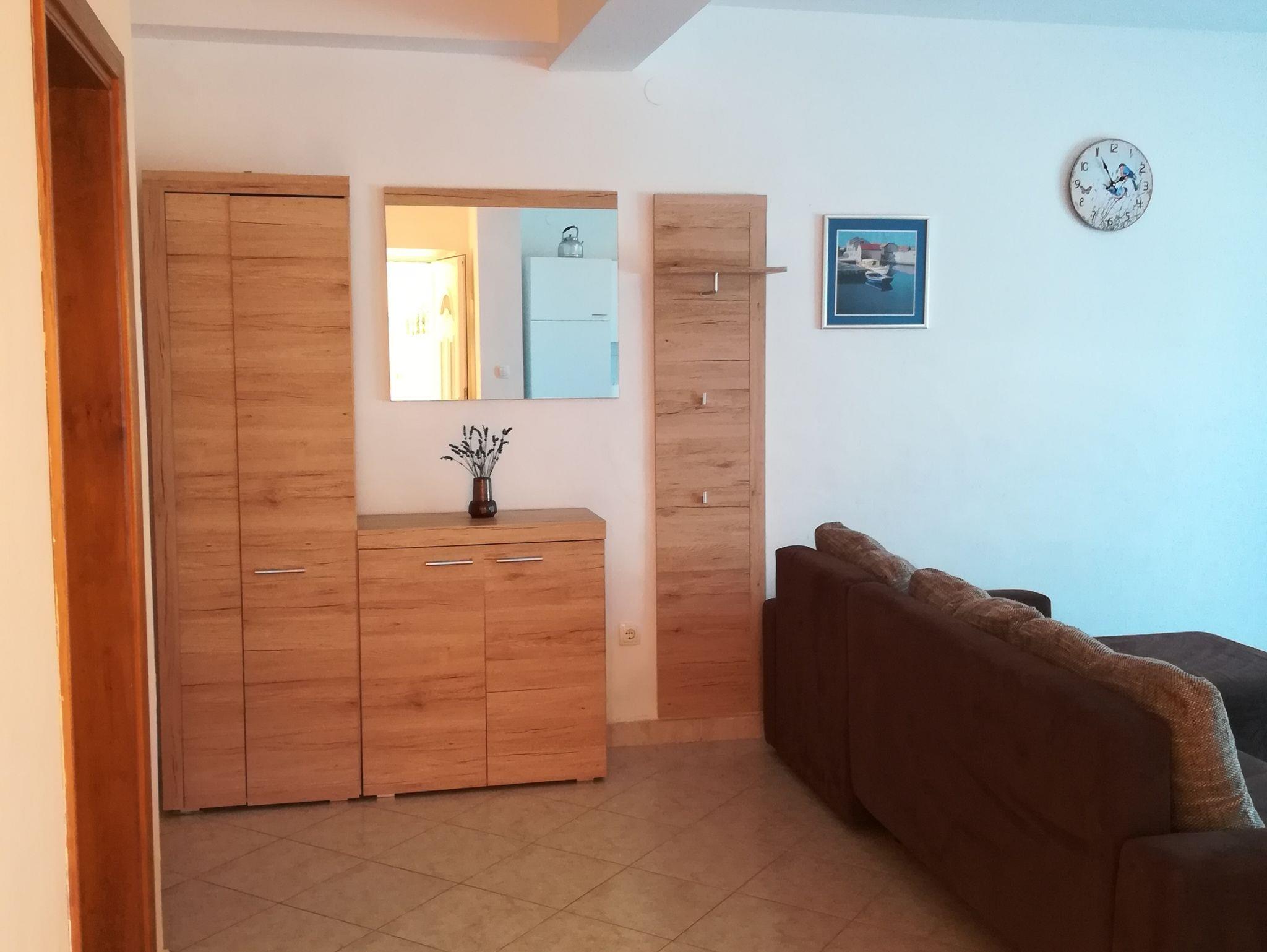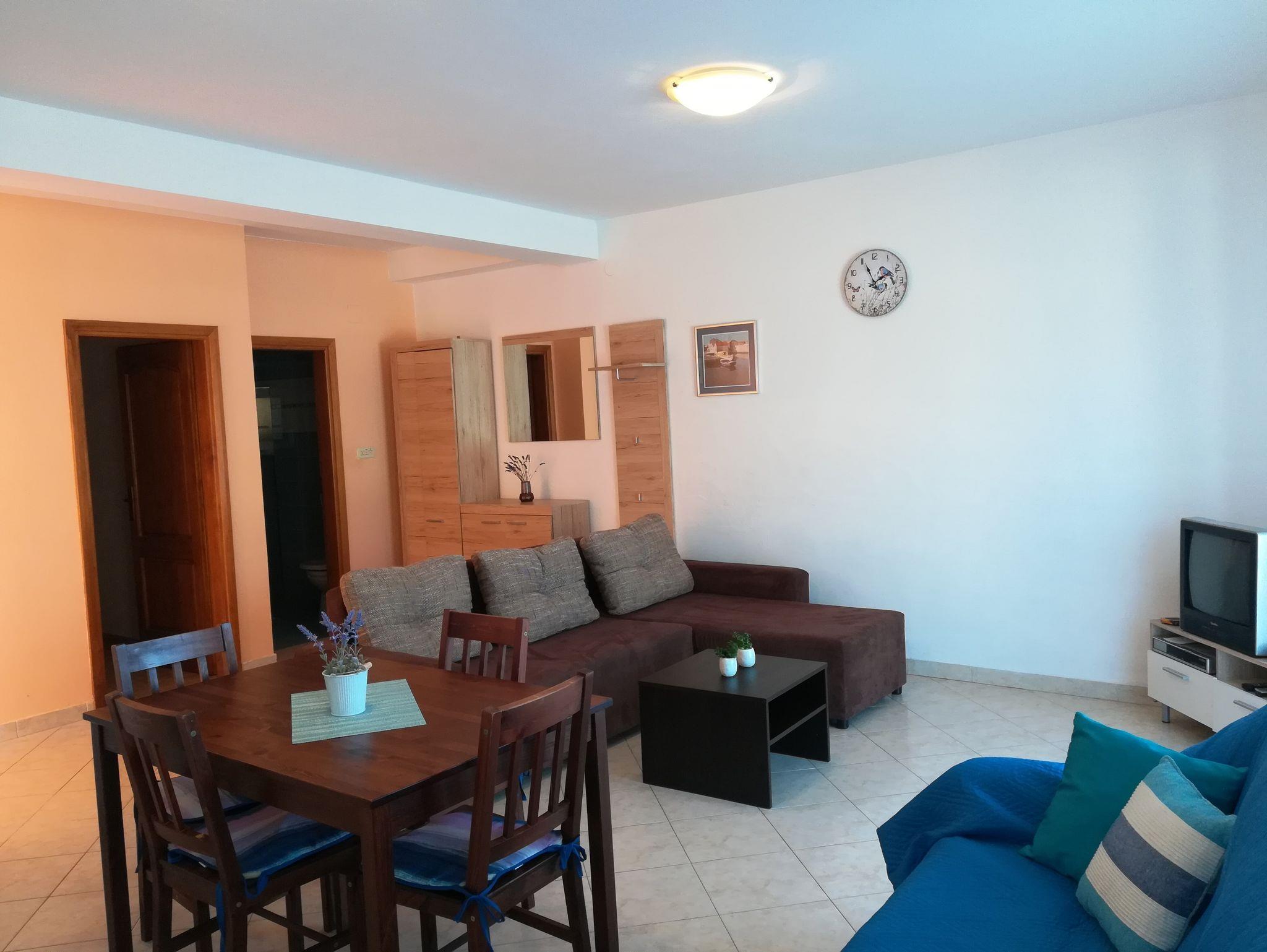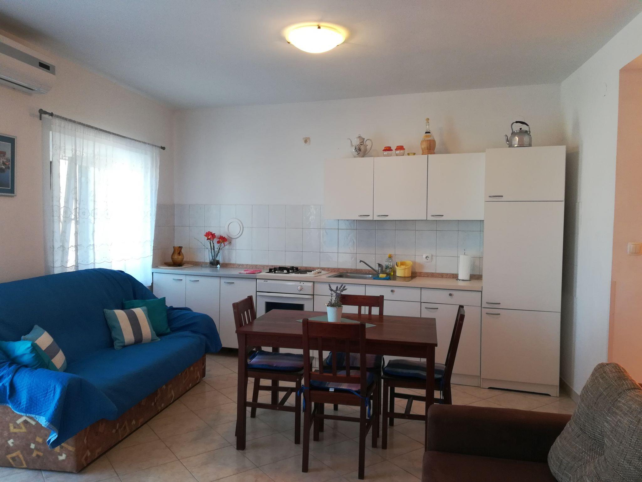 Ferienwohnung bietet Platz für 4 Gäste. Die Betten sind in Schlafzimmern, die es 1 gibt, und in Wohnzimmer, innerhalb einer Gesamtfläche von 45m2, angeordnet. Die Gäste haben eine eigene Terrasse zur Verfügung, auf der sie in warmen Sommernächten genießen können. Das Apartment bietet Meerblick. Es ist erlaubt, Speisen auf dem Gemeinschafts-Grill vorzubereiten. IM PREIS INBEGRIFFEN: Kurtaxe, Endreinigung, Klimatisierung, Internet, Wäschewaschen, tragbarer Grill. VERBINDLICHE ZUSÄTZLICHE KOSTEN: Aufzahlung für Kurzaufenthalte (prozentualer Zuschlag pro Nächtigungsanzahl: 30% - 1, 20% - 2, 10% - 3). Die Verfügbarkeit zusätzlicher Dienstleistungen in Ihrem reservierten Termin und die Preise derselben (falls nicht aufgeführt) müssen im Voraus überprüft werden. Zusätzliche Dienstleistungen die in der Zahlungsaufforderung nicht aufgeführt sind werden direkt beim Vermieter bezahlt, angenommen der Gast nutzt auch diese.