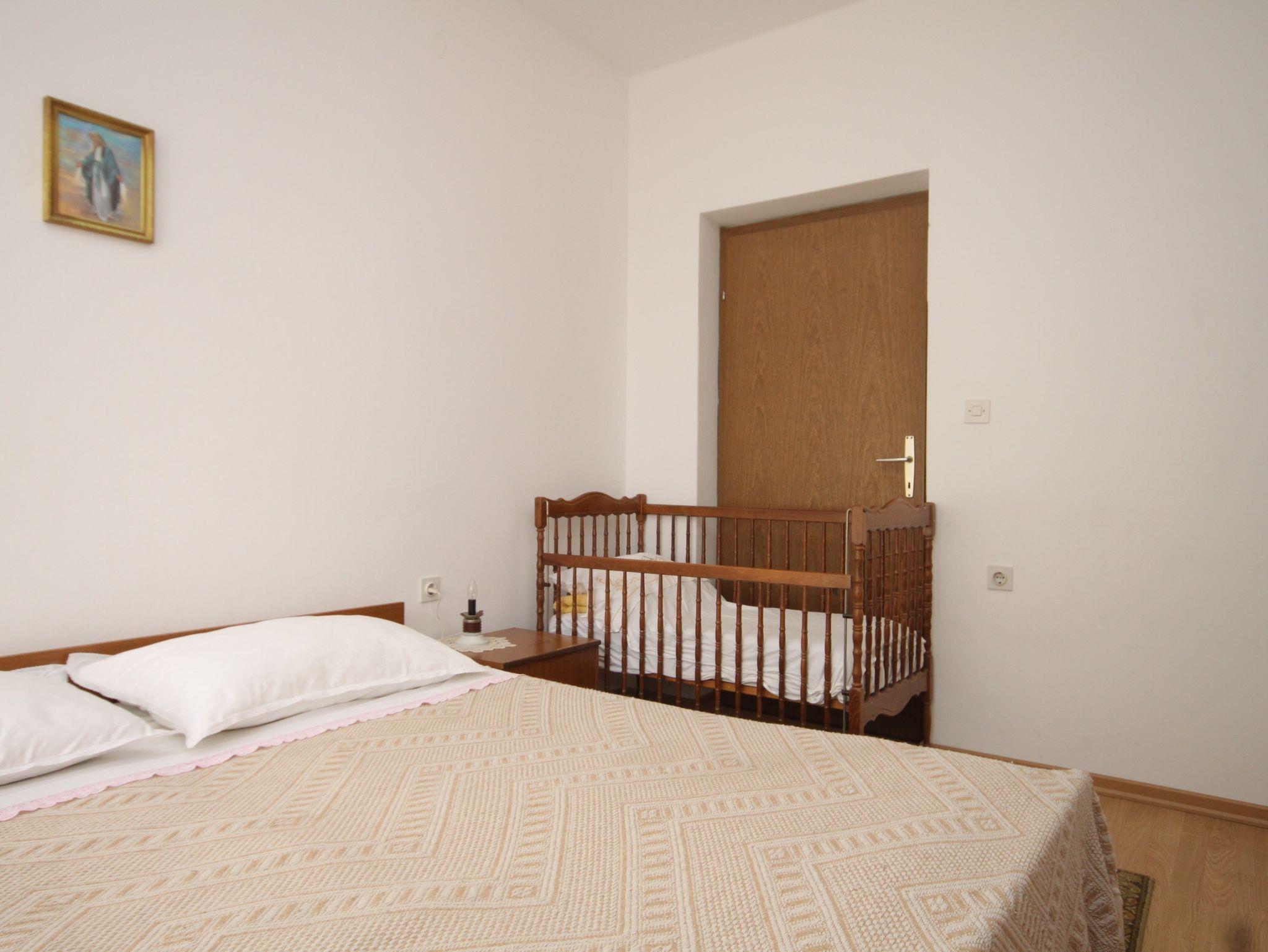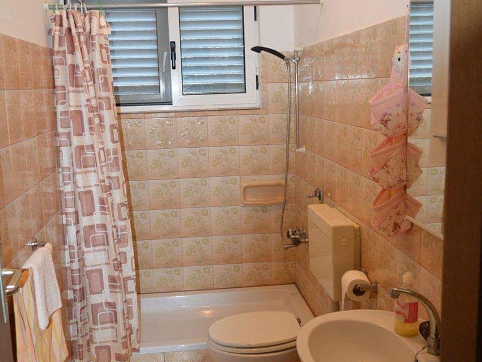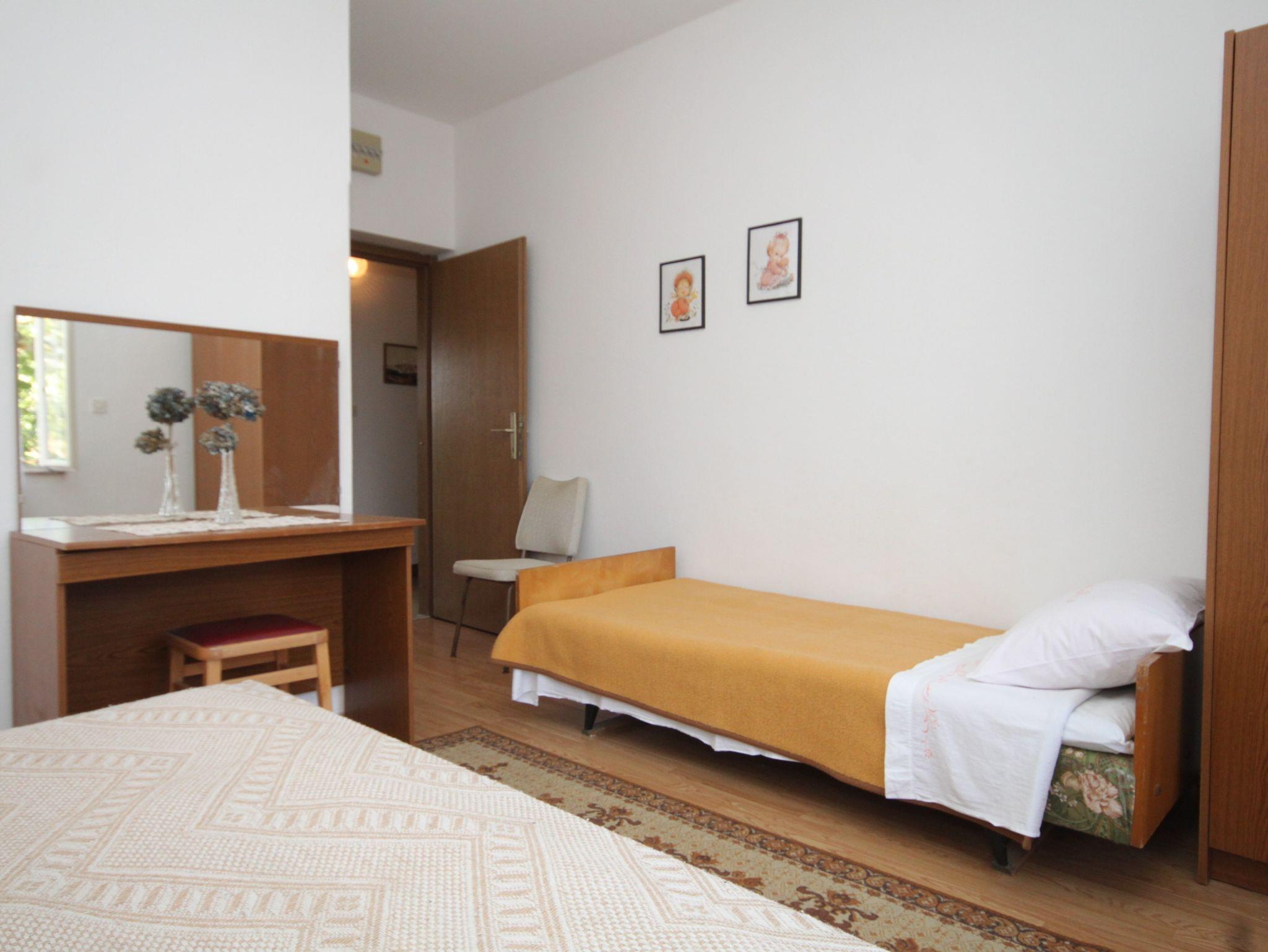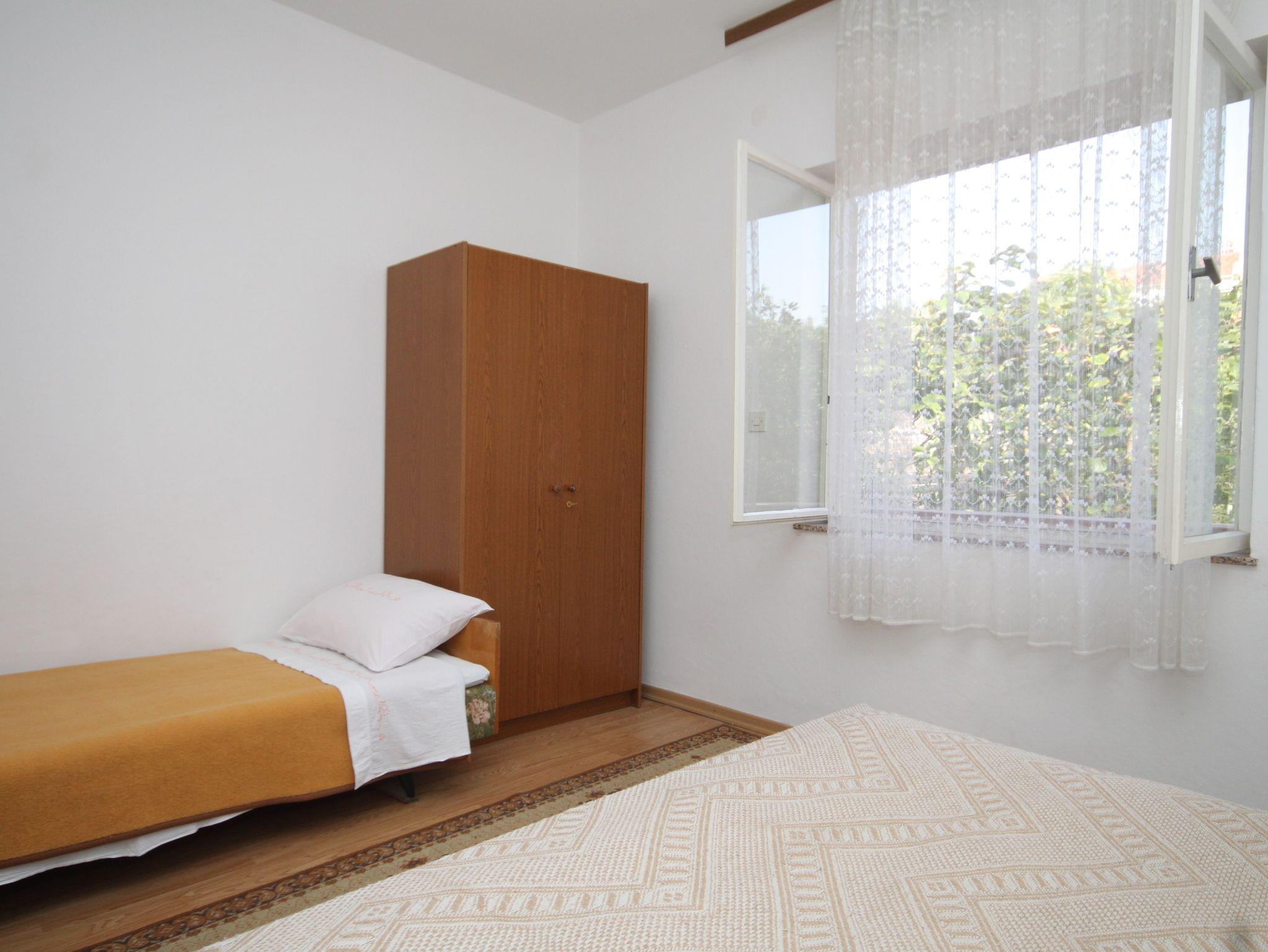 Ferienwohnung bietet Platz für 6 Gäste. Die Betten sind in Schlafzimmern, die es 2 gibt, und in Esszimmer, innerhalb einer Gesamtfläche von 57m2, angeordnet. Die Gäste haben eine eigene Terrasse zur Verfügung, auf der sie in warmen Sommernächten genießen können. Für vollen Genuss und Entspannung gibt es einen privaten Grill für Gäste dieser Unterkunft. IM PREIS INBEGRIFFEN: Kurtaxe, Endreinigung, Klimatisierung, Parkplatz, Internet, Kinderbett, tragbarer Grill, Sonnenschirm. VERBINDLICHE ZUSÄTZLICHE KOSTEN: Aufzahlung für Kurzaufenthalte (prozentualer Zuschlag pro Nächtigungsanzahl: 30% - 1, 20% - 2, 10% - 3). Die Verfügbarkeit zusätzlicher Dienstleistungen in Ihrem reservierten Termin und die Preise derselben (falls nicht aufgeführt) müssen im Voraus überprüft werden. Zusätzliche Dienstleistungen die in der Zahlungsaufforderung nicht aufgeführt sind werden direkt beim Vermieter bezahlt, angenommen der Gast nutzt auch diese. Ermäßigung auf den Grundpreis: Gratistag 14=13 (bei einem Aufenthalt von 14 Tagen oder mehr erhalten Sie einen Gratistag für den Aufenthalt bis 31.12.26).