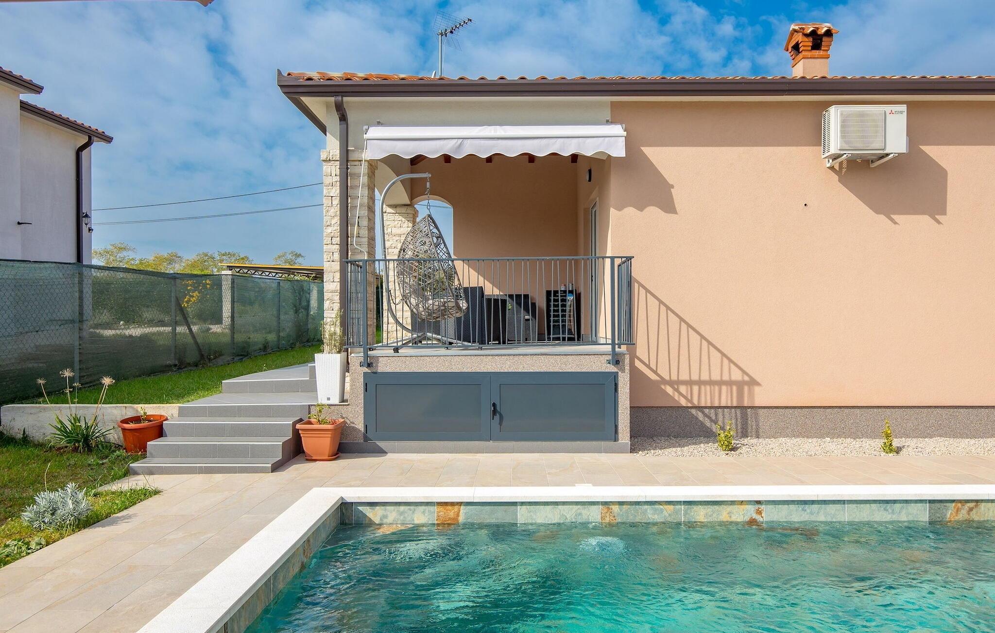 Tilbring en vidunderlig, afslappende ferie i dette charmerende feriehus. Villa Daris kan rumme op til 6+2 gæster og er perfekt til en ferie med en gruppe venner eller familie. Villaen er indrettet med stor sans for detaljer i et moderne design og er særdeles velegnet til familier med små børn, da alle rum i husets indre er i ét plan.