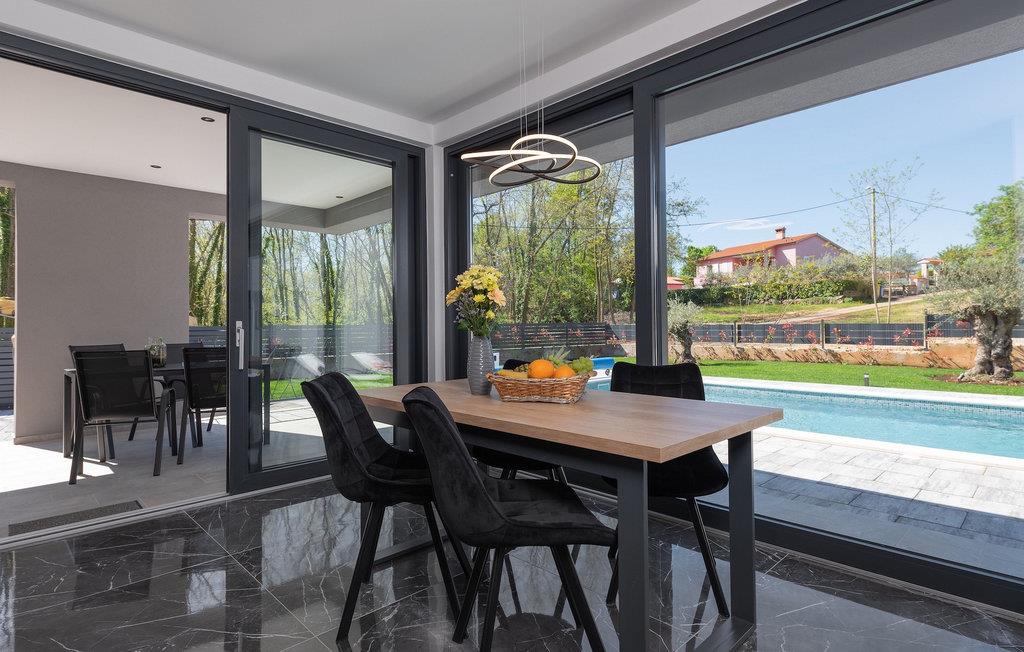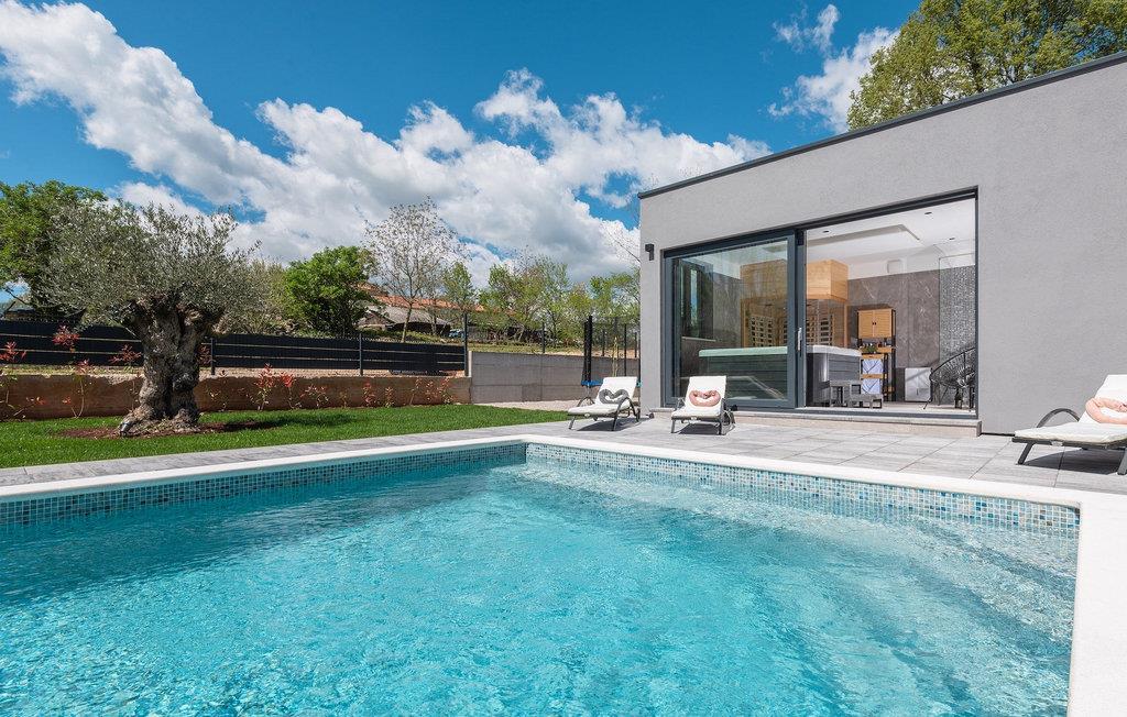 Villa Alison Deluxe er en oase af velvære, hvor du kan flygte fra hverdagen og tilbringe en skøn pause med dine kære. Beliggende i landsbyen Zupanici nær Labin, tilbyder dette charmerende tilflugtssted dig den fred og afslapning, du ønsker. På solrige sommerdage vil du føle dig helt tilpas i den 32m2 store, forfriskende pool eller på en af de komfortable liggestole med en kølig drink i hånden. Nyd de lækre lokale delikatesser frisklavet på kulgrillen på den hyggelige overdækkede terrasse, mens du ser børnene lege i haven. Et højdepunkt til romantiske sommeraftener eller en weekend for to er uden tvivl wellness-området med spabad og sauna. Interiøret er smagfuldt indrettet og emmer af elegance. Ikke desto mindre vil du føle dig helt hjemme her. Den åbne, airconditionerede stue med en komfortabel sofa og tv er direkte forbundet med spisepladsen med et fuldt udstyret, moderne køkken. To soveværelser med komfortable dobbeltsenge lover afslappende nætter. Begge soveværelser har hver deres eget moderne badeværelse med bruser, der tilbyder det privatliv og den komfort, du forventer. Villa Alison Deluxe er perfekt til 4 gæster, men kan også rumme to børn på udtrækssofaen i stuen. Tøv ikke, forkæl dig selv med lidt luksus og tilbring en uforglemmelig ferie i den smukke Villa Alison Deluxe. Villa Alison Deluxe er beliggende nær de kendte byer Labin og Rabac, på østkysten af Istrien. Regionen er kendt for sine kunststudier og også for en fremragende gastronomisk scene. På dagsture kan du nyde det smukke landskab i det centrale Istrien omkring Motovun eller udforske kystbyer som Pula, Porec og Rovinj. Mange familievenlige strande eller endda skjulte, uspolerede bugter er kun en kort køretur væk fra villaen. For adrenalinelskere anbefaler vi den nærliggende Galvani Adrenaline Park, hvor du kan opleve aktiviteter som kajaksejlads, quad-cykling og safari. Cykling og vandreture på kendte stier gennem idyllisk natur er også ideelle her. For elskere af gastronomi er smagning af istriske delikatesser - istrisk malvasia, prosciutto og pasta med trøfler, som denne region er berømt for, et must. Temperaturen i den opvarmede swimmingpool er afhængig af eksterne faktorer, herunder vejrforhold, og som sådan kan temperaturen på vandet ikke garanteres.