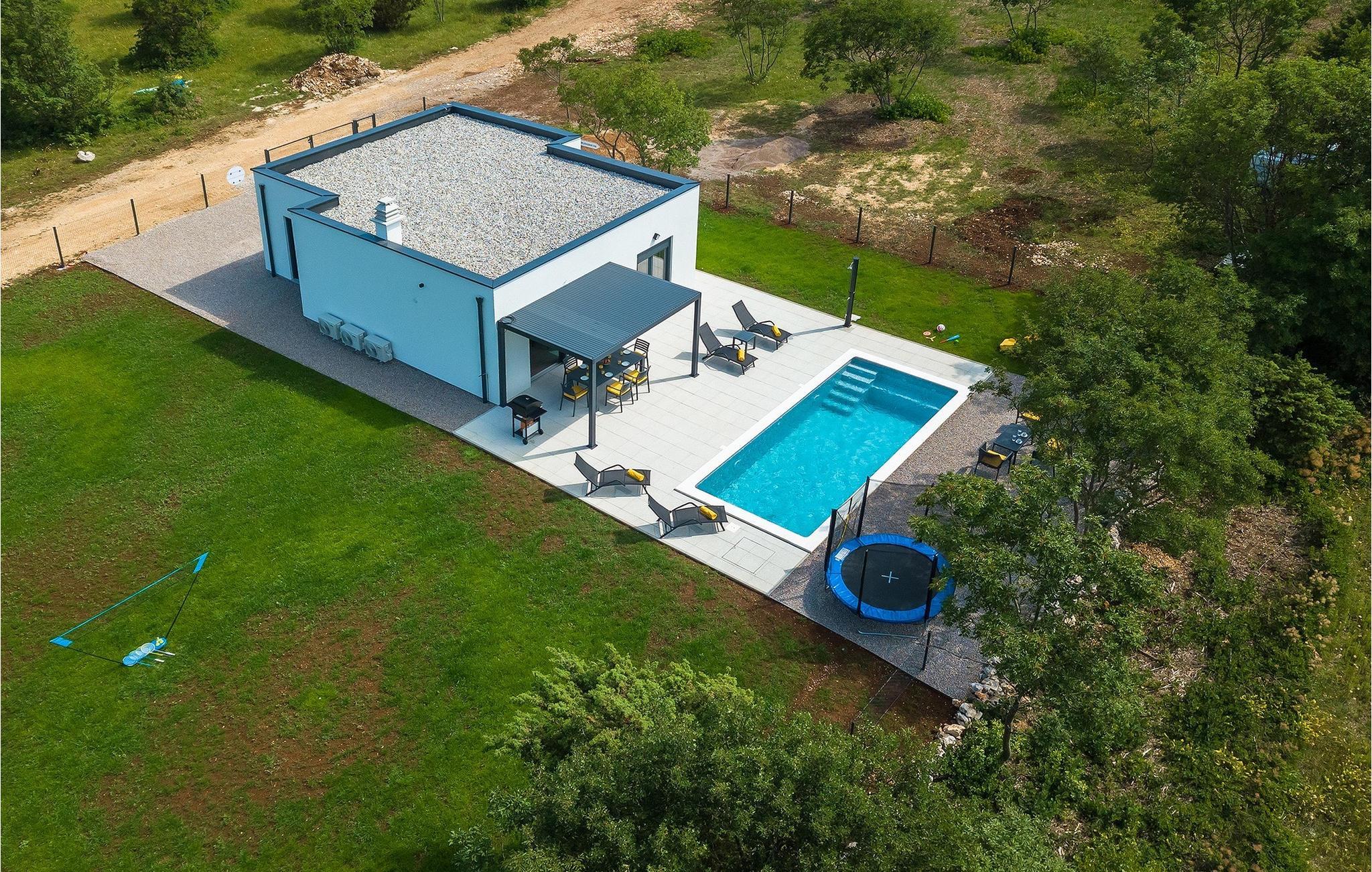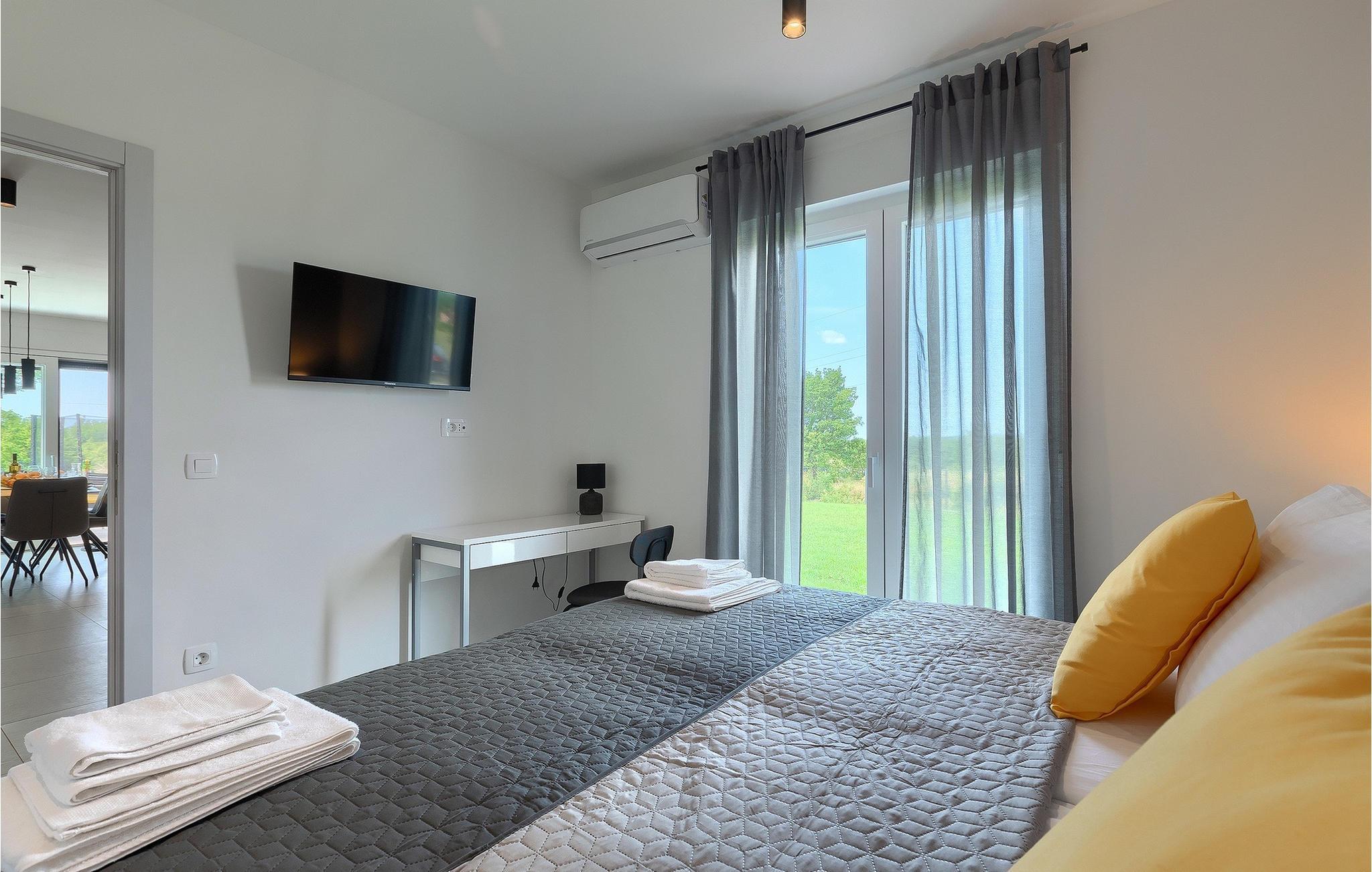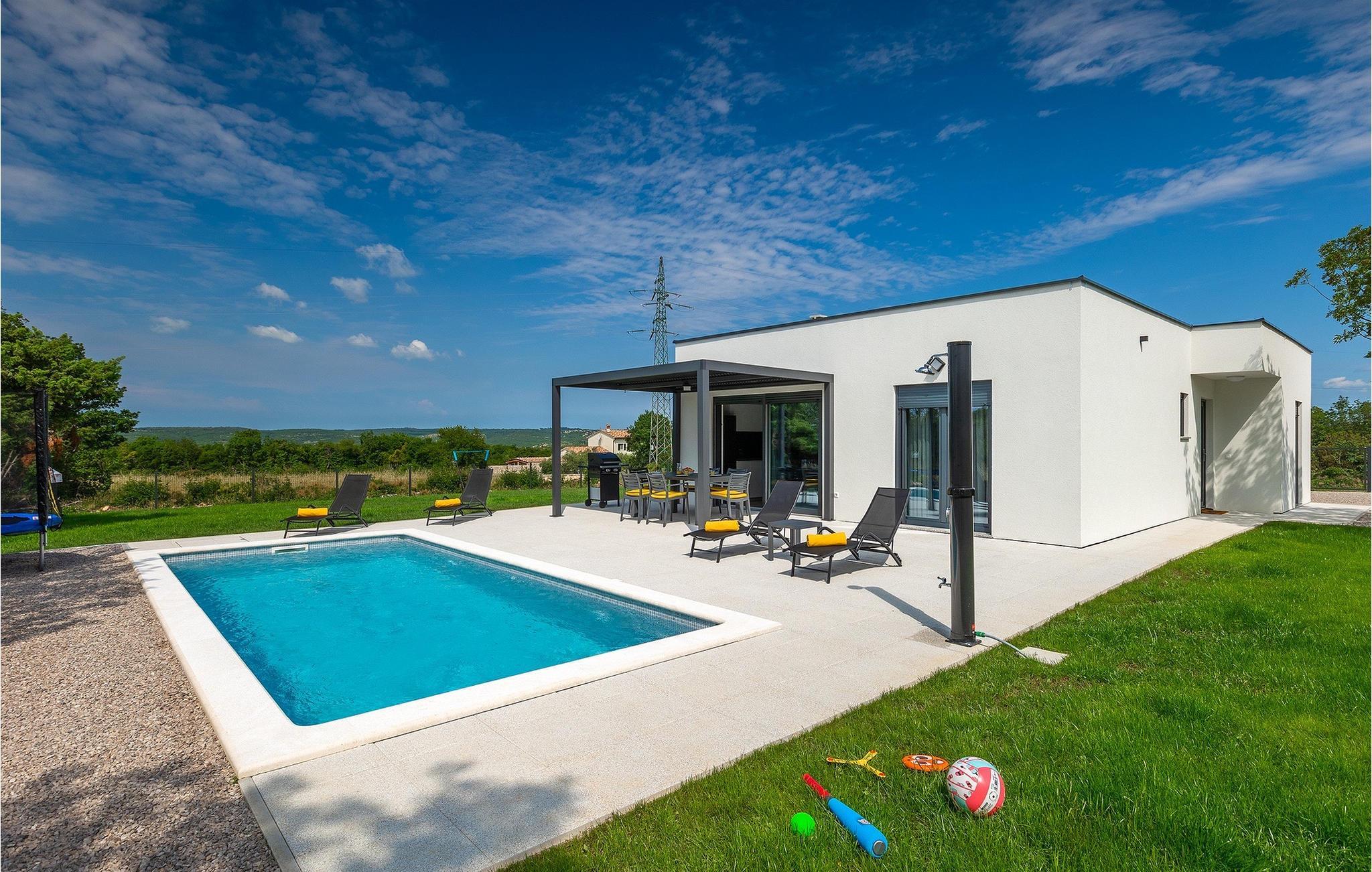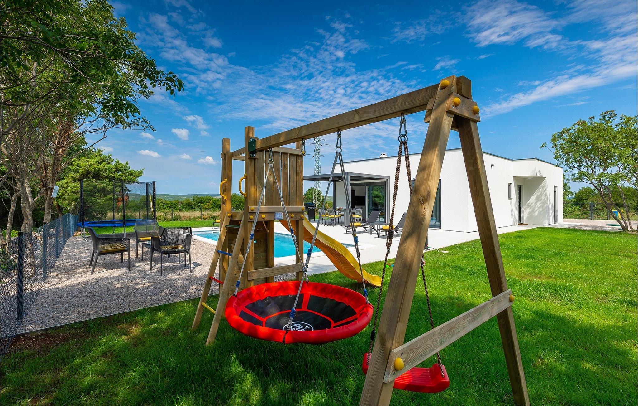 Moderne Villa Lotta vil give dig en afslappende ferie i miljøet af uberørt natur. Villaen er ideel til en ferie med familie eller venner. I løbet af sommervarmen kan du kigge efter en forfriskning i den 21 m2 store swimmingpool. Ved poolen er der et overdækket område med spisebord og grill, behageligt til uforglemmelige sammenkomster og tilberedte traditionelle istriske retter. Vores yngste gæster kan more sig på legepladsen. I nærheden af børnenes legeplads er der et bord og stole i den naturlige skygge til at drikke kaffe eller forfriskende drinks om eftermiddagen. Brug tid udendørs på at spille badminton eller volleyball. Villaens indre er fuld af naturligt lys, og alle værelser er placeret i husets stueetage. I villaens åbne rum er der en stue, et fuldt udstyret køkken af moderne design og en spisestue, hvor du kan nyde den istriske atmosfære. Det første soveværelse har en dobbeltseng og et privat badeværelse med udsigt over poolen og landskabet i Brgod. Der er to senge i det andet værelse. Alle værelser har tv og aircondition. Det andet badeværelse og et separat vaskerum er også placeret i husets stueetage. Gå ikke glip af en ferie i Villa Lotta i de fredelige omgivelser i det smukke landskab i Brgod. Villa Lotta ligger i den sydøstlige del af Istrien-halvøen i landsbyen Brgod. Denne fredelige bygd ligger over Raska-bugten og den lille fiskerlandsby Trget. Oplev lokalbefolkningens magi og den uberørte natur. Landskabet er rigt på bakker og talrige nærliggende bugter, som du kan nå med vandre- og cykelstier, vil efterlade dig forpustet. Besøg de nærliggende berømte turistcentre Rabac og Labin. Rabac var en tidligere fiskerby, i dag er den kendt for sin naturlige skønhed, smukke grotter og strande. Denne Kvarners perle blev også besøgt af rejseskribenten Richard Francis Burton i det 19. århundrede. Udforsk Labin, den middelalderlige by, som ligger på en bakke over Rabac. Matija Vlacics hjemby er en kombination af rig arkitektur, kulturelle og historiske monumenter og kunststudier. Gennem de charmerende smalle gader i Labin kan du opdage det rige udbud af lokale gæstfrihedsvirksomheder.
