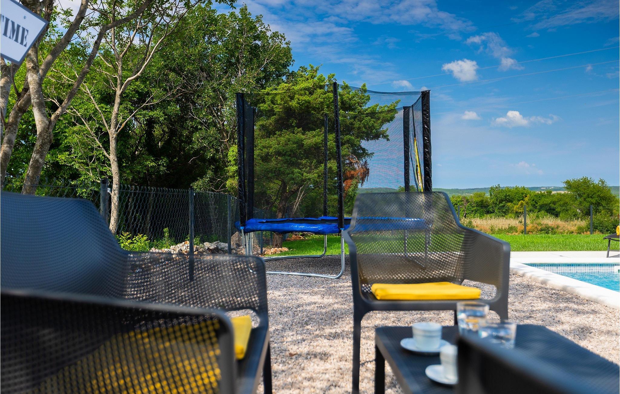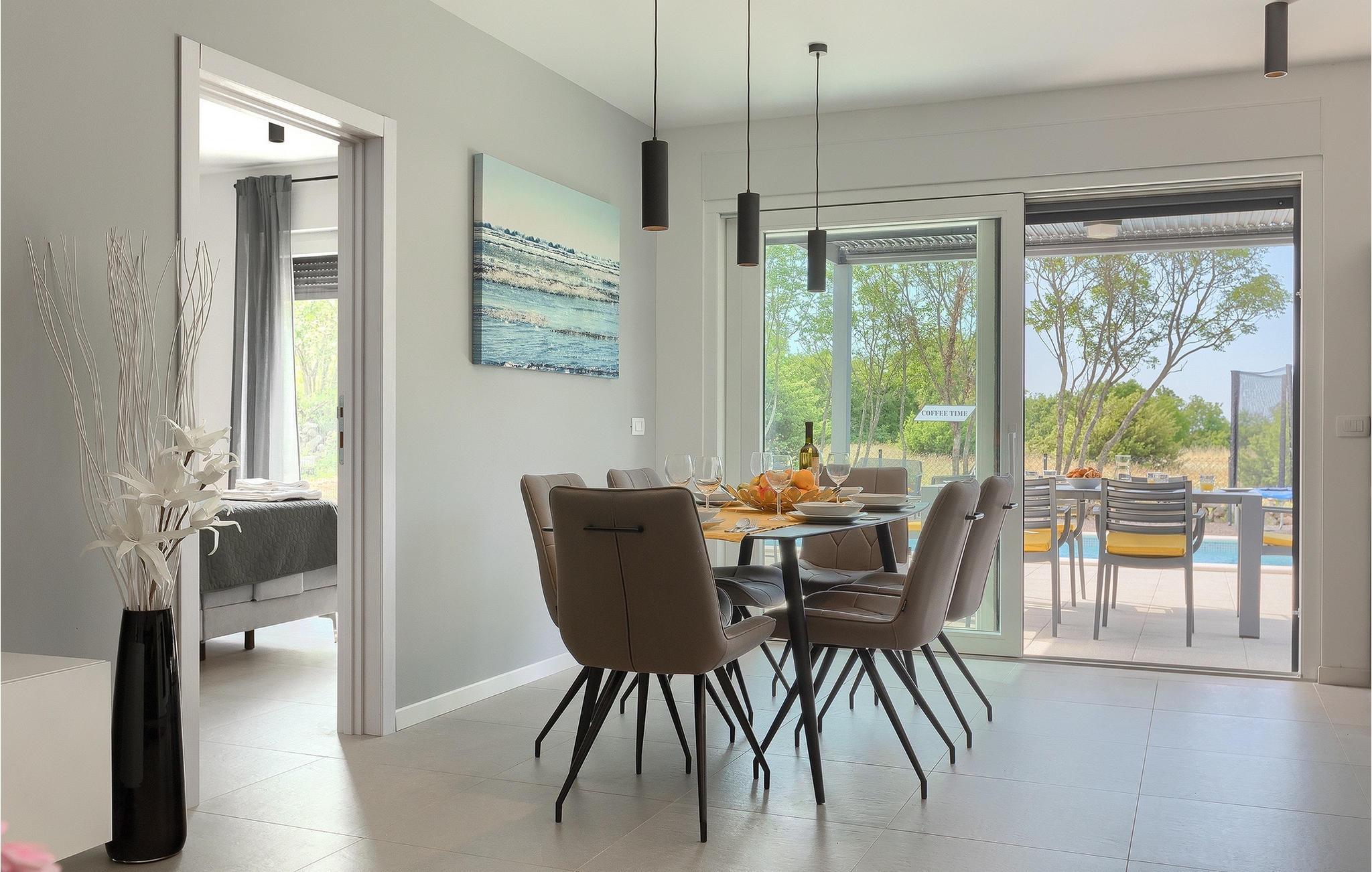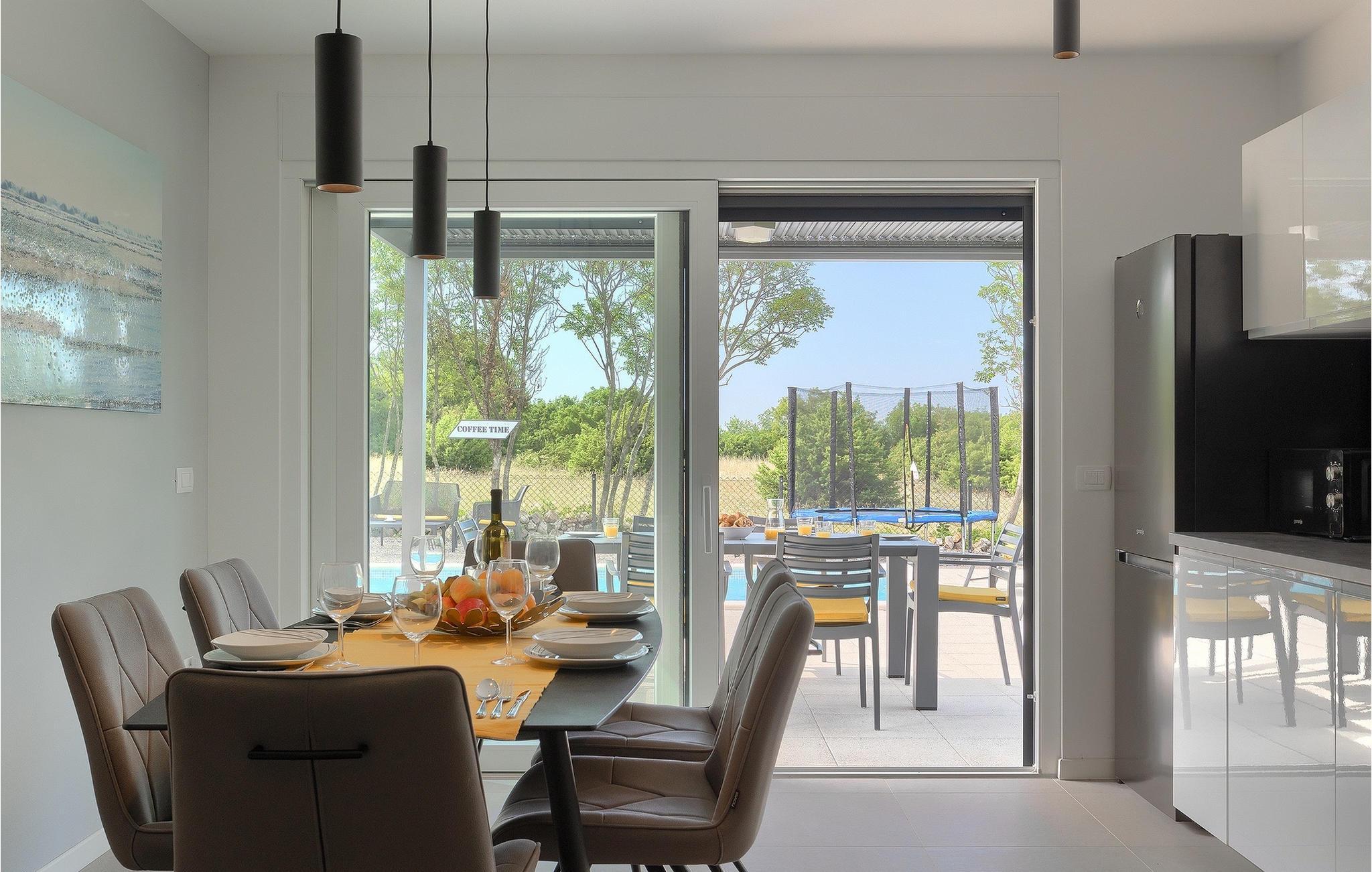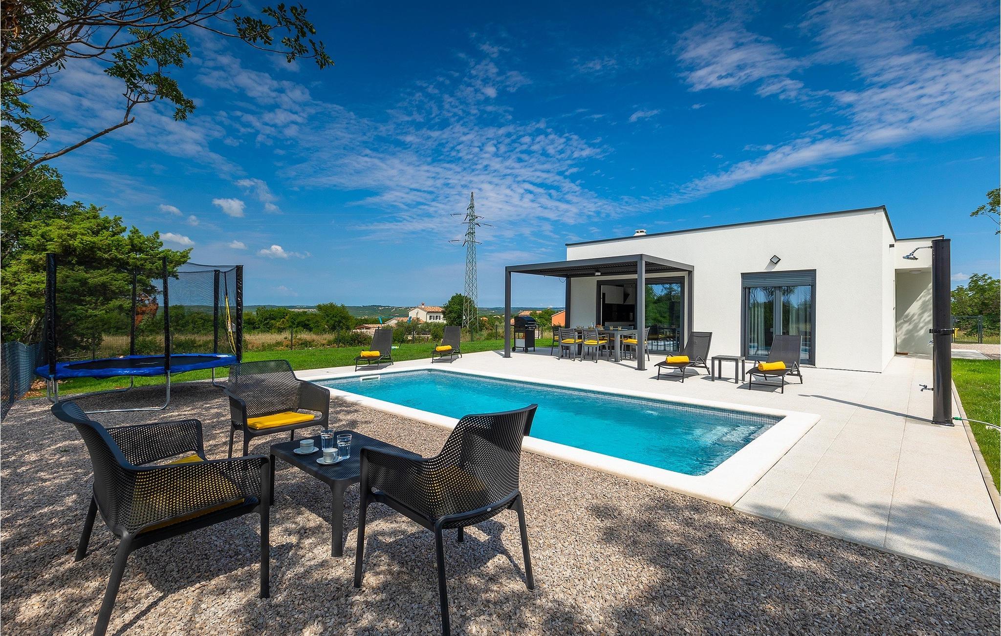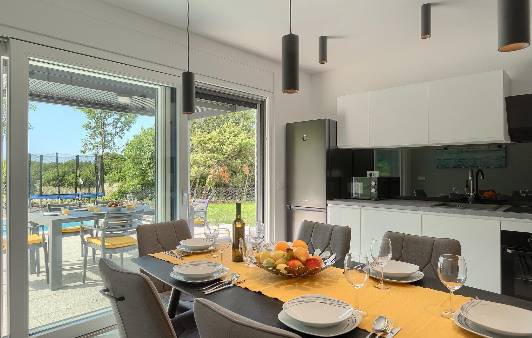 Moderne Villa Lotta vil give dig en afslappende ferie i miljøet af uberørt natur. Villaen er ideel til en ferie med familie eller venner. I løbet af sommervarmen kan du kigge efter en forfriskning i den 21 m2 store swimmingpool. Ved poolen er der et overdækket område med spisebord og grill, behageligt til uforglemmelige sammenkomster og tilberedte traditionelle istriske retter. Vores yngste gæster kan more sig på legepladsen. I nærheden af børnenes legeplads er der et bord og stole i den naturlige skygge til at drikke kaffe eller forfriskende drinks om eftermiddagen. Brug tid udendørs på at spille badminton eller volleyball. Villaens indre er fuld af naturligt lys, og alle værelser er placeret i husets stueetage. I villaens åbne rum er der en stue, et fuldt udstyret køkken af moderne design og en spisestue, hvor du kan nyde den istriske atmosfære. Det første soveværelse har en dobbeltseng og et privat badeværelse med udsigt over poolen og landskabet i Brgod. Der er to senge i det andet værelse. Alle værelser har tv og aircondition. Det andet badeværelse og et separat vaskerum er også placeret i husets stueetage. Gå ikke glip af en ferie i Villa Lotta i de fredelige omgivelser i det smukke landskab i Brgod. Villa Lotta ligger i den sydøstlige del af Istrien-halvøen i landsbyen Brgod. Denne fredelige bygd ligger over Raska-bugten og den lille fiskerlandsby Trget. Oplev lokalbefolkningens magi og den uberørte natur. Landskabet er rigt på bakker og talrige nærliggende bugter, som du kan nå med vandre- og cykelstier, vil efterlade dig forpustet. Besøg de nærliggende berømte turistcentre Rabac og Labin. Rabac var en tidligere fiskerby, i dag er den kendt for sin naturlige skønhed, smukke grotter og strande. Denne Kvarners perle blev også besøgt af rejseskribenten Richard Francis Burton i det 19. århundrede. Udforsk Labin, den middelalderlige by, som ligger på en bakke over Rabac. Matija Vlacics hjemby er en kombination af rig arkitektur, kulturelle og historiske monumenter og kunststudier. Gennem de charmerende smalle gader i Labin kan du opdage det rige udbud af lokale gæstfrihedsvirksomheder.