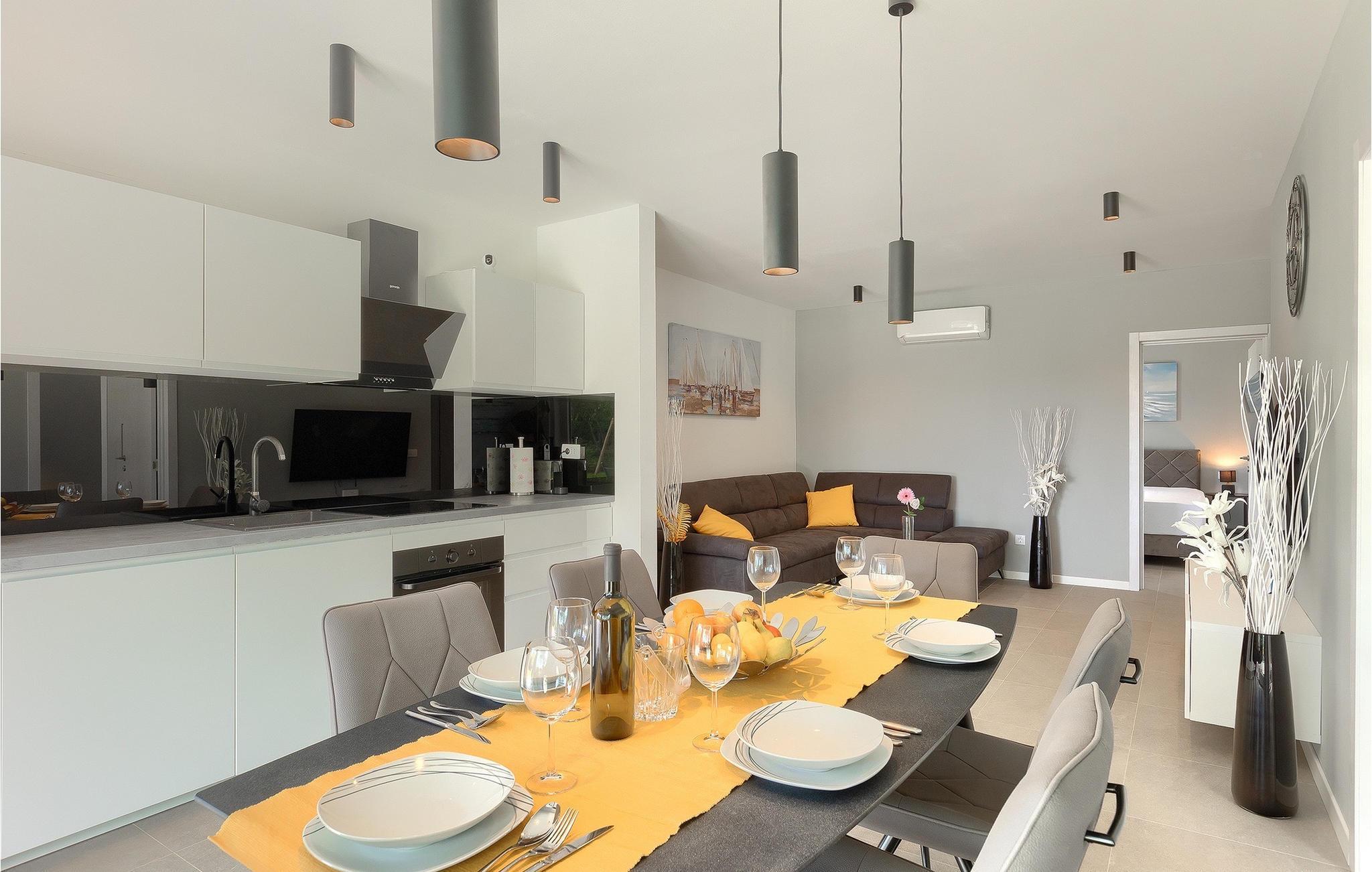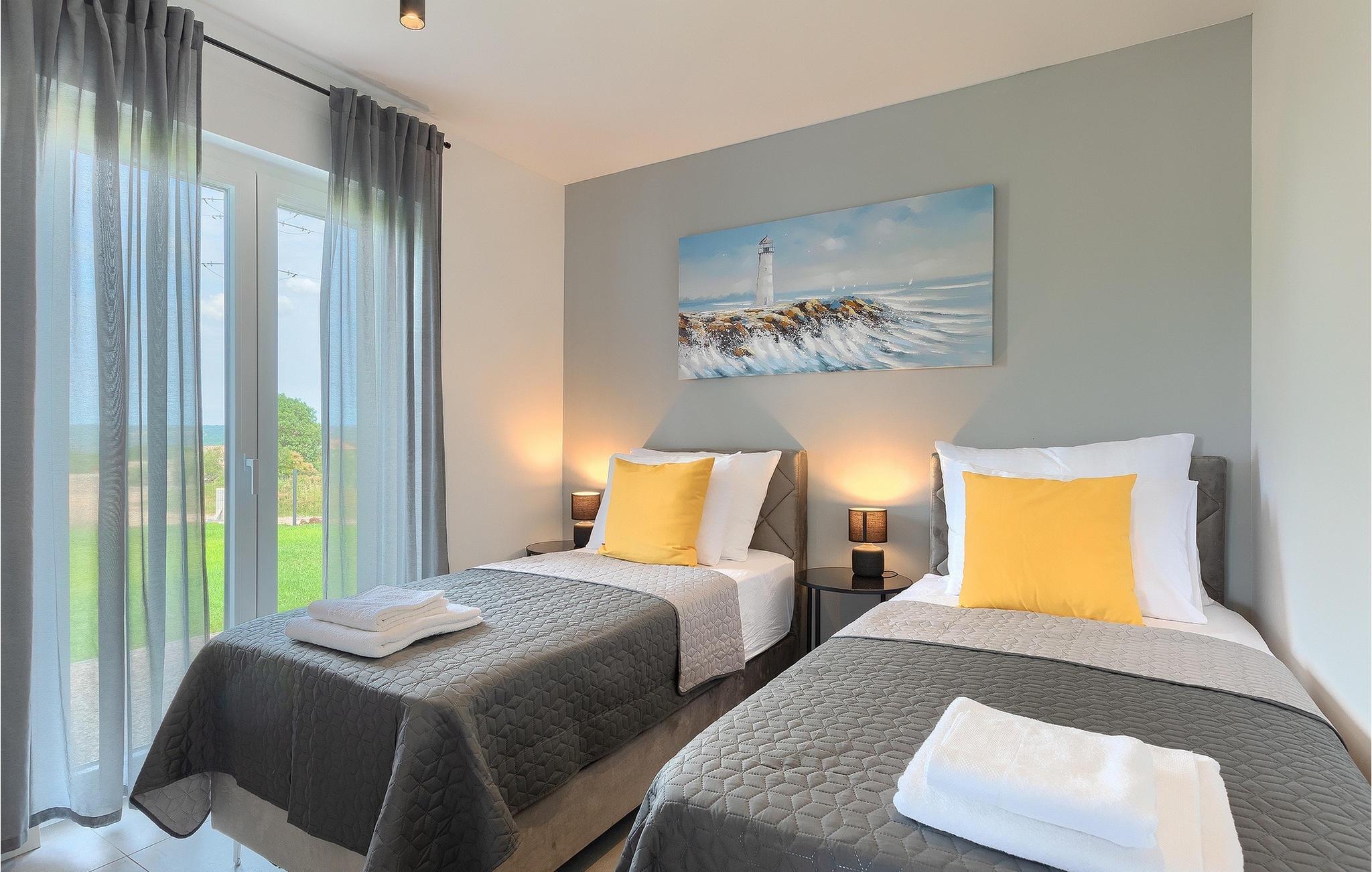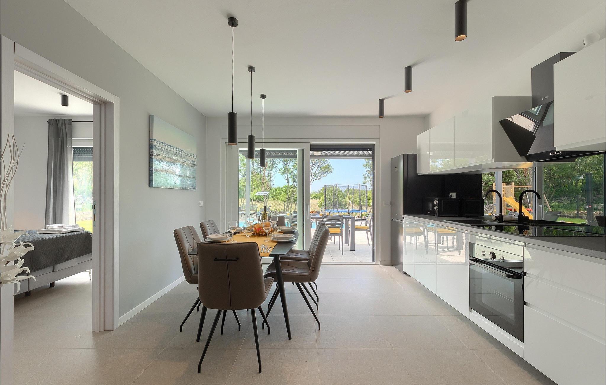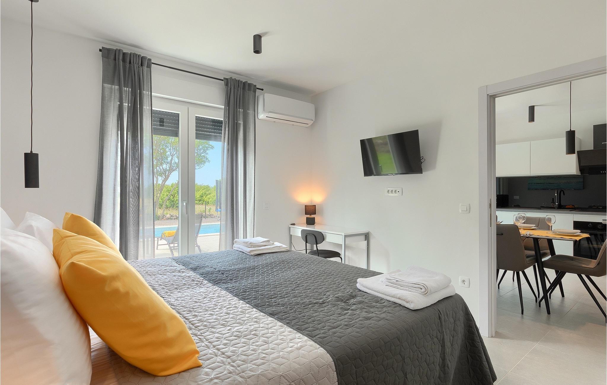 Moderne Villa Lotta vil give dig en afslappende ferie i miljøet af uberørt natur. Villaen er ideel til en ferie med familie eller venner. I løbet af sommervarmen kan du kigge efter en forfriskning i den 21 m2 store swimmingpool. Ved poolen er der et overdækket område med spisebord og grill, behageligt til uforglemmelige sammenkomster og tilberedte traditionelle istriske retter. Vores yngste gæster kan more sig på legepladsen. I nærheden af børnenes legeplads er der et bord og stole i den naturlige skygge til at drikke kaffe eller forfriskende drinks om eftermiddagen. Brug tid udendørs på at spille badminton eller volleyball. Villaens indre er fuld af naturligt lys, og alle værelser er placeret i husets stueetage. I villaens åbne rum er der en stue, et fuldt udstyret køkken af moderne design og en spisestue, hvor du kan nyde den istriske atmosfære. Det første soveværelse har en dobbeltseng og et privat badeværelse med udsigt over poolen og landskabet i Brgod. Der er to senge i det andet værelse. Alle værelser har tv og aircondition. Det andet badeværelse og et separat vaskerum er også placeret i husets stueetage. Gå ikke glip af en ferie i Villa Lotta i de fredelige omgivelser i det smukke landskab i Brgod. Villa Lotta ligger i den sydøstlige del af Istrien-halvøen i landsbyen Brgod. Denne fredelige bygd ligger over Raska-bugten og den lille fiskerlandsby Trget. Oplev lokalbefolkningens magi og den uberørte natur. Landskabet er rigt på bakker og talrige nærliggende bugter, som du kan nå med vandre- og cykelstier, vil efterlade dig forpustet. Besøg de nærliggende berømte turistcentre Rabac og Labin. Rabac var en tidligere fiskerby, i dag er den kendt for sin naturlige skønhed, smukke grotter og strande. Denne Kvarners perle blev også besøgt af rejseskribenten Richard Francis Burton i det 19. århundrede. Udforsk Labin, den middelalderlige by, som ligger på en bakke over Rabac. Matija Vlacics hjemby er en kombination af rig arkitektur, kulturelle og historiske monumenter og kunststudier. Gennem de charmerende smalle gader i Labin kan du opdage det rige udbud af lokale gæstfrihedsvirksomheder.