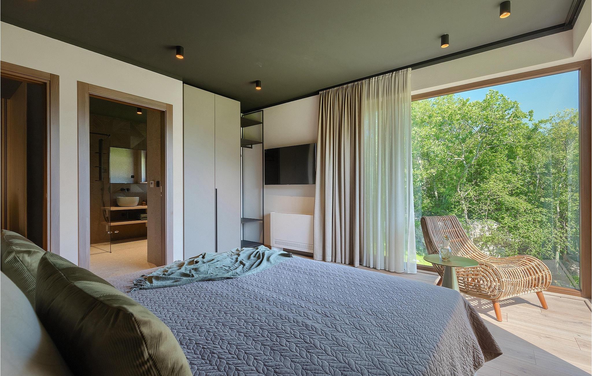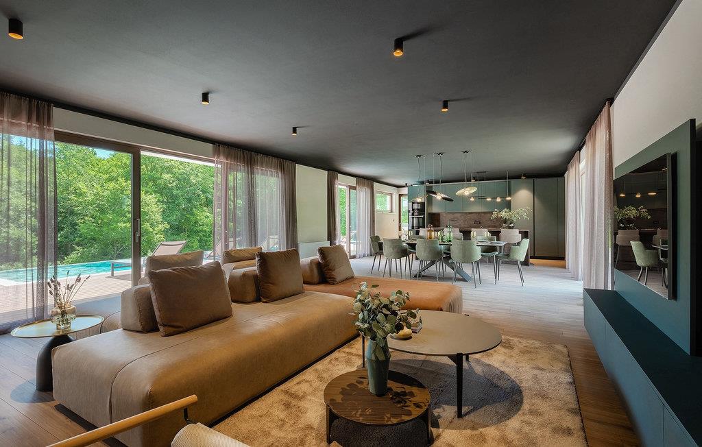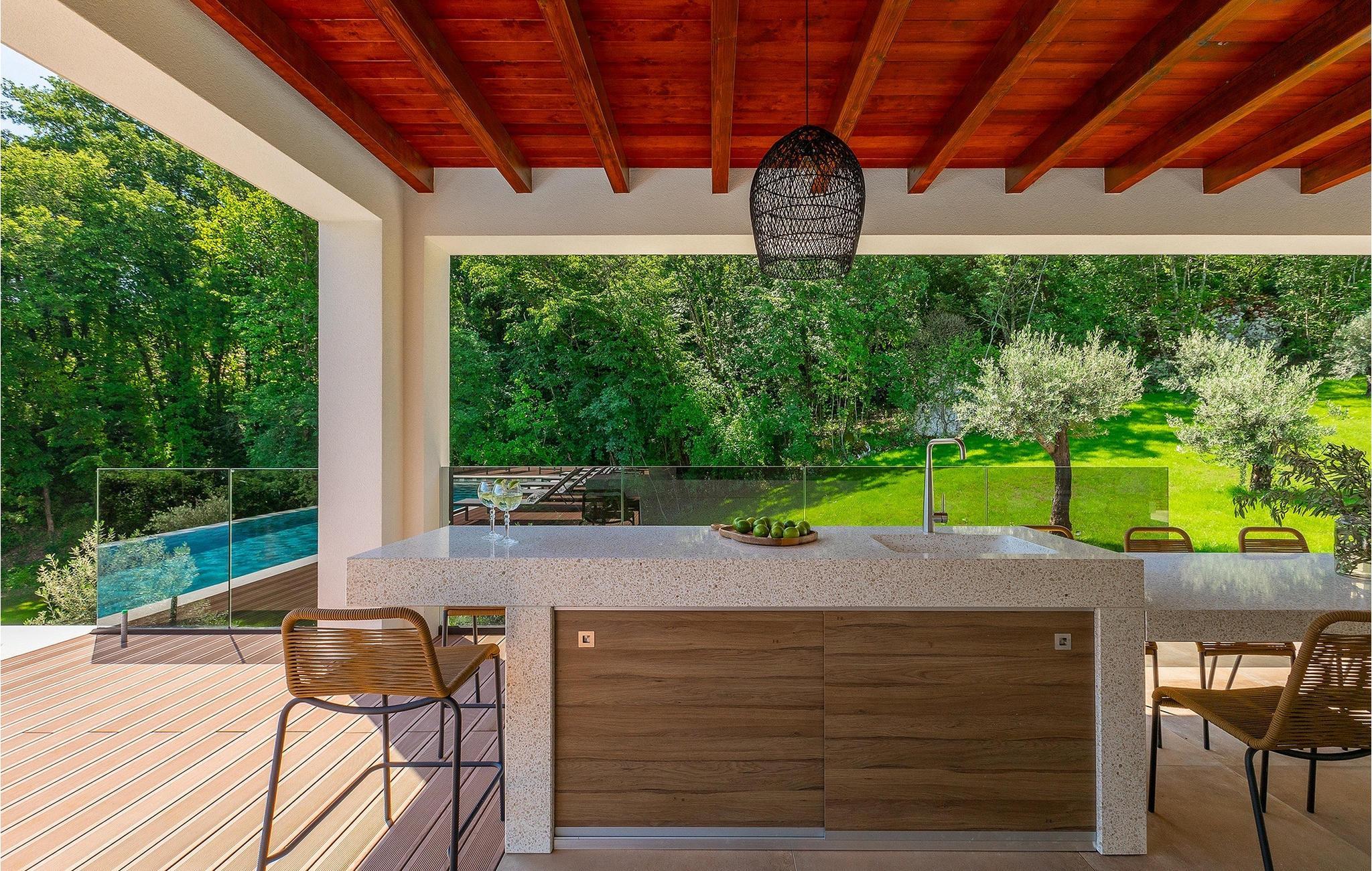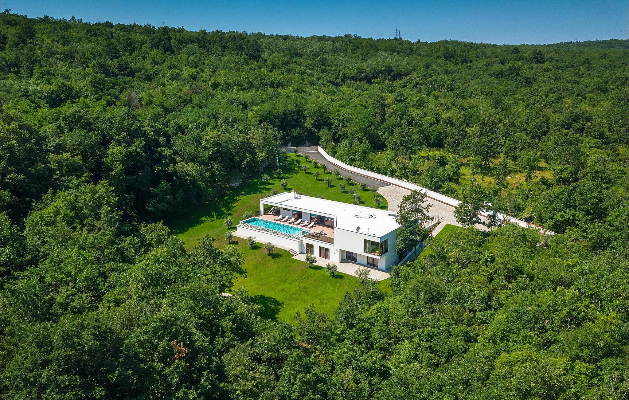 Hvis du leder efter en førsteklasses og privat villa i Istrien til din familieferie - søg ikke mere. Villa Nicol Tirelli er en fantastisk ejendom for i alt 10 gæster nær byerne Labin og Rabac. Villaens udendørsområde er virkelig fantastisk med den 60m2 private, opvarmede infinity-pool, et moderne dæk og en terrasse med overdækket spiseplads, grill og masser af havemøbler til at slappe af og tilbringe kvalitetstid med familien. Det, der virkelig skiller sig ud, er villaens naturskønne miljø - en fredelig beliggenhed omgivet af skove, en samlet grund på 15000m2 og langt væk fra turistmængderne. Ved at booke Villa Nicol Tireli kan du også nyde en række sjove aktiviteter med dine kære. En komplet legeplads, et fitnesscenter, basketball, mini-fodbold, badminton, dart, bordtennis og bordfodbold samt en PlayStation 5 med spil, er alle til din rådighed. Sjov, der aldrig ender, hvis du spørger os. Interiørets gennemtænkte samlede design er endnu et træk ved denne ejendom, der virkelig skiller sig ud. Gennem de to etager i villaen er der træ, grå og mørkegrønne accenter, der tilføjer den luksuriøse følelse af opholdet. Villaen har et åbent koncept med en hyggelig stue, et fuldt udstyret køkken og en spiseplads. Der er i alt 4 soveværelser, hvoraf 3 er i stueetagen og et er på første sal. Der er desuden 4 en-suite badeværelser og 1 separat toilet. Hjemmet har Wi-Fi, et vaskerum og en fuldt udstyret bar ud over at have komplet aircondition. Villa Nicol Tireli er stedet at bo, hvis du leder efter rolige og elegante omgivelser til at tilbringe din fantastiske ferie i Istrien! I den østlige region af Istrien er en lille landsby kaldet Kršan rammen om den fantastiske Villa Nicol Tireli. Du vil blive glad for at erfare, at villaen kun ligger 8 km fra den nærmeste strand, da Istrien-halvøen, ofte kendt som "terra magica", ligger ved det varme Adriaterhav. De nærmeste populære turistmål og nogle af de større turistknudepunkter, såsom Labin og Rabac, er også kun en kort køretur væk. Det historiske og administrative centrum i det østlige Istrien er Labin, som ligger på en bakketop umiddelbart over den maleriske kystlinje. På grund af sin omfattende kulturelle og arkitektoniske arv er regionen et paradis for elskere af historie og kunst. Den gamle bydels smalle, krogede gader er hjemsted for adskillige velbevarede kunstgallerier og værksteder samt musikfestivaler hele sommeren. Byen er hjemsted for en række førsteklasses fiske- og skaldyrsrestauranter, der serverer regionale retter, samt et stort antal rolige kaffebarer, der er perfekte til at nyde den afslappede stemning. Rabac, en tidligere fiskerby, der nu er et vellidt feriested med udsøgte stenstrande, er Labins kystby. Mens du besøger dette område, vil du helt sikkert mærke den istriske charme på mange måder. Temperaturen i den opvarmede swimmingpool er afhængig af eksterne faktorer, herunder vejrforhold, og som sådan kan temperaturen på vandet ikke garanteres.