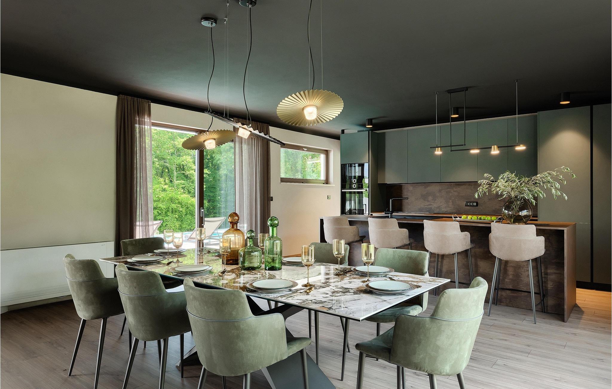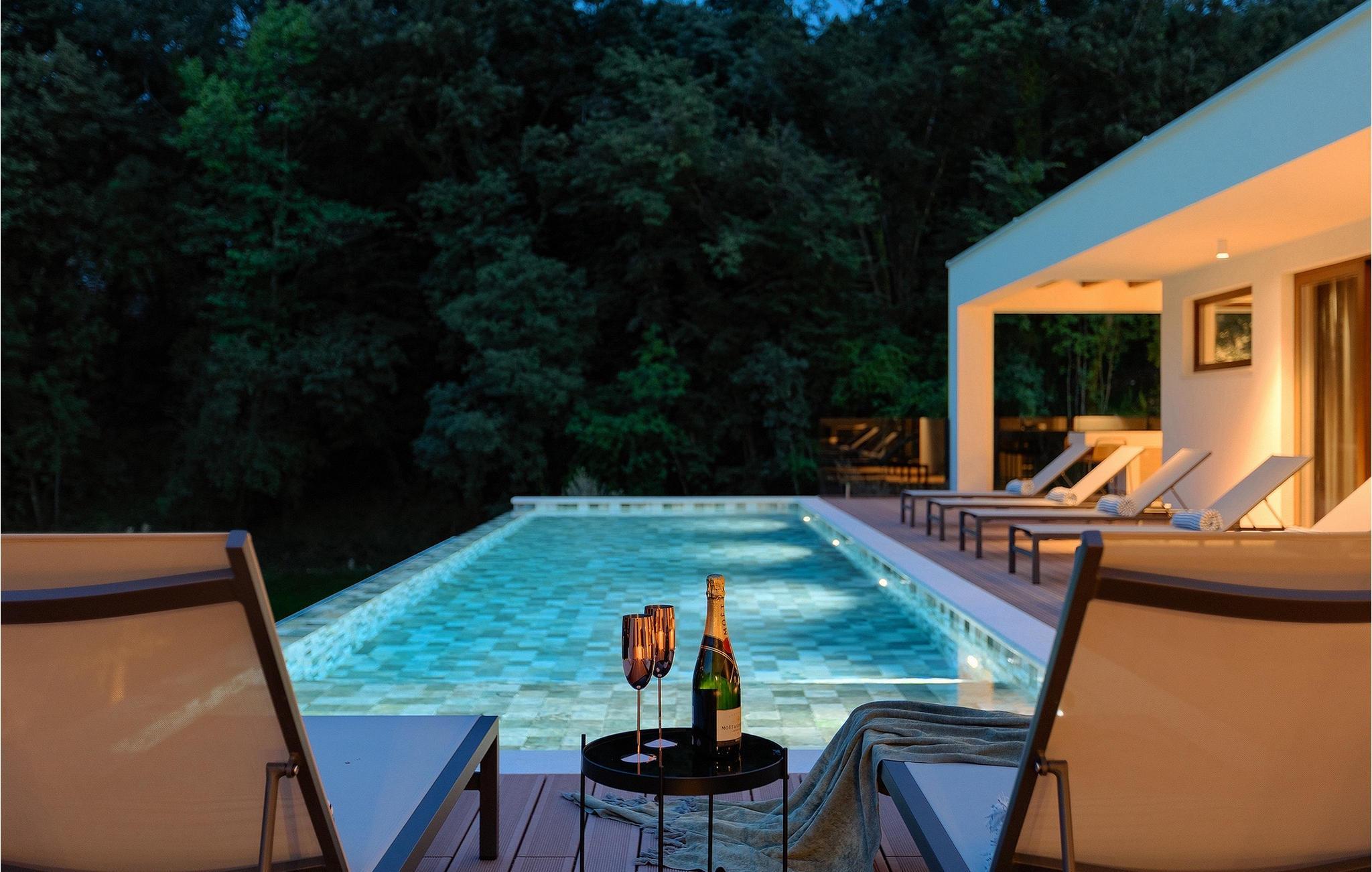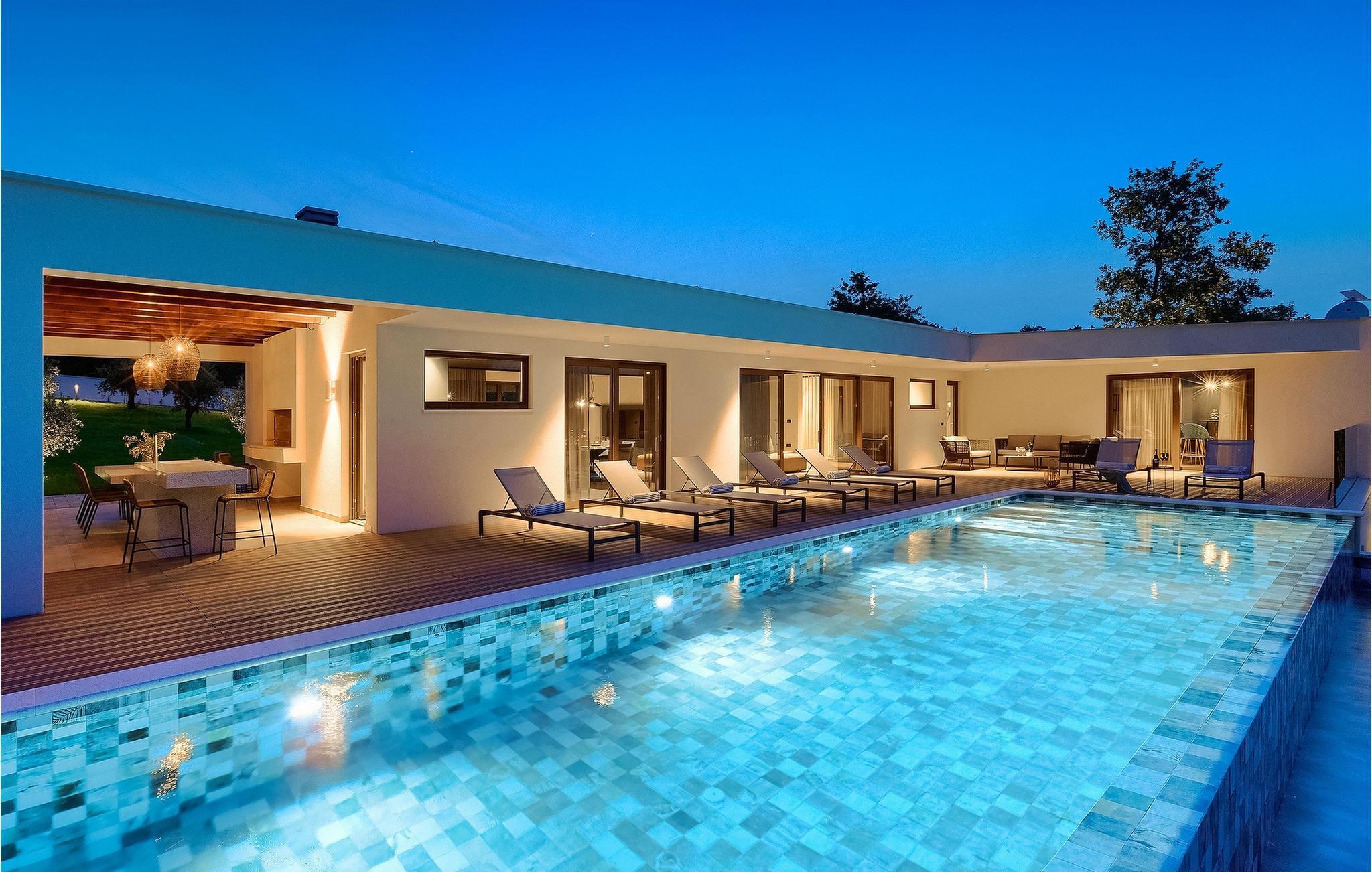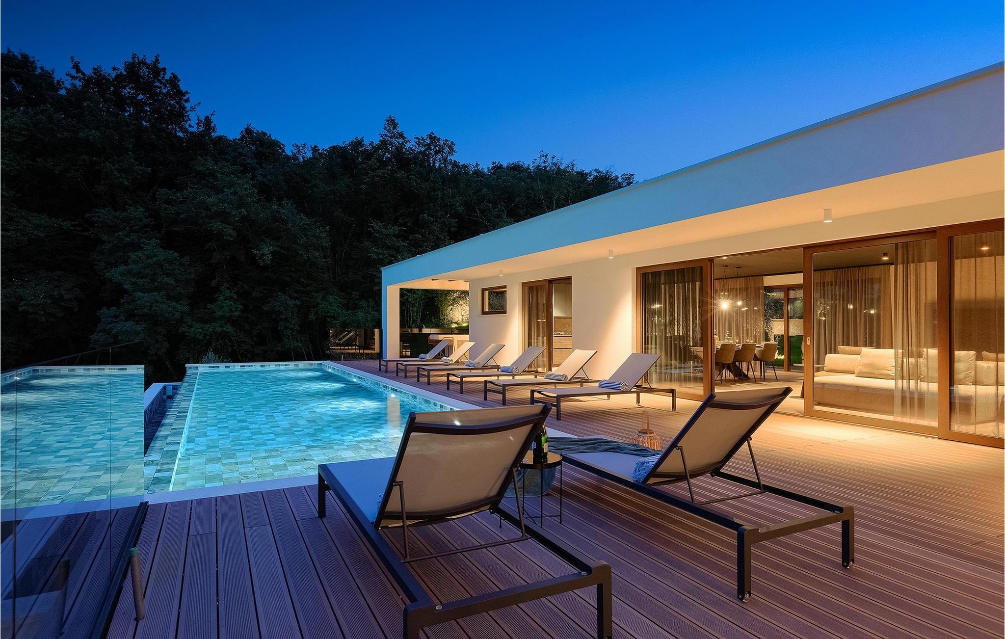 Hvis du leder efter en førsteklasses og privat villa i Istrien til din familieferie - søg ikke mere. Villa Nicol Tirelli er en fantastisk ejendom for i alt 10 gæster nær byerne Labin og Rabac. Villaens udendørsområde er virkelig fantastisk med den 60m2 private, opvarmede infinity-pool, et moderne dæk og en terrasse med overdækket spiseplads, grill og masser af havemøbler til at slappe af og tilbringe kvalitetstid med familien. Det, der virkelig skiller sig ud, er villaens naturskønne miljø - en fredelig beliggenhed omgivet af skove, en samlet grund på 15000m2 og langt væk fra turistmængderne. Ved at booke Villa Nicol Tireli kan du også nyde en række sjove aktiviteter med dine kære. En komplet legeplads, et fitnesscenter, basketball, mini-fodbold, badminton, dart, bordtennis og bordfodbold samt en PlayStation 5 med spil, er alle til din rådighed. Sjov, der aldrig ender, hvis du spørger os. Interiørets gennemtænkte samlede design er endnu et træk ved denne ejendom, der virkelig skiller sig ud. Gennem de to etager i villaen er der træ, grå og mørkegrønne accenter, der tilføjer den luksuriøse følelse af opholdet. Villaen har et åbent koncept med en hyggelig stue, et fuldt udstyret køkken og en spiseplads. Der er i alt 4 soveværelser, hvoraf 3 er i stueetagen og et er på første sal. Der er desuden 4 en-suite badeværelser og 1 separat toilet. Hjemmet har Wi-Fi, et vaskerum og en fuldt udstyret bar ud over at have komplet aircondition. Villa Nicol Tireli er stedet at bo, hvis du leder efter rolige og elegante omgivelser til at tilbringe din fantastiske ferie i Istrien! I den østlige region af Istrien er en lille landsby kaldet Kršan rammen om den fantastiske Villa Nicol Tireli. Du vil blive glad for at erfare, at villaen kun ligger 8 km fra den nærmeste strand, da Istrien-halvøen, ofte kendt som "terra magica", ligger ved det varme Adriaterhav. De nærmeste populære turistmål og nogle af de større turistknudepunkter, såsom Labin og Rabac, er også kun en kort køretur væk. Det historiske og administrative centrum i det østlige Istrien er Labin, som ligger på en bakketop umiddelbart over den maleriske kystlinje. På grund af sin omfattende kulturelle og arkitektoniske arv er regionen et paradis for elskere af historie og kunst. Den gamle bydels smalle, krogede gader er hjemsted for adskillige velbevarede kunstgallerier og værksteder samt musikfestivaler hele sommeren. Byen er hjemsted for en række førsteklasses fiske- og skaldyrsrestauranter, der serverer regionale retter, samt et stort antal rolige kaffebarer, der er perfekte til at nyde den afslappede stemning. Rabac, en tidligere fiskerby, der nu er et vellidt feriested med udsøgte stenstrande, er Labins kystby. Mens du besøger dette område, vil du helt sikkert mærke den istriske charme på mange måder. Temperaturen i den opvarmede swimmingpool er afhængig af eksterne faktorer, herunder vejrforhold, og som sådan kan temperaturen på vandet ikke garanteres.