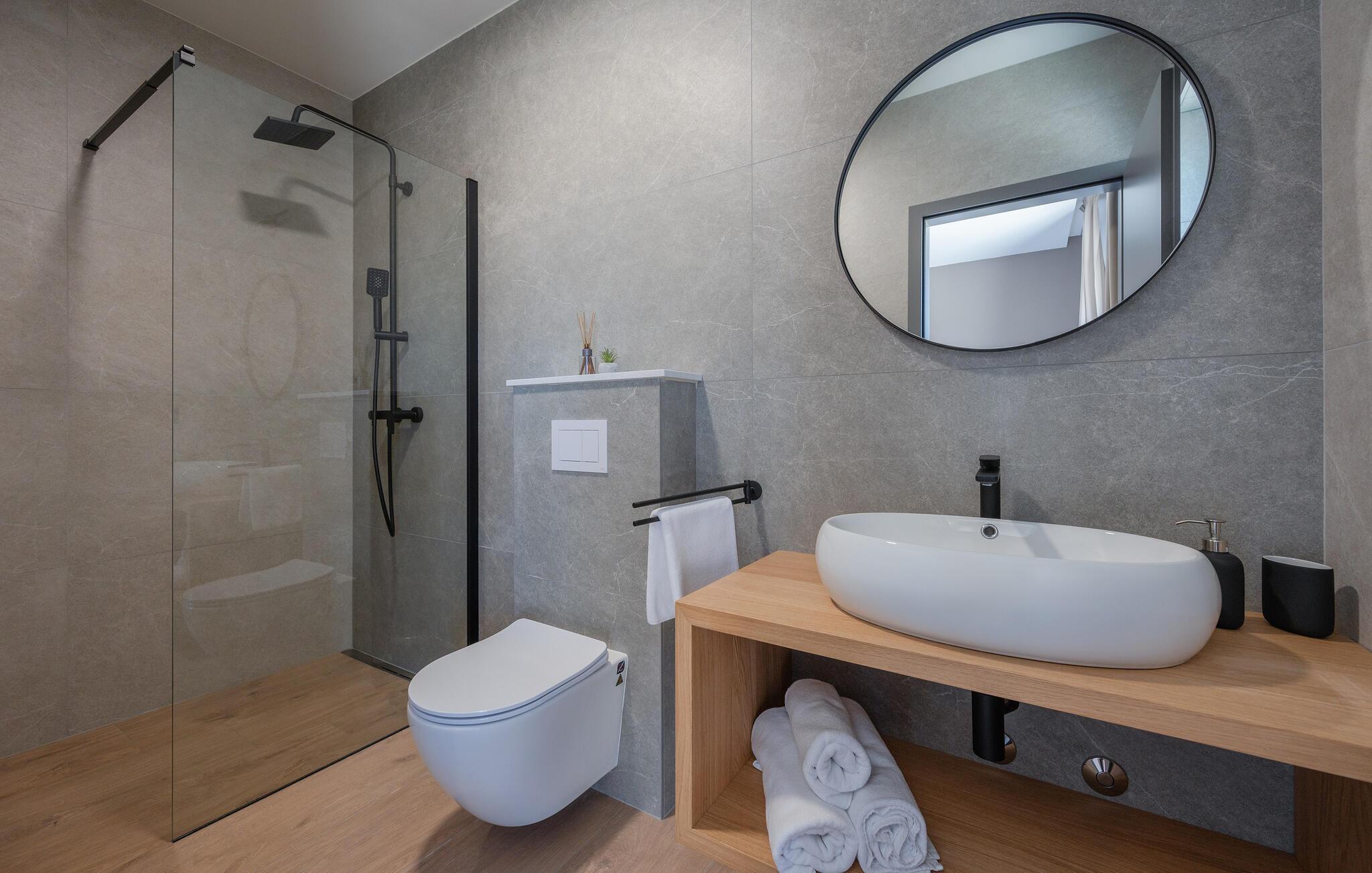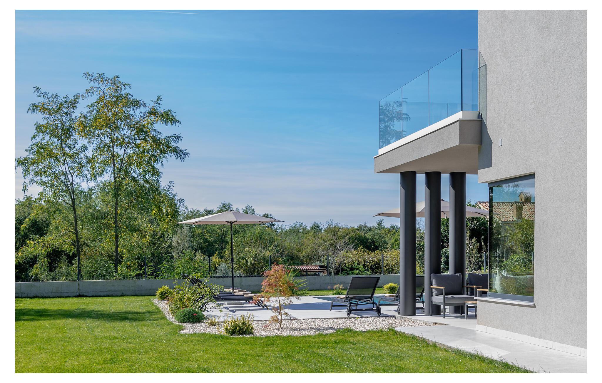 I tråd med de lange sommerdage, der venter jer i Labin, byder udendørsområdet på et sandt paradis for soldyrkere. Hop ind i den forfriskende pool på jeres fritid, og lad solen forkæle jer på de komfortable liggestole. Arranger en stemningsfuld grill om aftenen i udekøkkenet eller afslut dagen med et glas vin på den overdækkede terrasse.