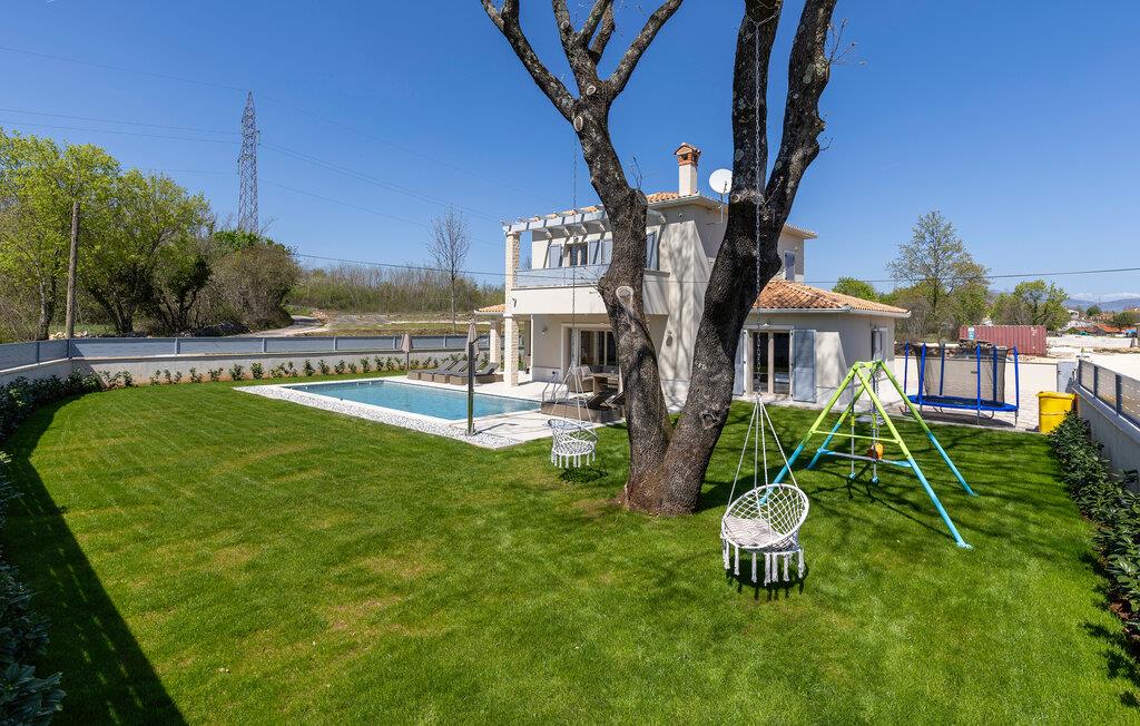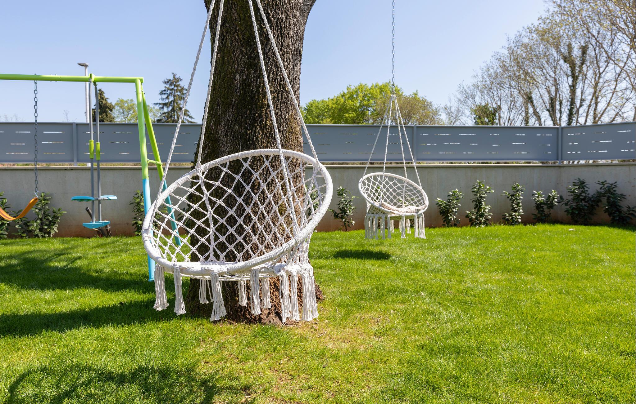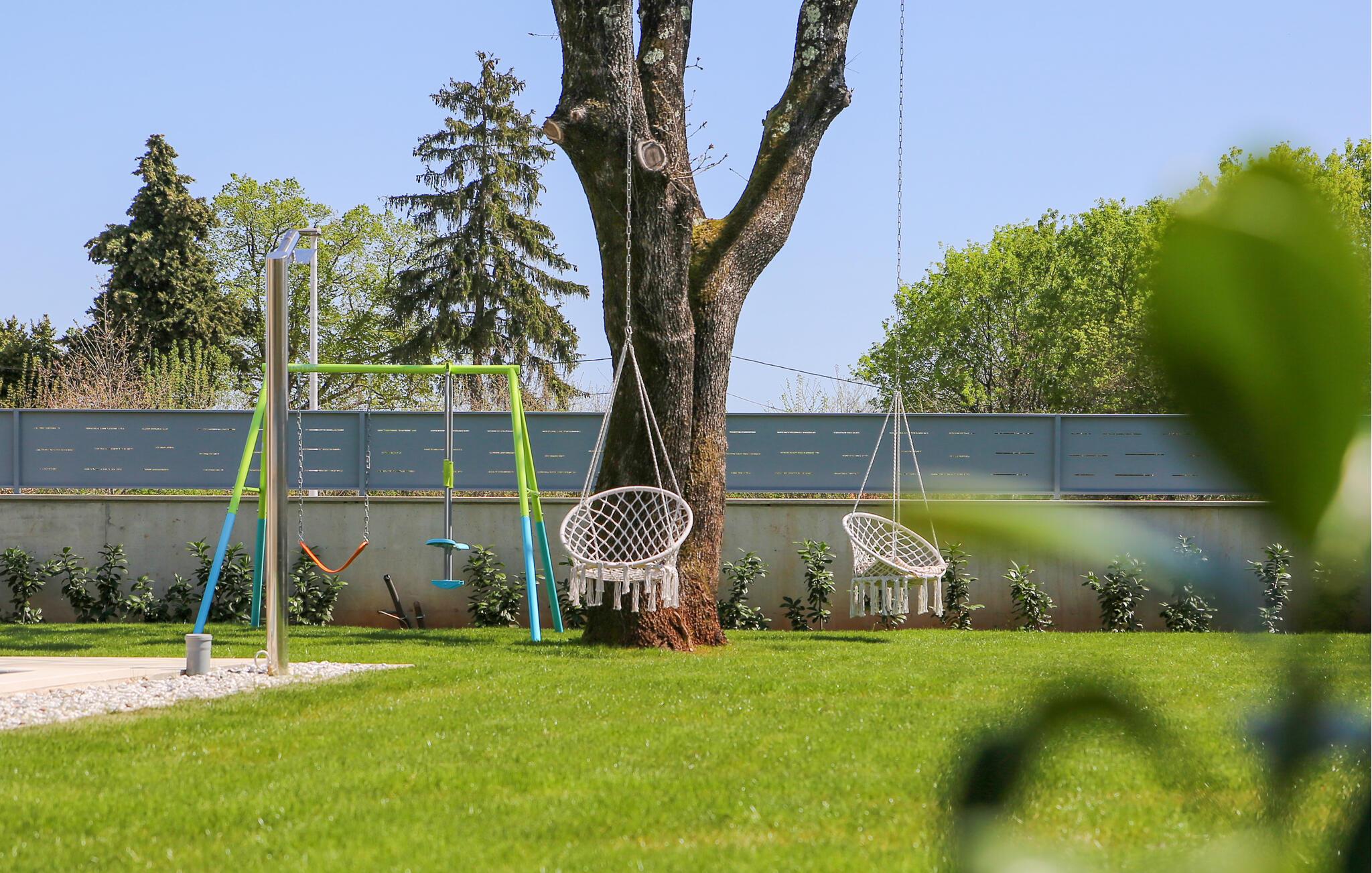 Gå en tur barfodet tur ud på jeres solrige terrasse, svøm afslappende baner i poolen, og nyd morgenmaden under åben himmel, mens jeres unge gæster leger med legepladsen på den store græsplæne. En indbydende, overdækket terrasse er til rådighed til stemningsfulde grillaftener – glæd jer til lange sommernætter med vin og stearinlysets skær.