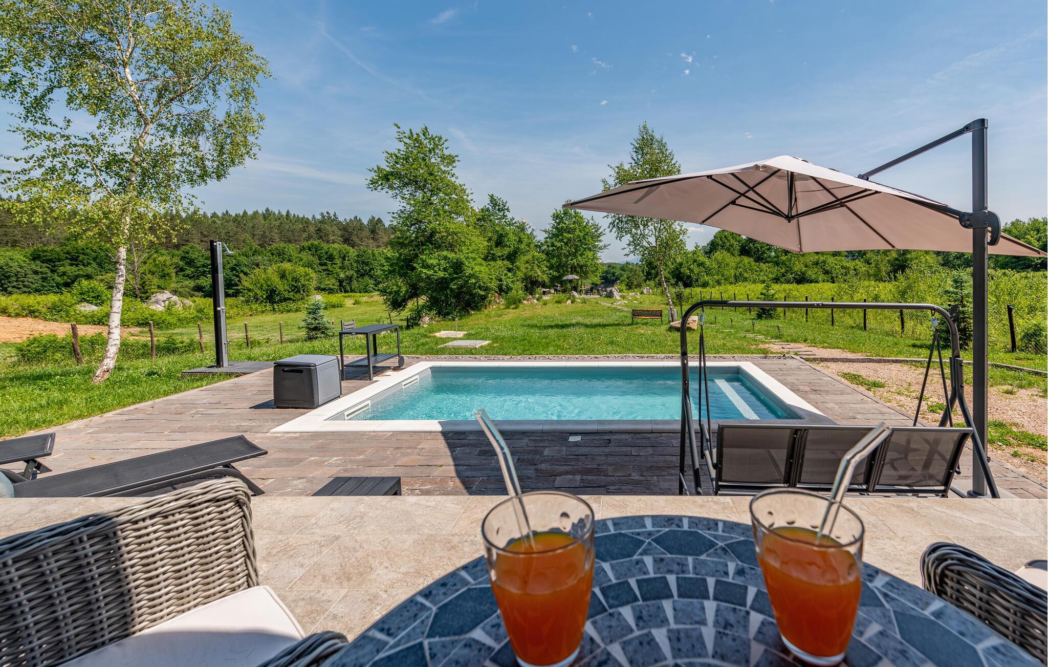 Udendørs kan I koble helt af i det idylliske landskab. I kan se frem til fælles måltider på terrassen, til at dyppe jer i poolen og til nogle lækre grillaftner for hele familien.
