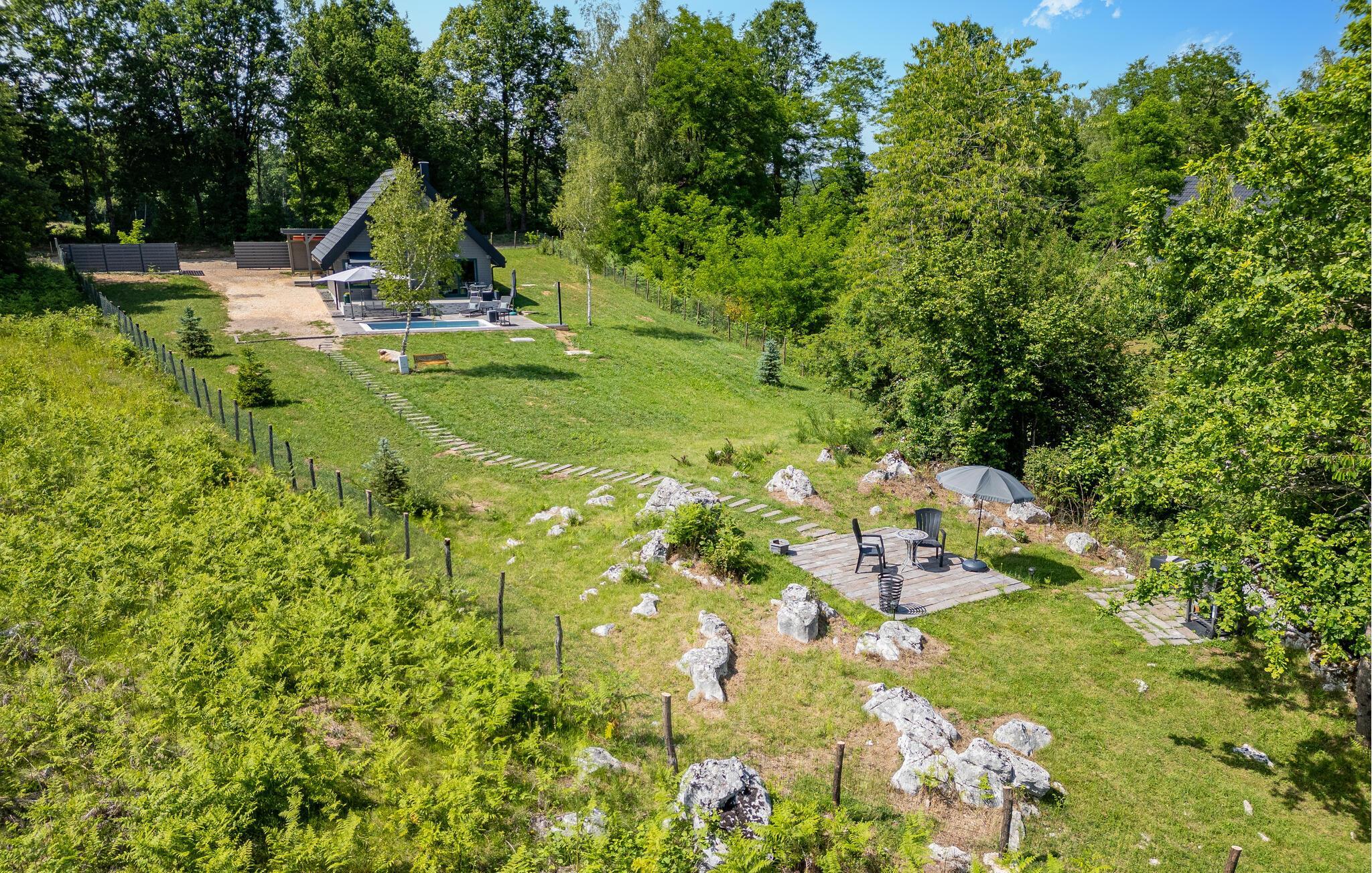 Velkommen til dette moderne hus, der ligger i et billedskønt landskab, og hvor I kan se frem til en enestående udsigt. Huset er det idelle sted for en dejlig ferie med familien. Her venter jer en stilfuld indretning med smukke træelementer, og I kan næsten ikke undgå at slappe af her. Et absolut højdepunkt er boblebadet foran store de vinduer, der giver jer en vild udsigt over området.