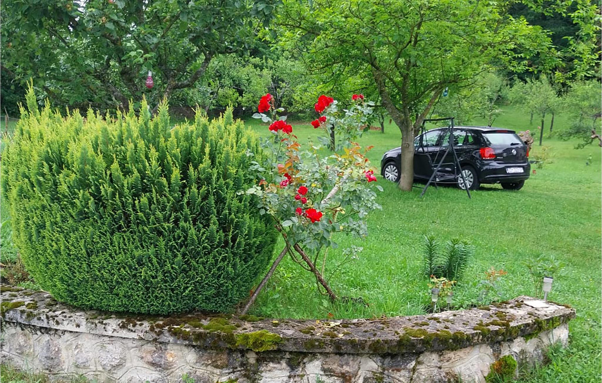 Det store udendørsareal fortryller med frodig natur, frugttræer og en overdækket terrasse. Start dagen med morgenmad under åben himmel, slap af i skyggen af træerne, og lad børnene holde en hyggelig picnic. Glæd jer til stemningsfulde grillaftener under den stjerneklare himmel.