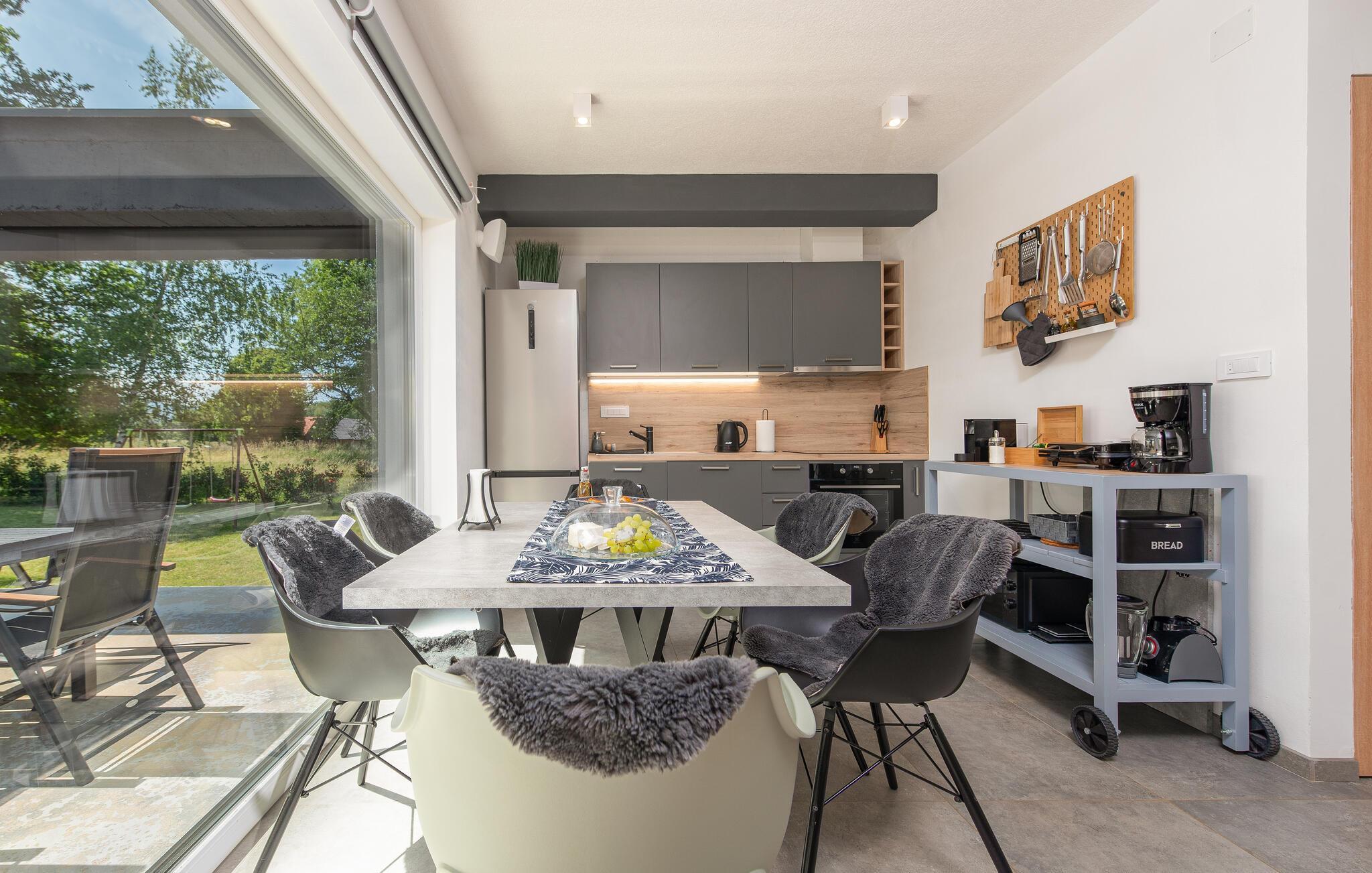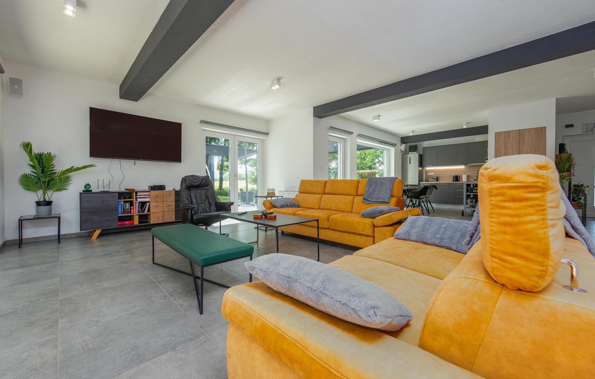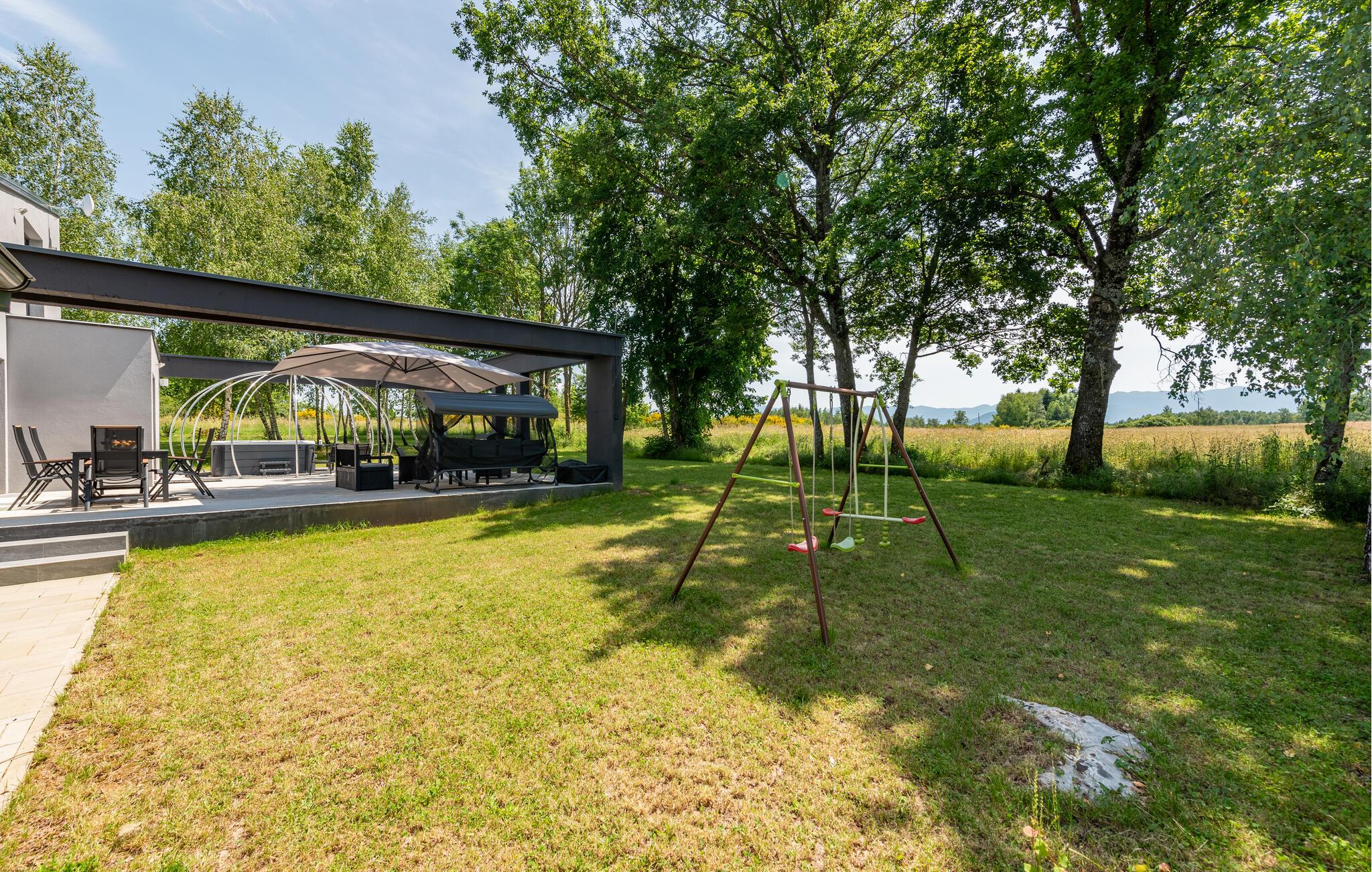 Velkommen til dette moderne hus, der har en herlig beliggenhed i et smukt landskab. Her kan I glæde jer til at nyde en vidunderlig udsigt og mange skønne stunder med familien. Møblerne er komfortable og venter bare på, at I skal slappe af i dem. Der er lagt op til mange hyggelige fælles måltider med en vidunderlig udsigt, og om aftenen skal I bare smide fødderne op i sofaerne ved den den knitrende pejs.