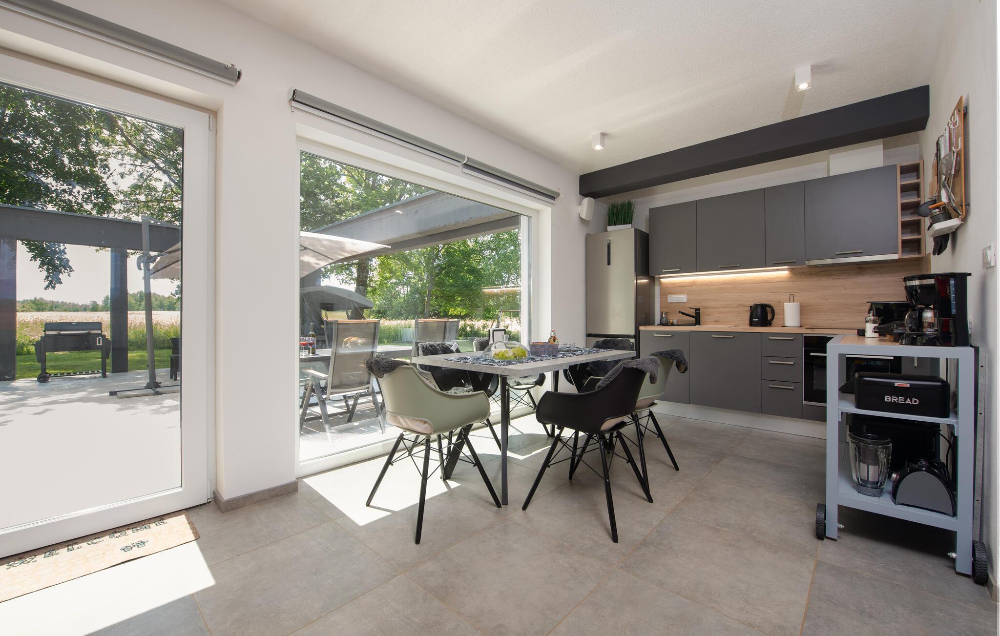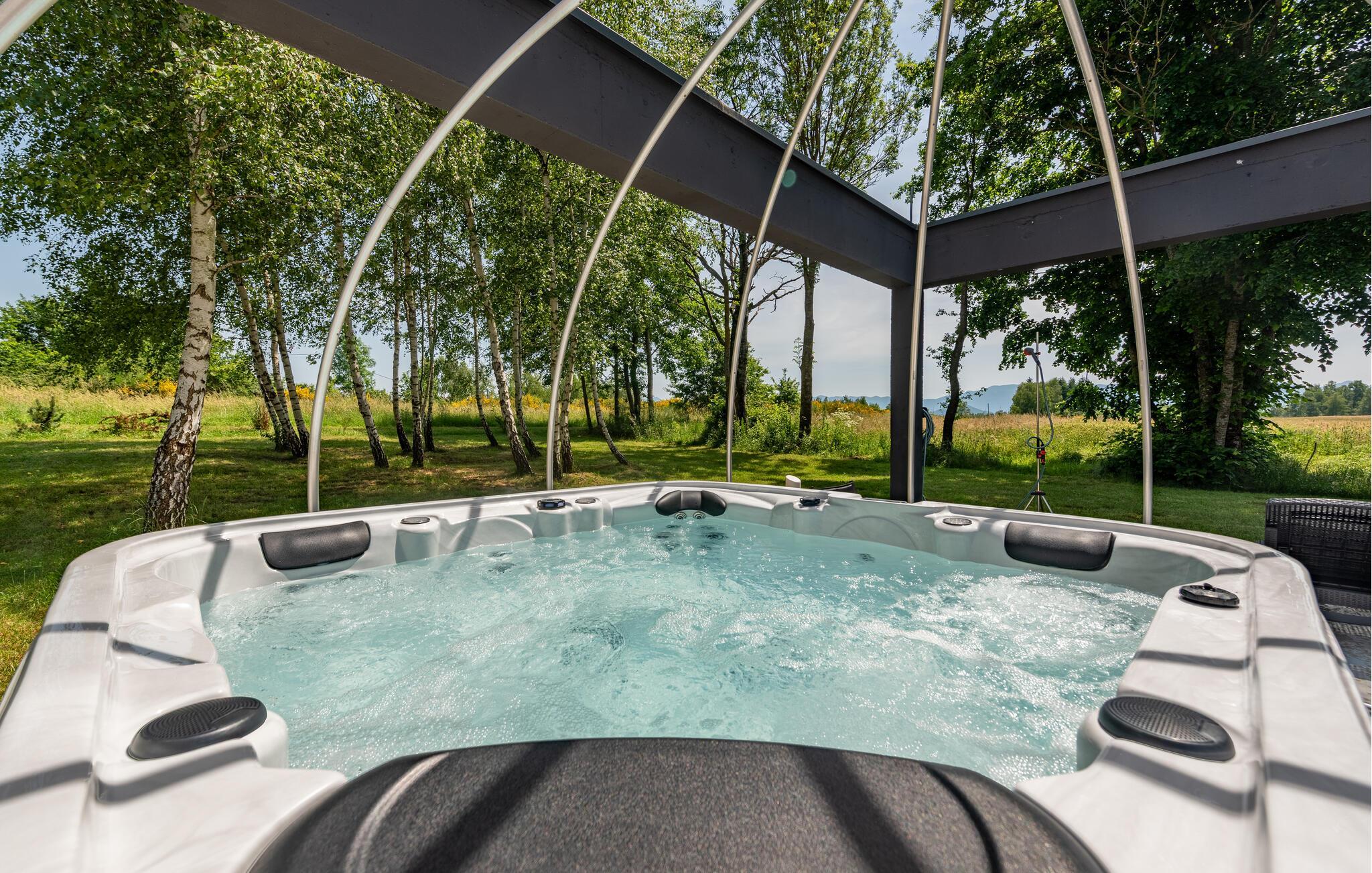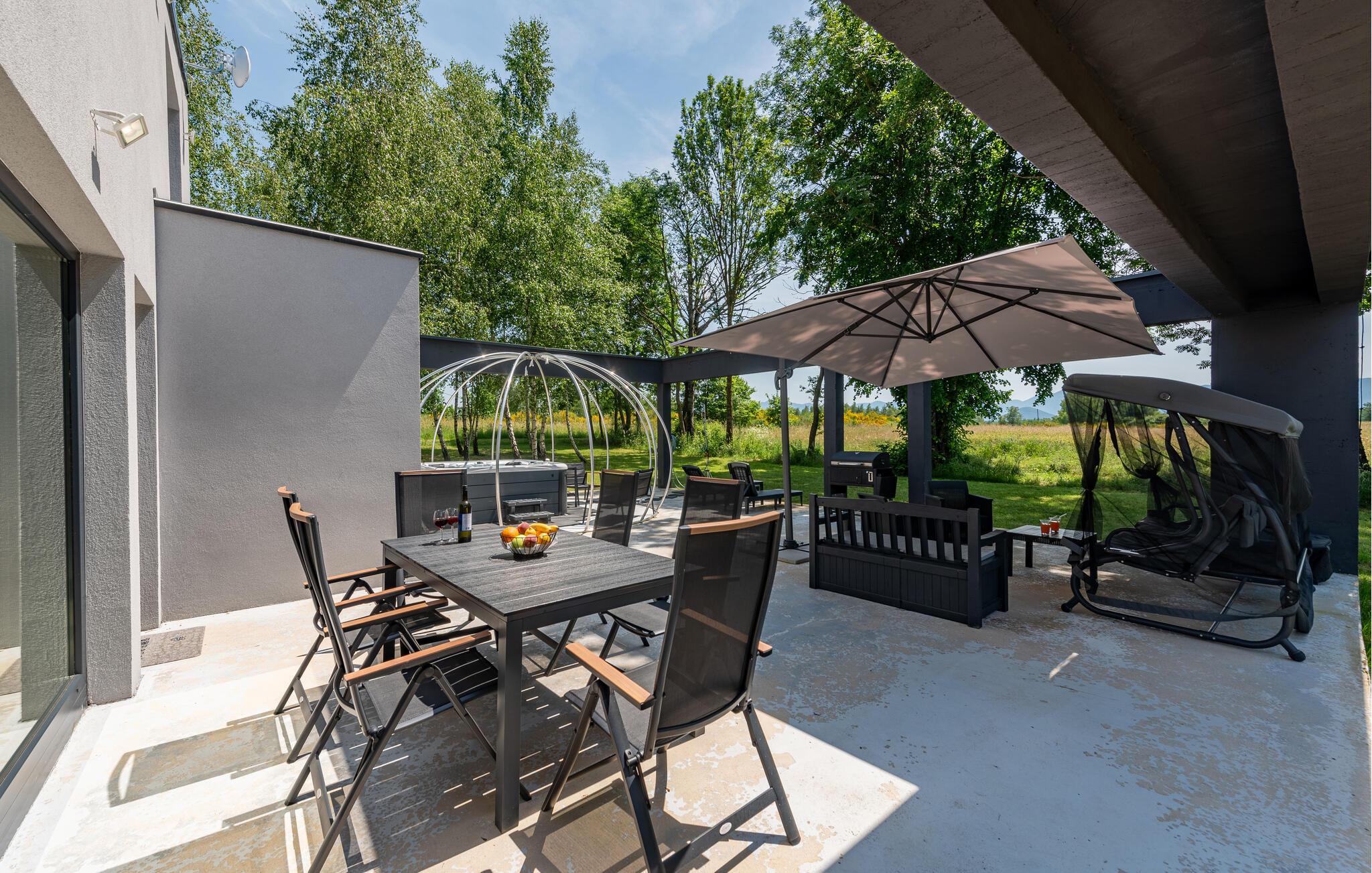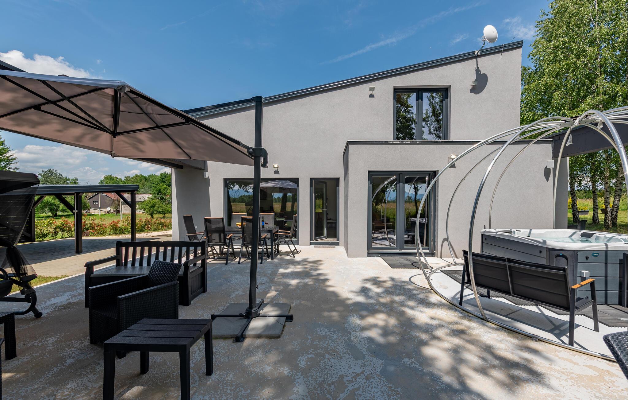 I får en dejlig terrasse, som er det ideelle sted at nyde morgenkaffen, mens I lægger planer for den kommende dag. Senere kan I servere nogle lækre grillretter for hele familien eller slappe af i det udendørs spabad.