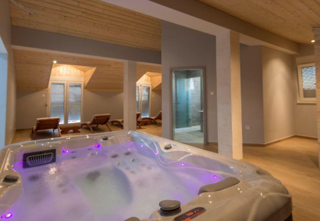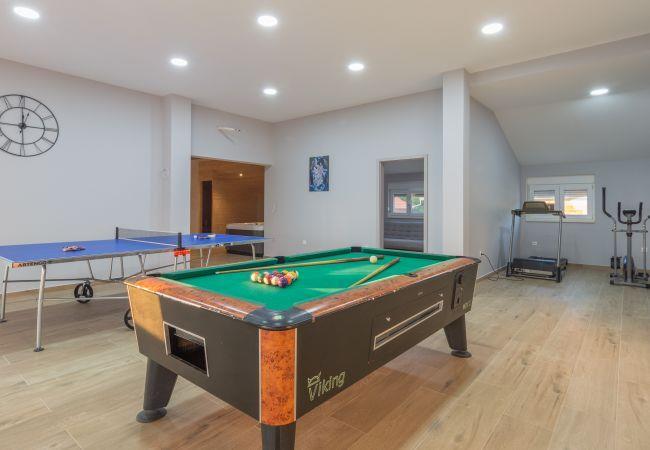 Villa consists of 6 bedrooms, 4 bathrooms, 3 living rooms, 2 kitchen, sauna, jacuzzi and a game room. For those who want to stay active on their holiday there is a gym. All you could hope for, for a relaxed and fun vacation. It can accommodate up to 12 people.