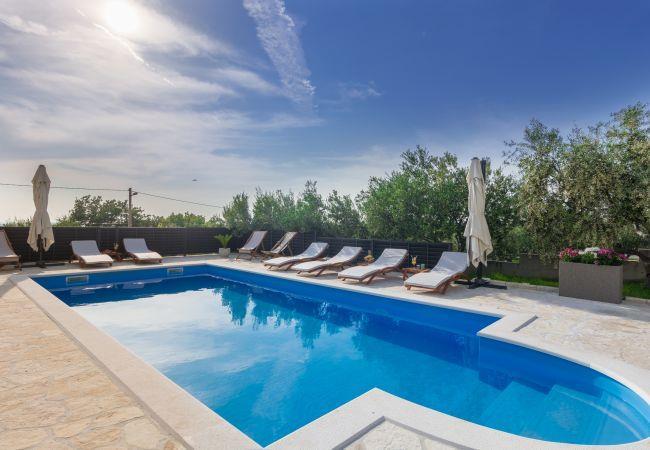 This spacious villa is situated in a small village called Lisicic, near Benkovac city. It is located on a secluded area with just a few neighbors surrounded by olive trees and vineyards. Complete privacy is provided.