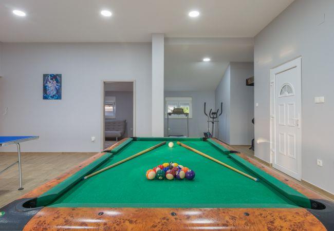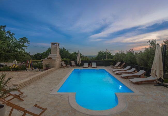 Exterior is very spacious with large swimming pool and sun loungers. There is a barbecue with stone table where you can enjoy in traditional Dalmatian specialties.
